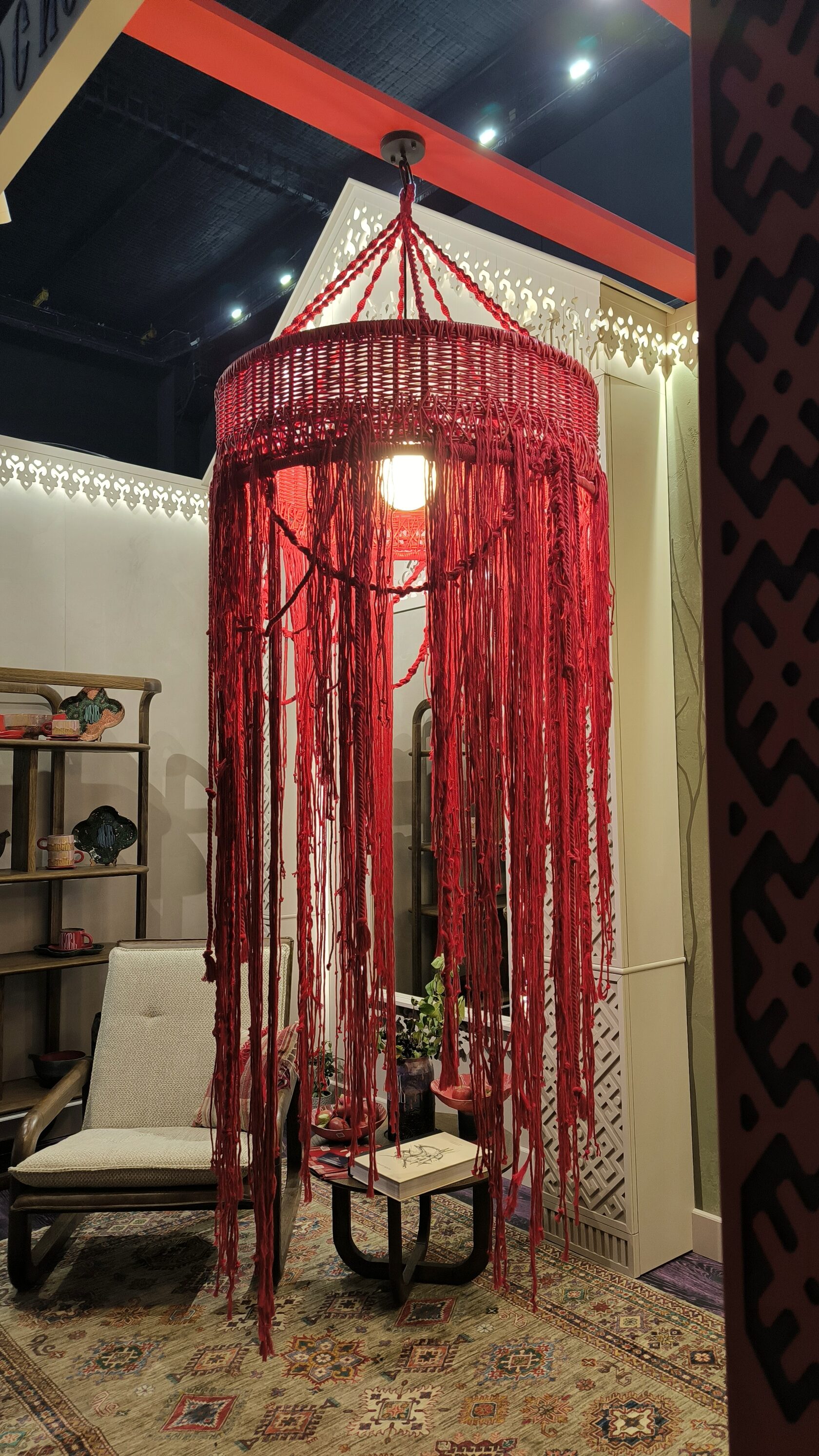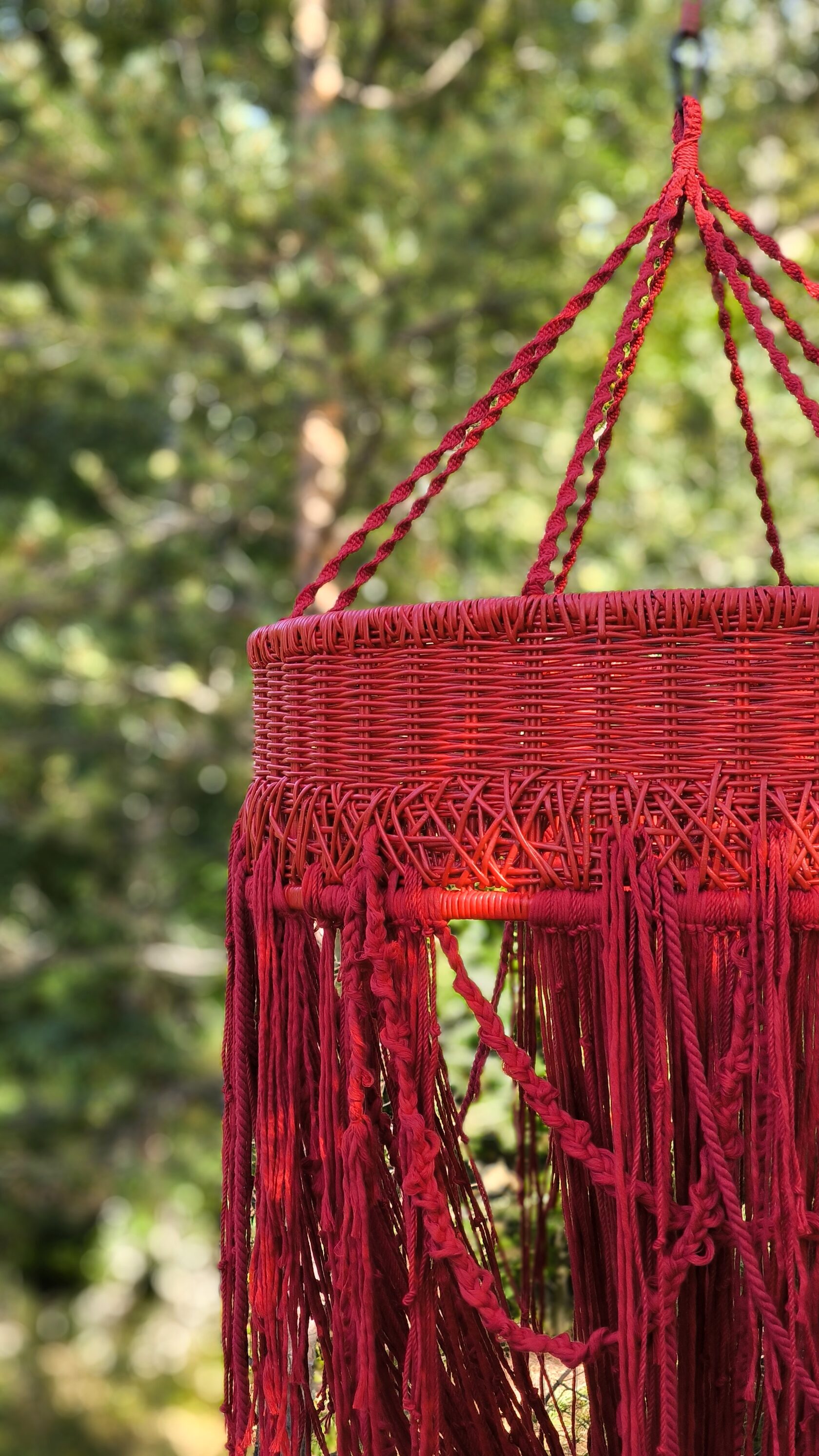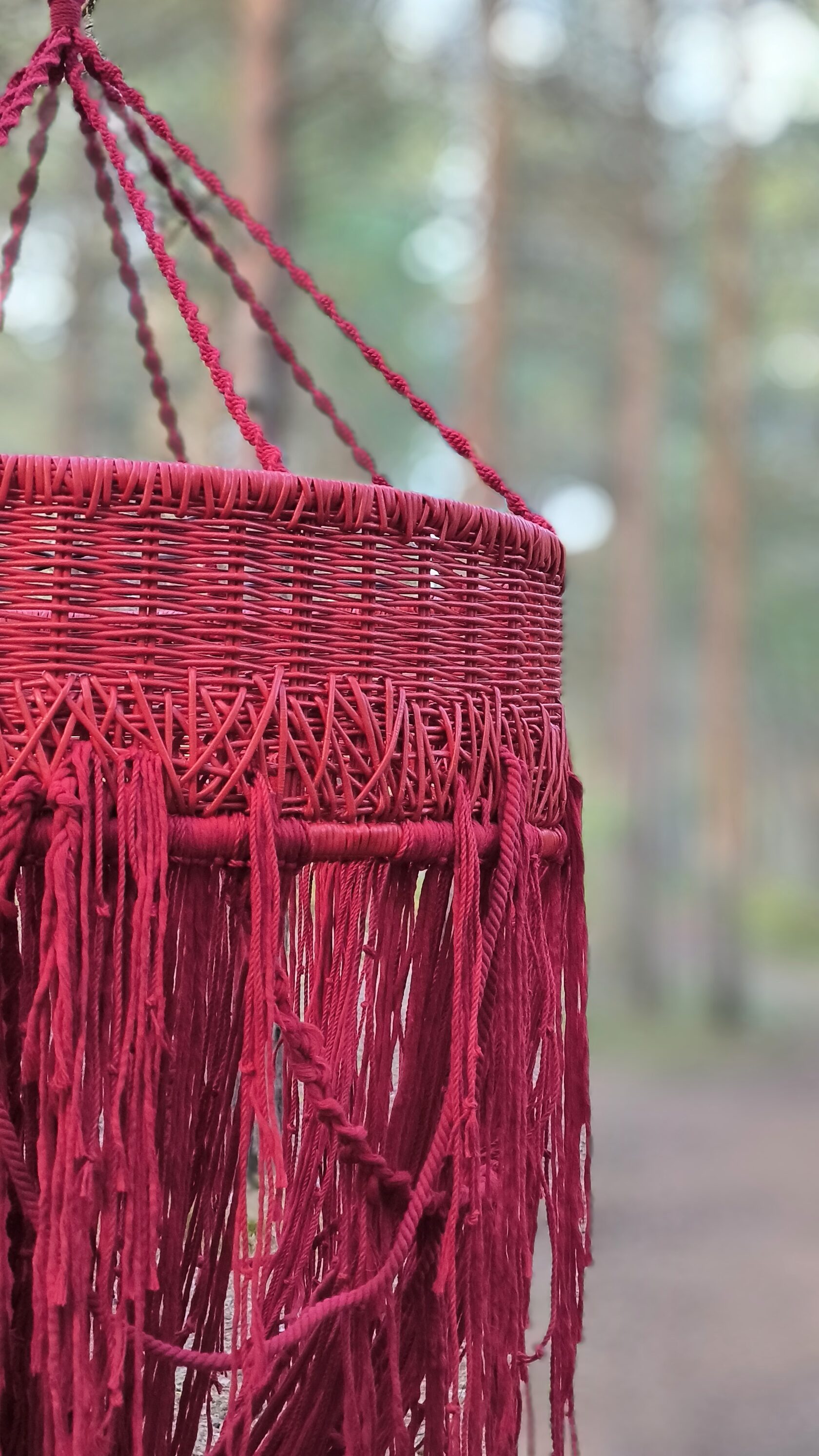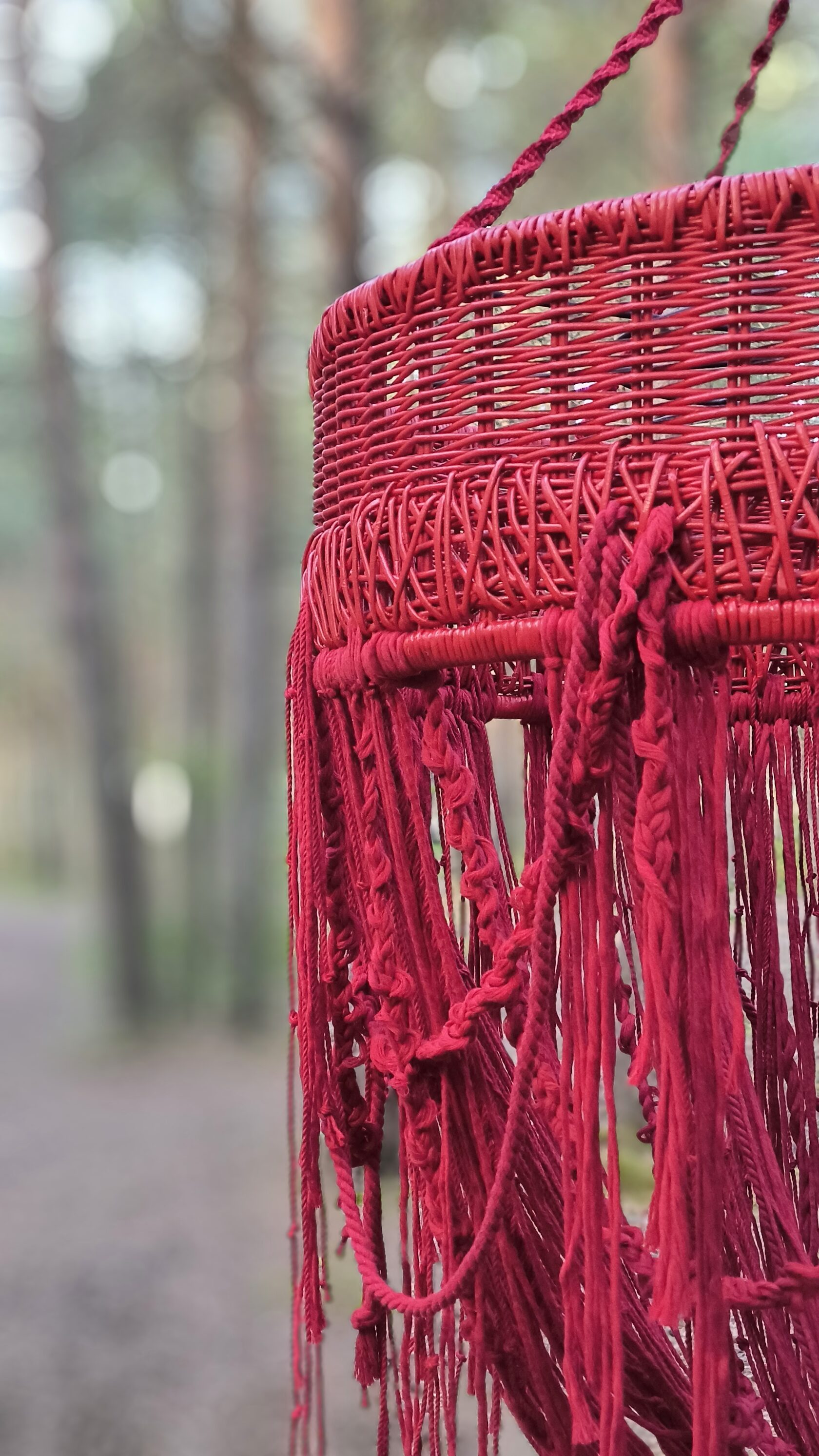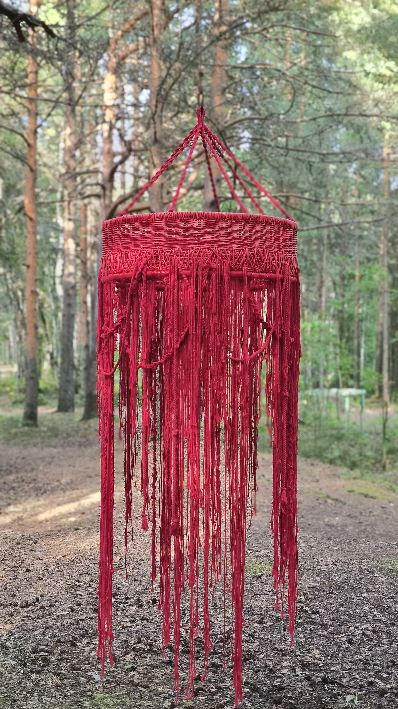 Абажур «Очаг» создан специально для выставки Русский дом 2025 авторским коллективом: Валерия Корельская, Татьяна Захарова и Татьяна Горбунова. Его красный цвет символизирует живой огонь очага, а небрежное плетение подчёркивает рукотворный характер изделия. Абажур становится центром притяжения в доме, бережно сохраняя связь с культурными традициями.
