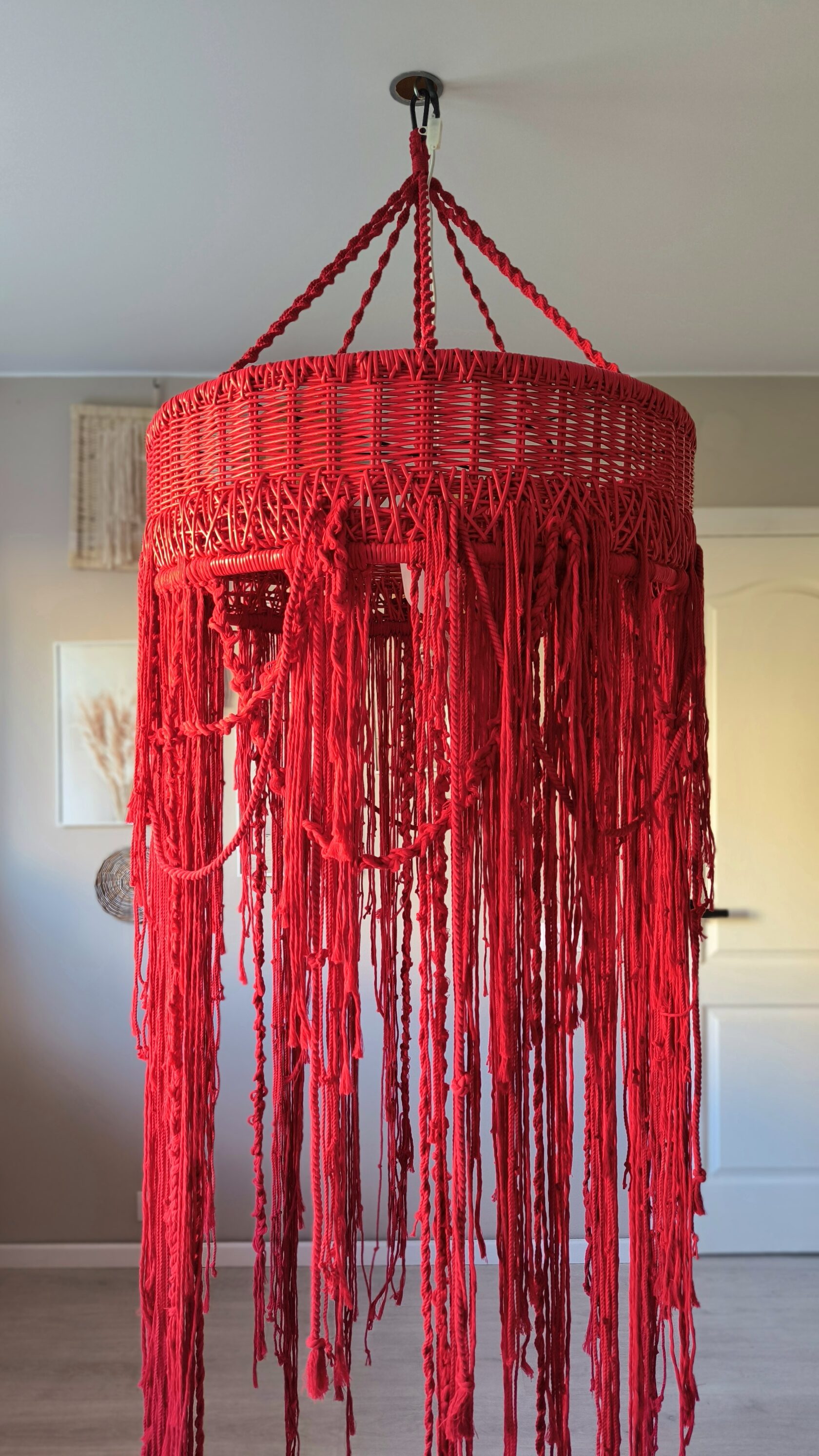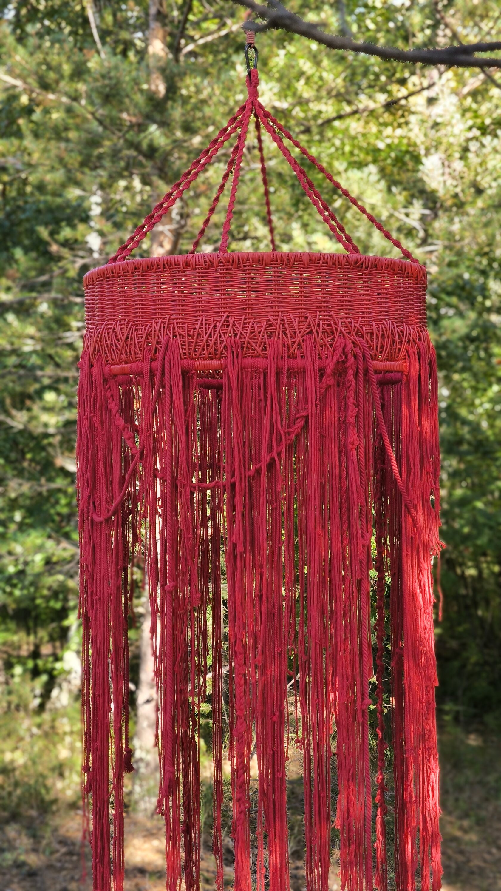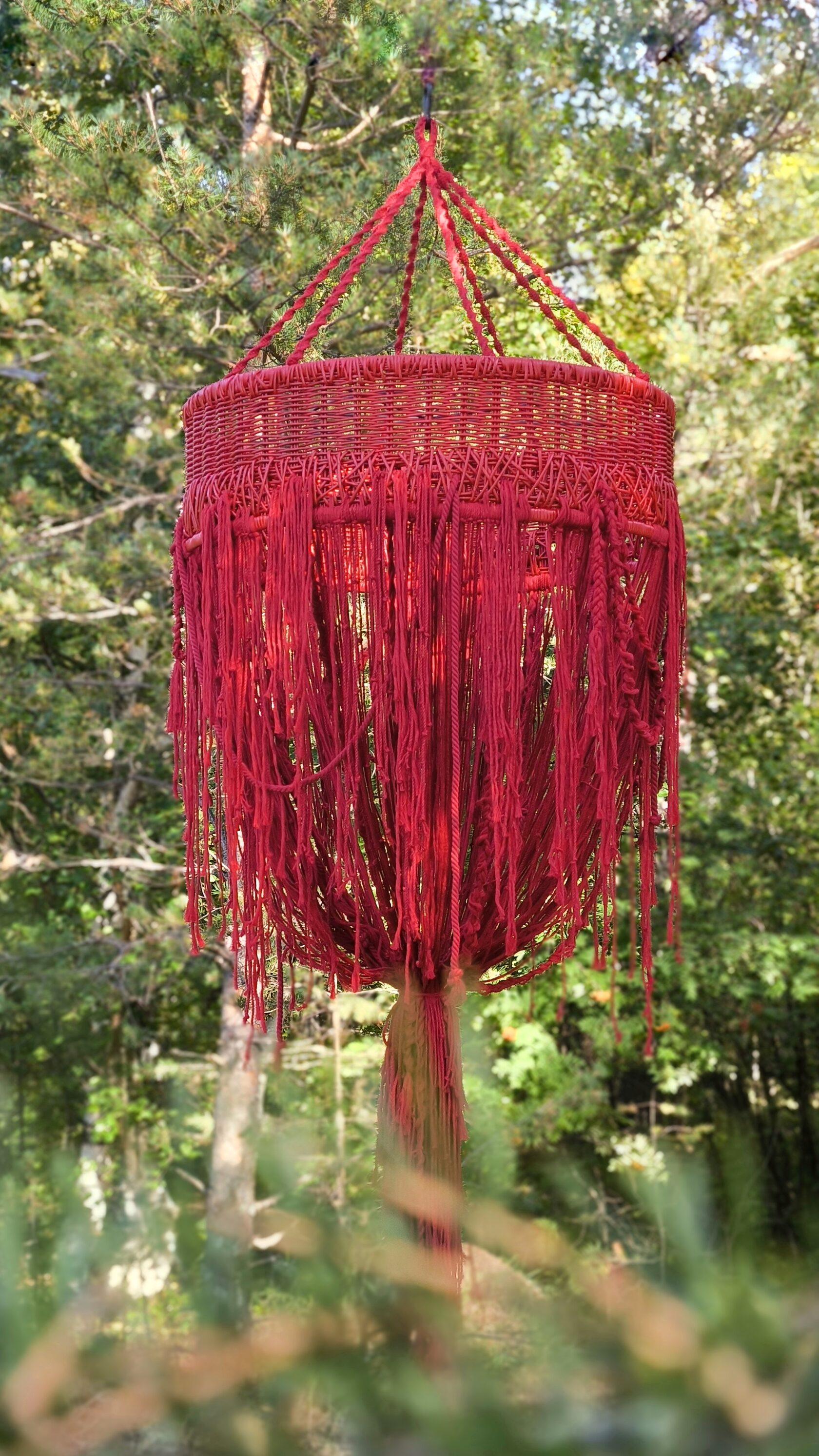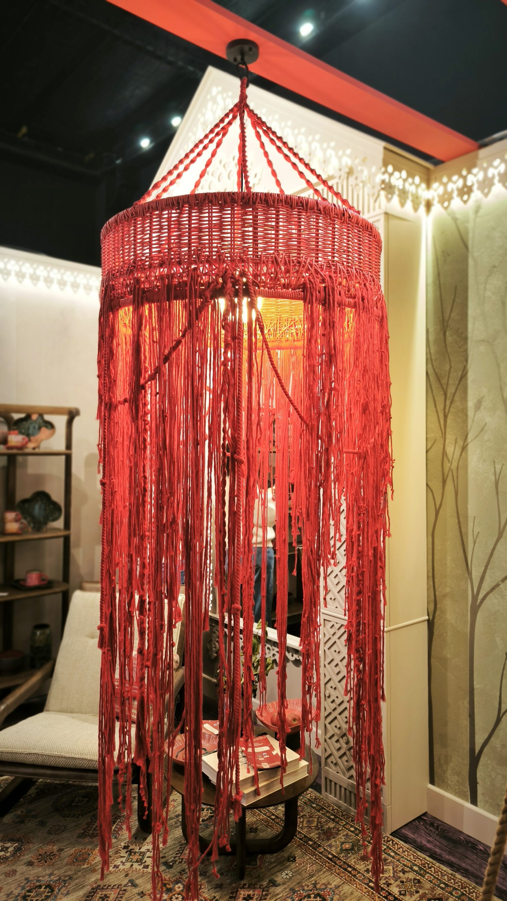 Абажур «Очаг» создан специально для выставки Русский дом 2025 авторским коллективом: Валерия Корельская, Татьяна Захарова и Татьяна Горбунова. Его красный цвет символизирует живой огонь очага, а небрежное плетение подчёркивает рукотворный характер изделия. Абажур становится центром притяжения в доме, бережно сохраняя связь с культурными традициями.