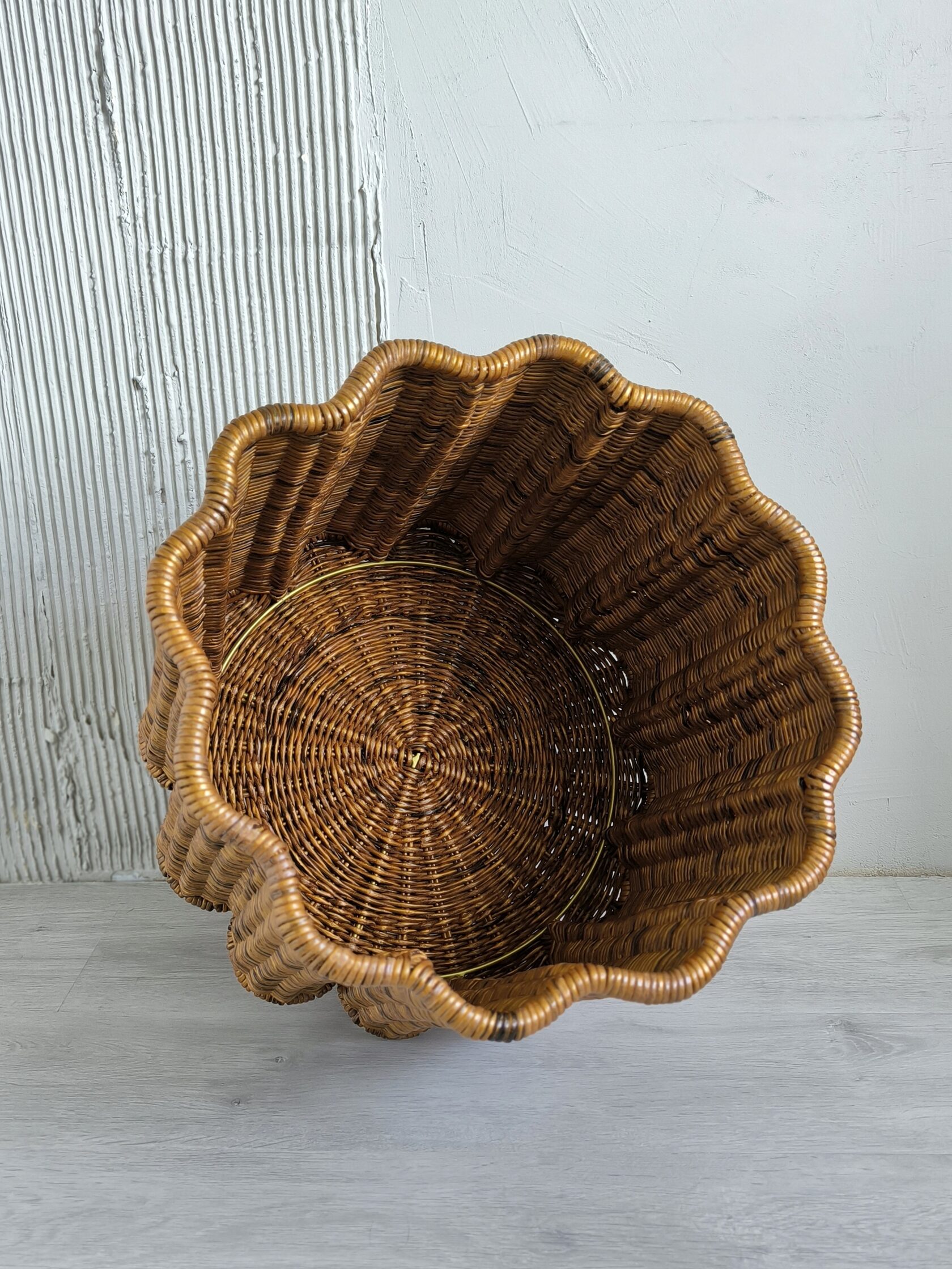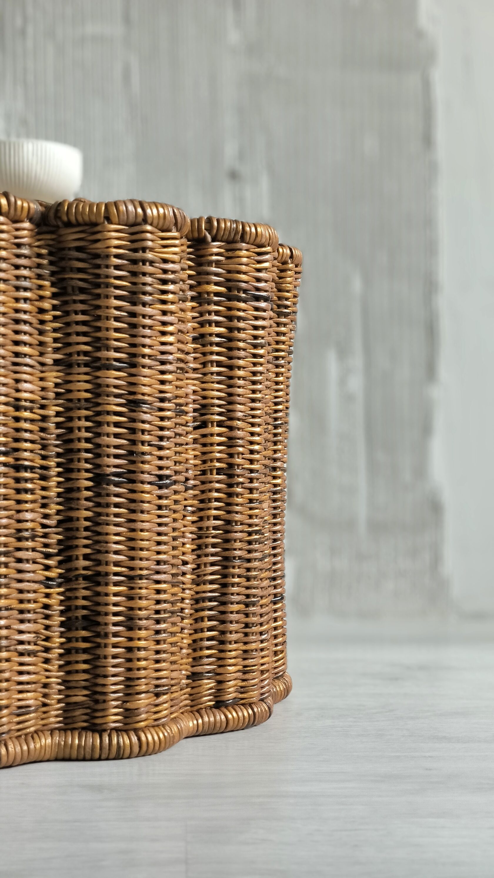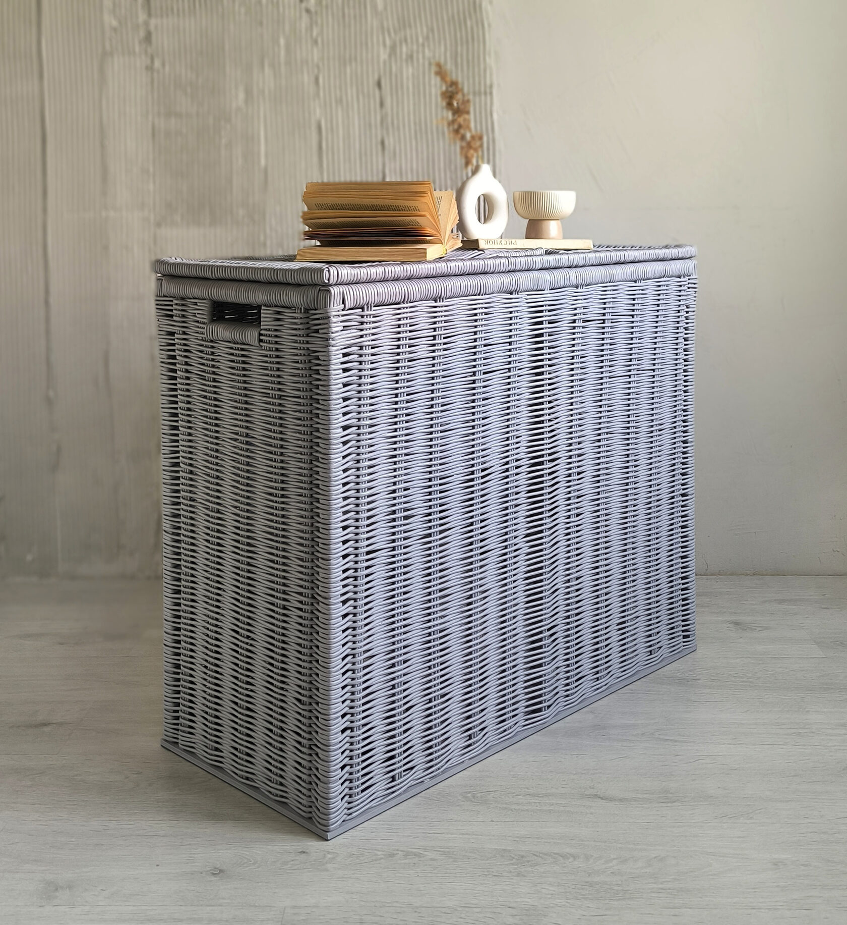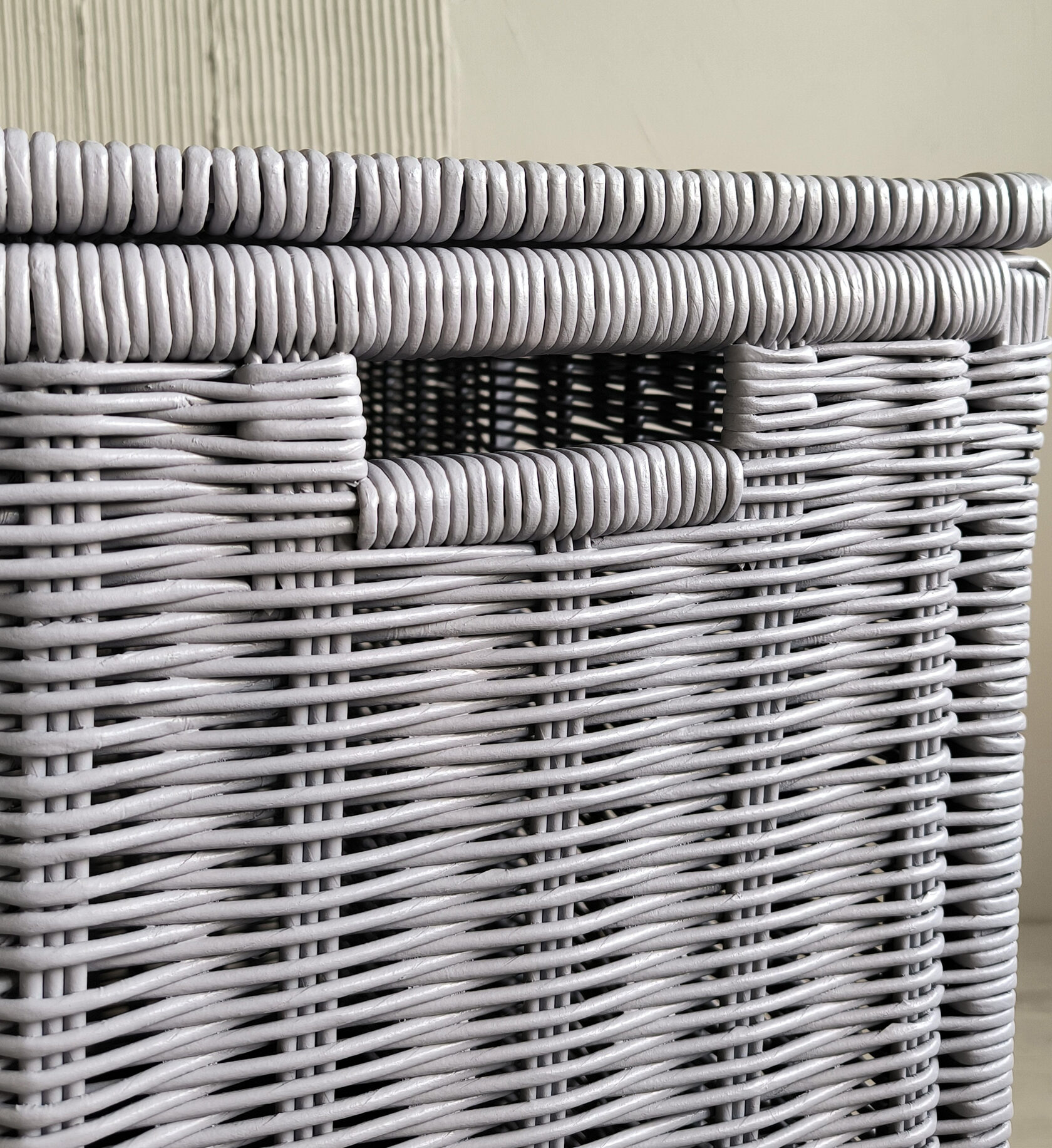 Белый цвет и воздушная структура плетения делают сундук лёгким, а кожаные детали добавляют ему характера.