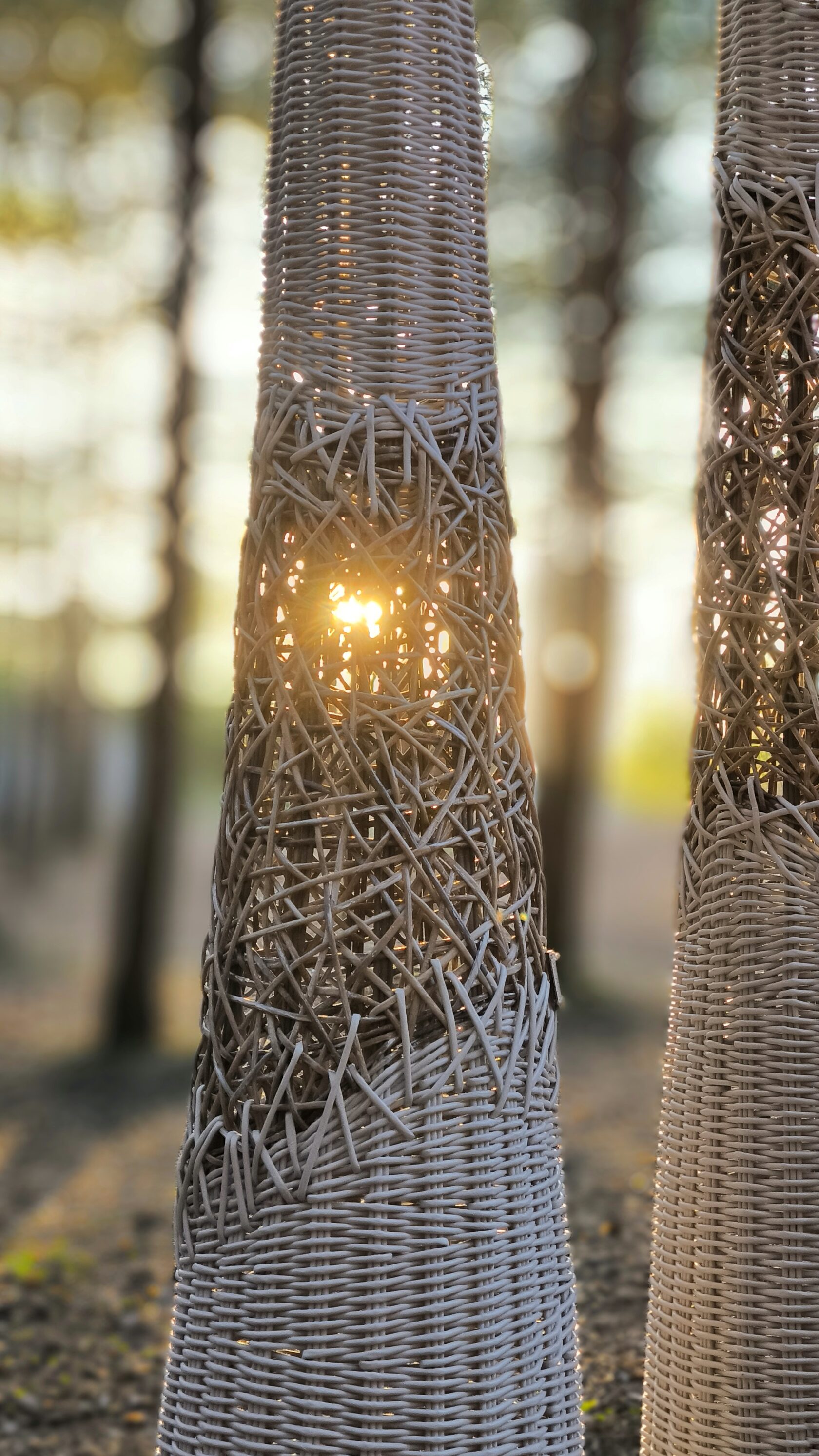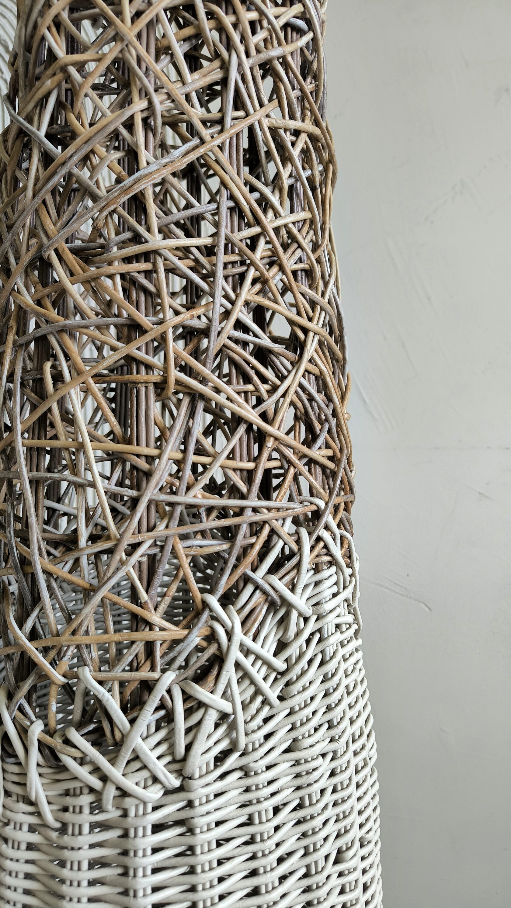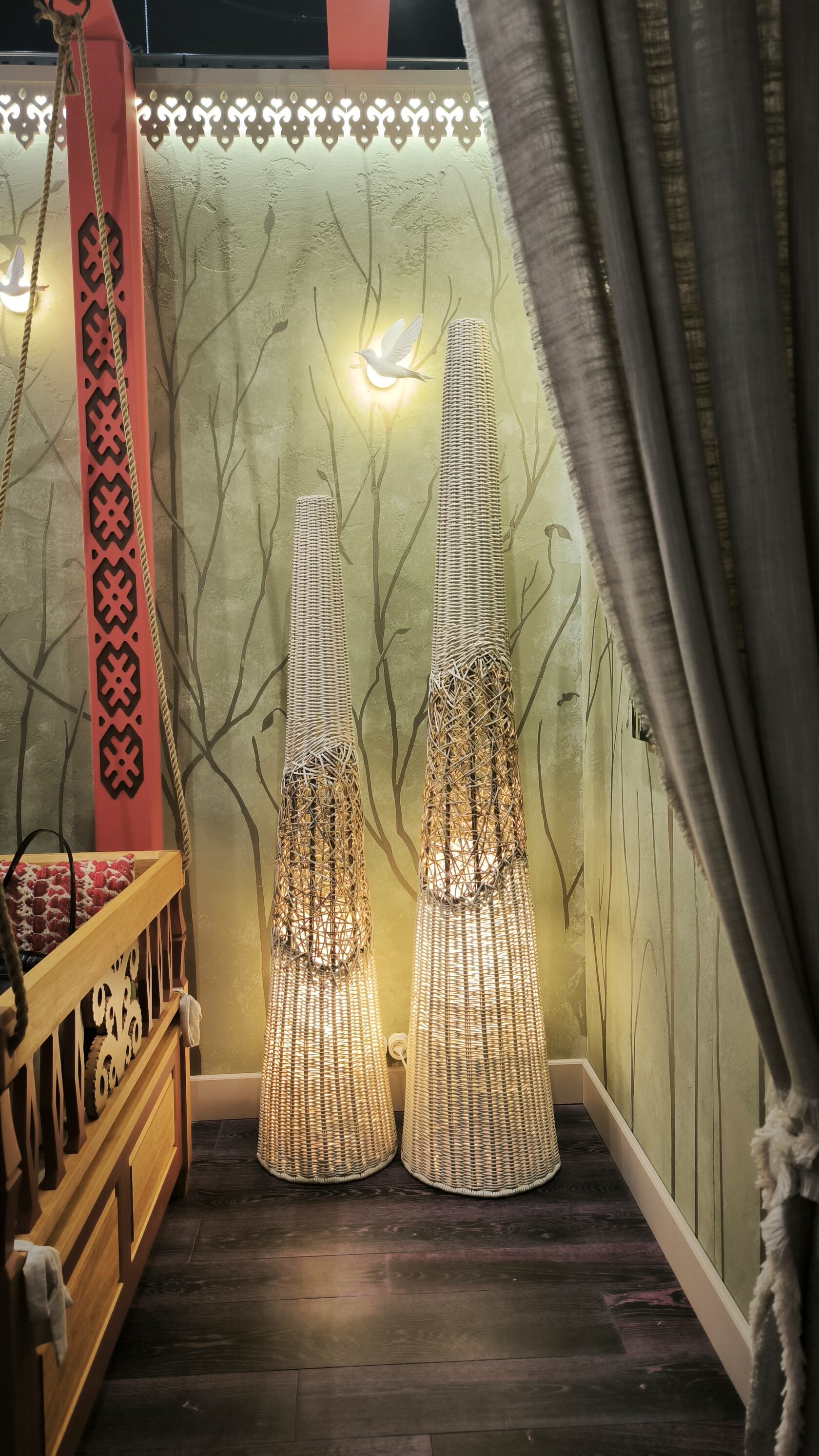 Концепция: Проект отражает идею восстановления утраченной связи человека с природой. Верхняя и нижняя части плетения символизируют архитектуру и технологии, а центральная часть, имитирующая корни, — естественный хаос природы. Торшеры становятся не только источником света, но и художественным объектом, объединяющим природу и человека.