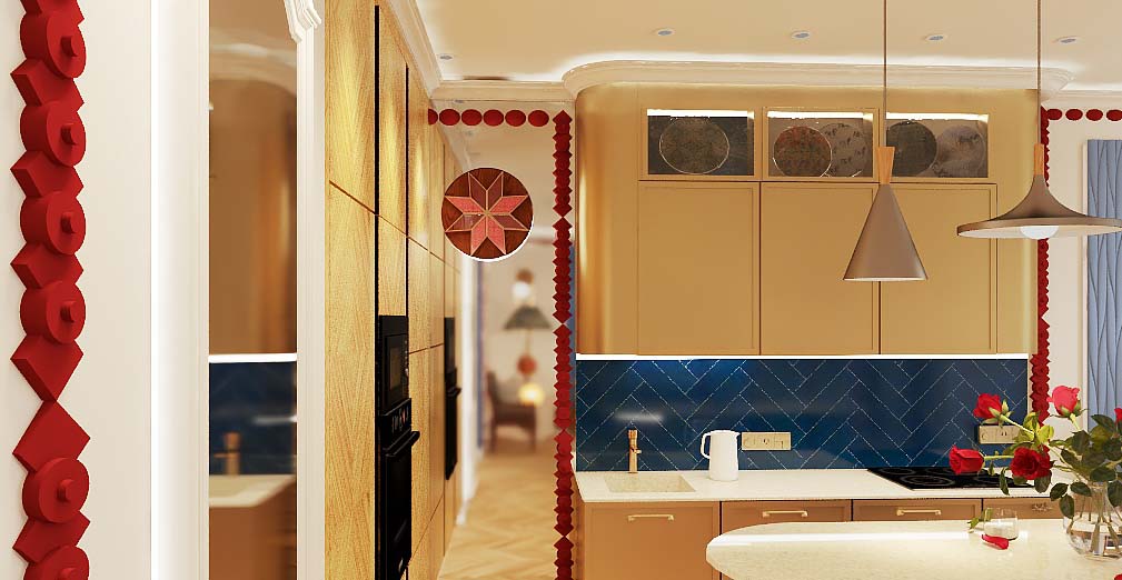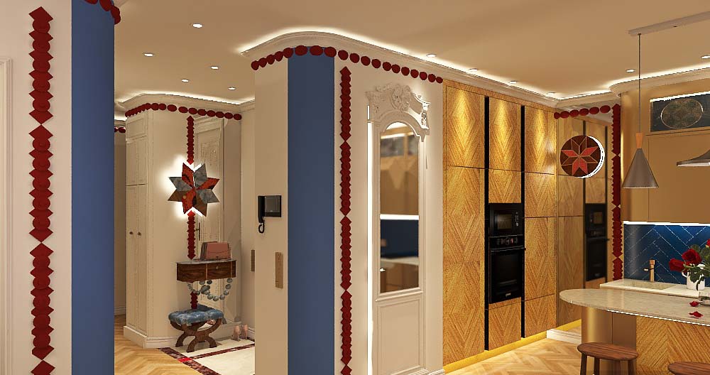 Итог Интерьер дома стал настоящим воплощением богатой культурной традиции с современным подходом. Яркие цветовые акценты, декоративные элементы и индивидуально созданные предметы наполнены душевностью и историческим контекстом. Пространство получилось тёплым, художественным и по-настоящему живым — дом, в котором каждая деталь рассказывает свою историю и подчёркивает красоту русского стиля.