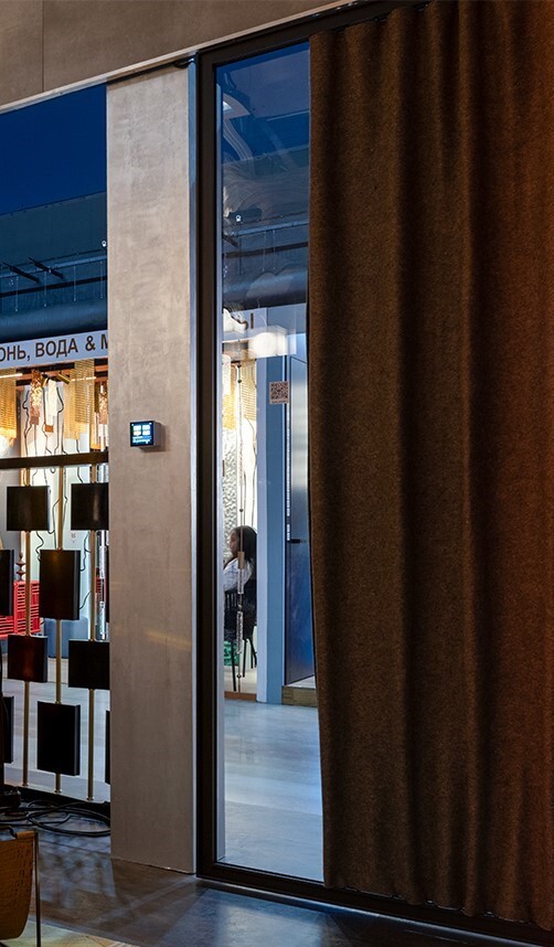 Проект «ШЁЛКОВАЯ СТАЛЬ» представляет инновационное решение: стеклянные двери в алюминиевом профиле, дополненные функциональными шторами из войлока. Интегрированные направляющие позволяют легко регулировать светопроницаемость и уровень приватности, а уникальная система навески, выполненная по авторской методике, обеспечивает компактное и пластичное движение полотен. Отделка края репсовой лентой подчеркивает изысканность деталей.