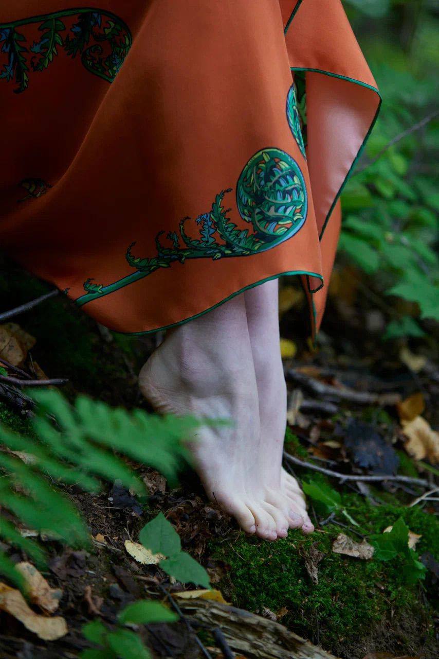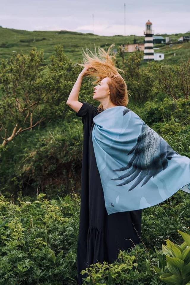 Концепция: Я соединяю отношение к платку на Руси — как к сакральному и обережному предмету — с современным пониманием цвета, образов и символов. Каждый дизайн рождается из личного опыта и погружения в место или культуру. Так, коллекция «Камчатка» включает: Кутха — мифологического творца в образе ворона, под чьим крылом раскинулся весь полуостров. Медведя — символа силы и хранителя природных богатств, связанного с долиной гейзеров. Папоротник — архетипический знак мистики и развития, природная спираль Фибоначчи, несущая код роста и гармонии.