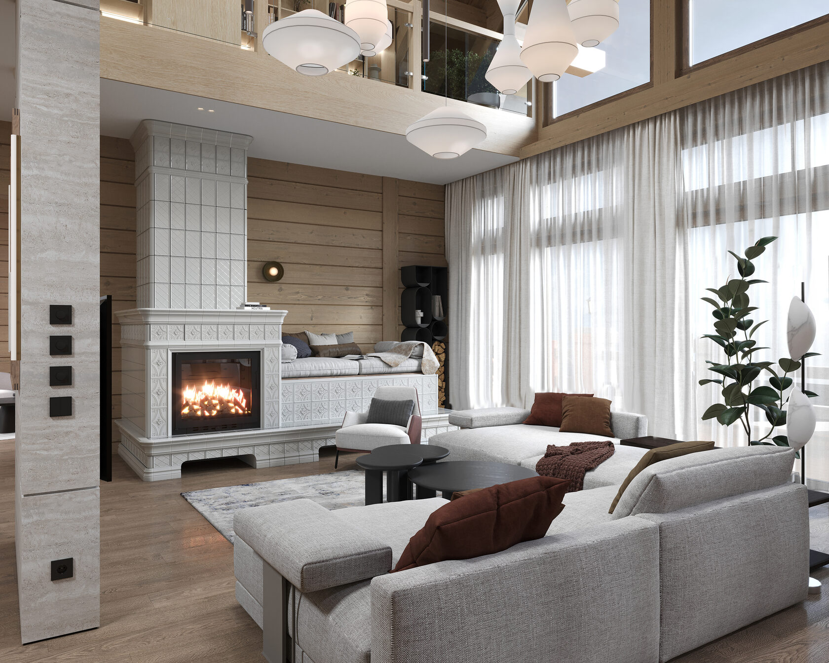 Этот проект воплощает идею современного русского дома, где каждый член семьи находит свое пространство, а дом объединяет всех под одной крышей. Атмосфера уюта и покоя создается благодаря мягкому свету, натуральному дереву и живому огню камина, приглашая к совместному времяпровождению и искренним беседам.