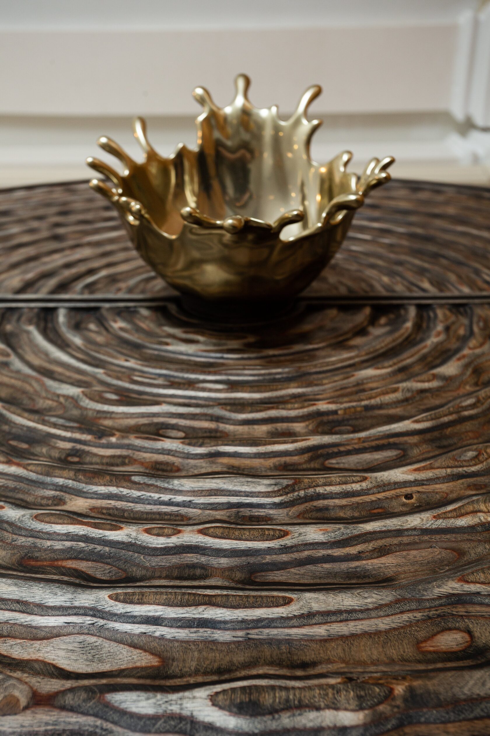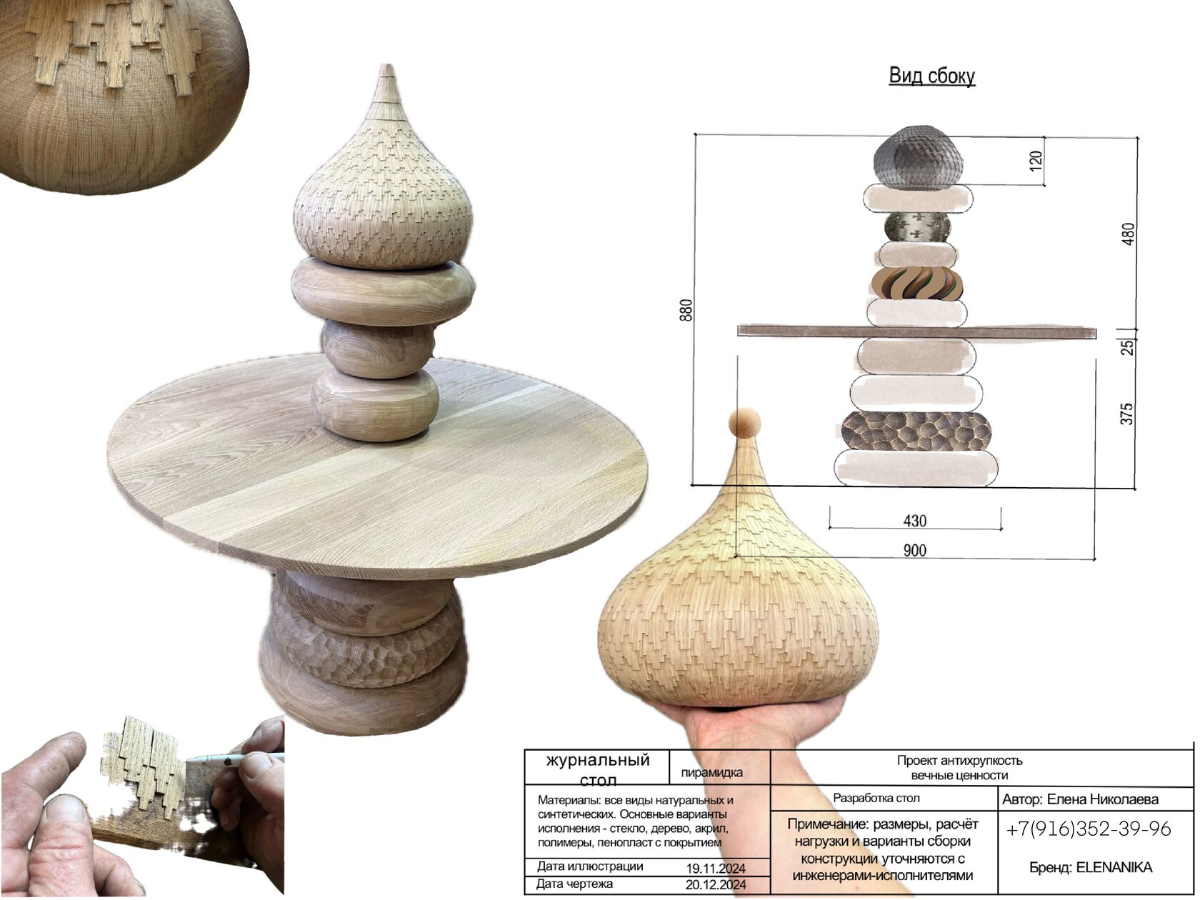 Итог: искусство в интерьере Этот стол — функциональный арт-объект. Игра света, контраст текстур и глубокая символика превращают его в медитативный элемент пространства, напоминающий о вечных циклах природы.