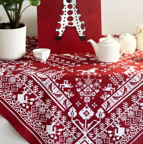Бренд создает скатерти, сочетающие русские народные узоры с современным дизайном. Яркие орнаменты и знаменитые "крапинки" делают продукцию узнаваемой.