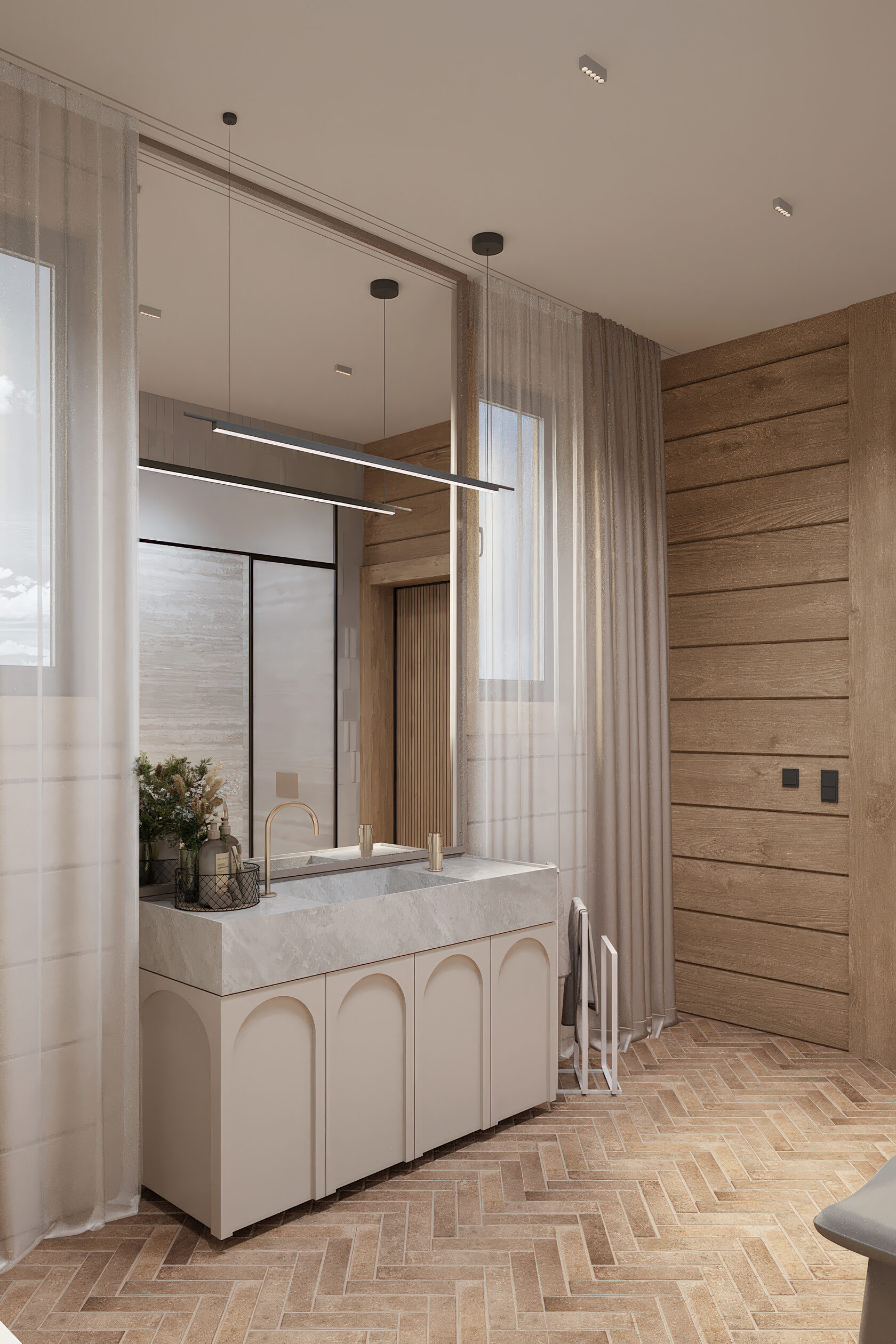 Концепция: Основная концепция — создание живого пространства, хранящего историю семьи и передающего тепло поколений. Традиционные архитектурные формы переосмыслены в современном ключе, а простота становится синонимом глубокой гармонии. Уют здесь не формируется вещами, но рождается из глубоких отношений и присутствия, где внешний свет дома отражает его внутреннее тепло.