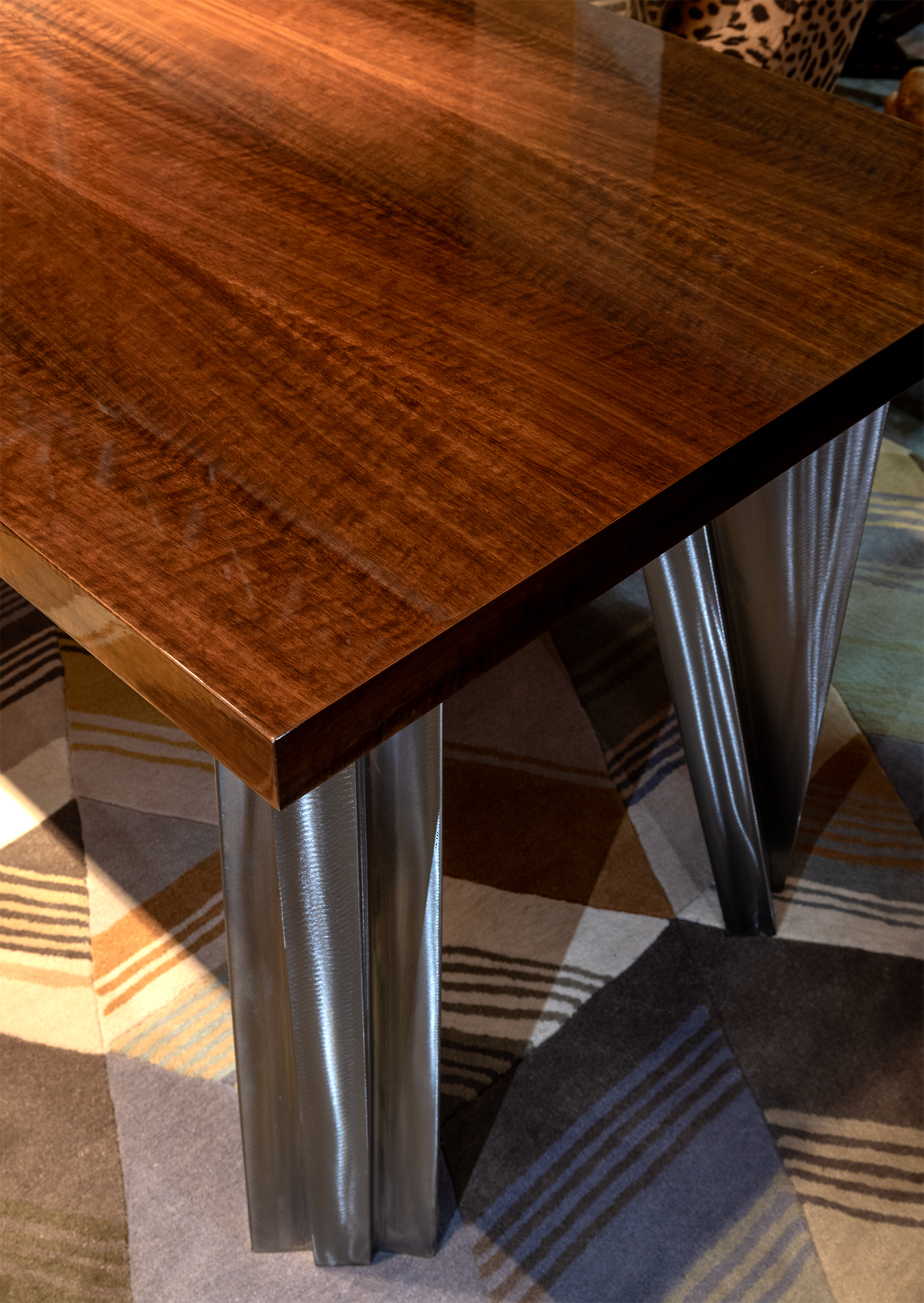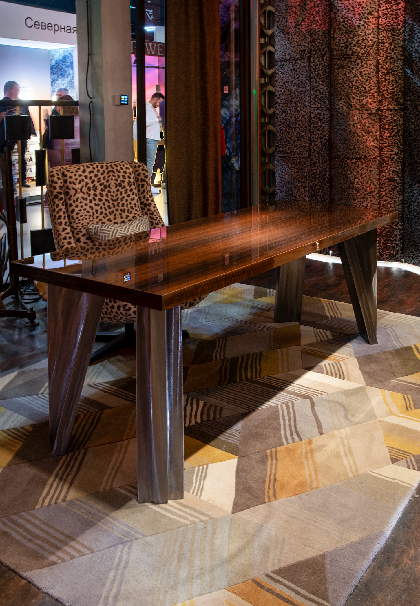 Проект эксклюзивного обеденного стола, черпающий вдохновение в знаковых архитектурных формах. Сочетание стальных опор, отсылающих к Дому Авиаторов, и столешницы из лакированного дерева создает гармоничный образ. Размеры стола выверены по принципам золотого и серебряного сечений, что придает изделию идеальные пропорции и эстетическую завершенность.