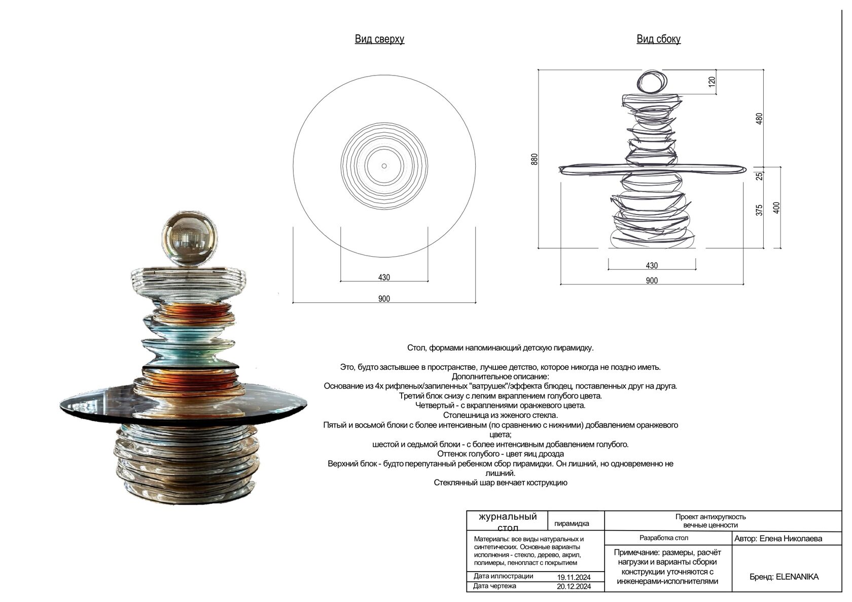 Итог: Результатом работы стал не просто функциональный предмет мебели, а многомерный арт-объект, который служит воплощением природной гармонии и динамики. Стол «Цветок» — это функциональная скульптура, способная преобразить пространство, предлагая уникальный визуальный и тактильный опыт, и являющаяся ярким символом современной русской дизайнерской мысли, объединяющей природу и искусство.