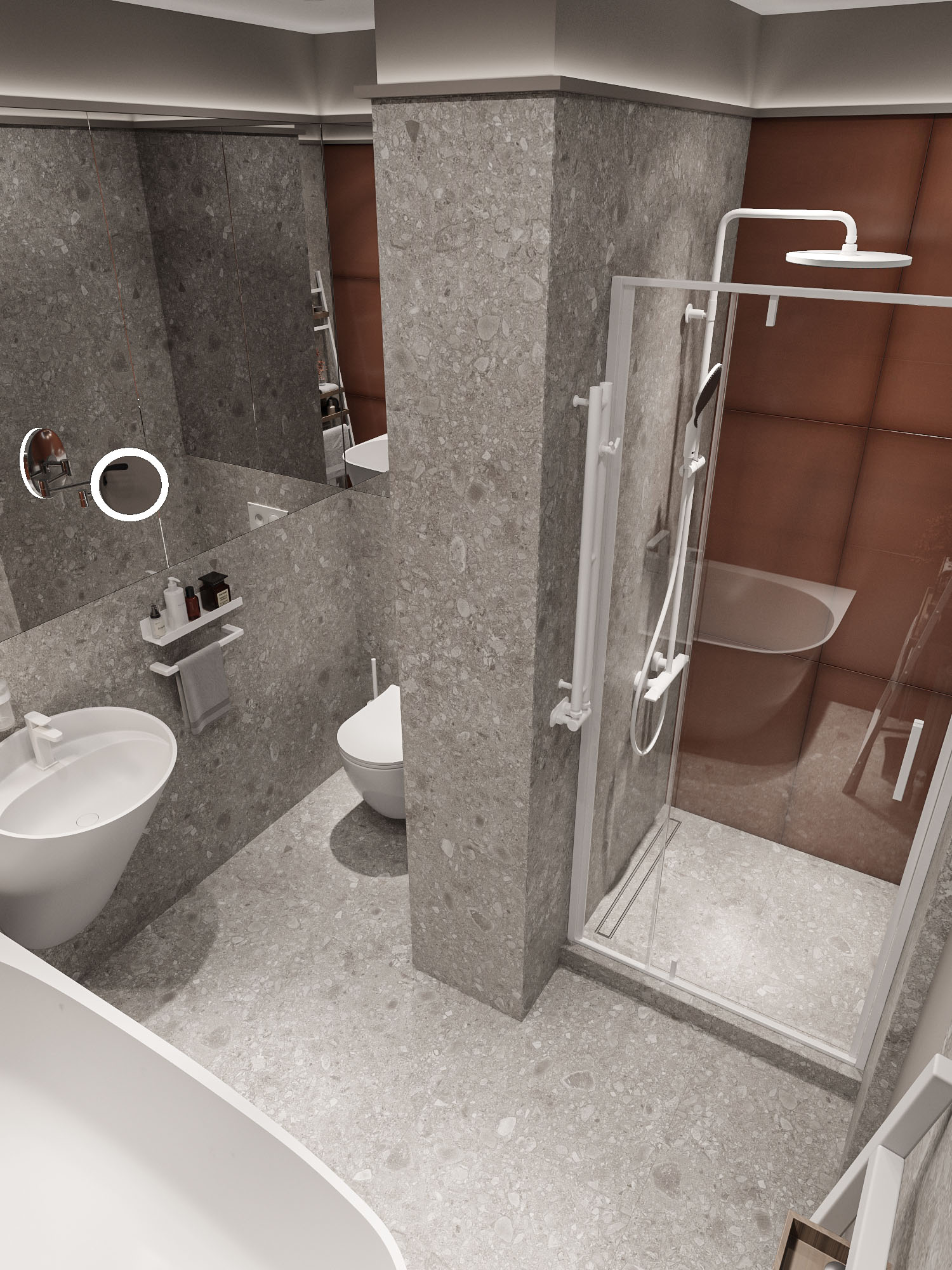 Итог: Итогом стал современный, высокофункциональный санузел, который выходит за рамки своего обыденного назначения. Это пространство, где продуманный дизайн стимулирует к творческому самовыражению и обеспечивает безукоризненный пользовательский опыт, демонстрируя, как утилитарная зона может стать настоящим акцентом проекта.