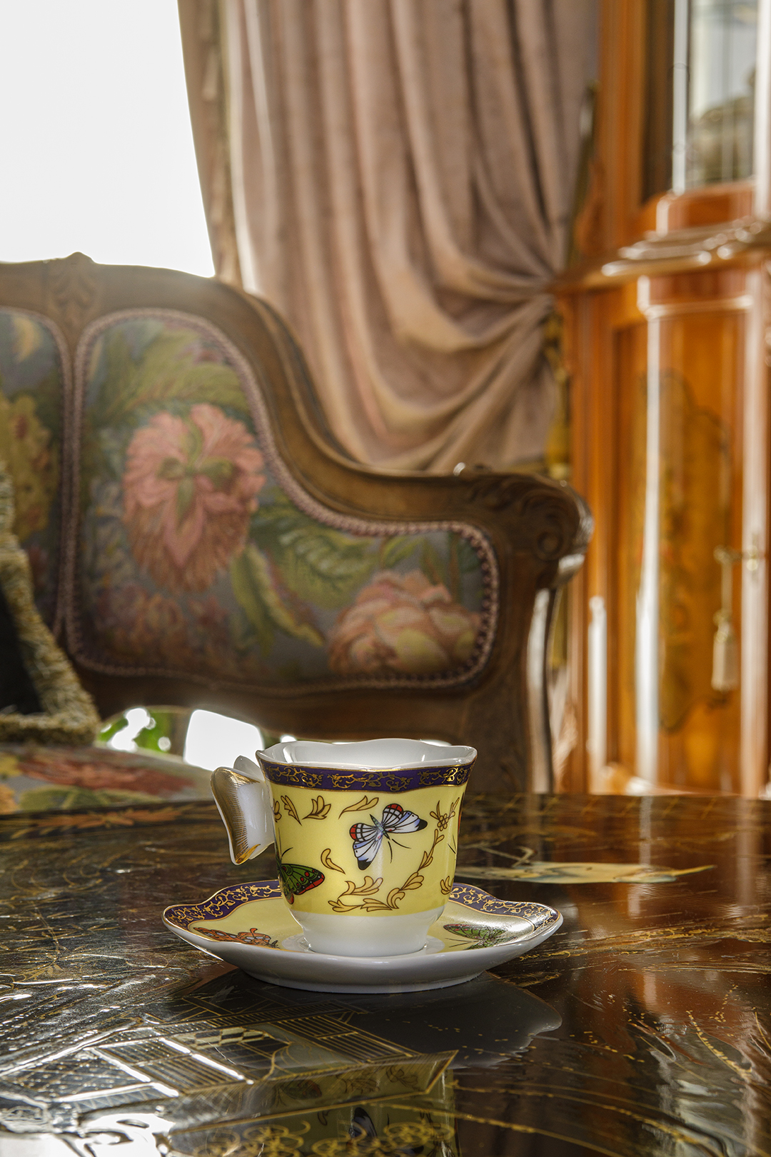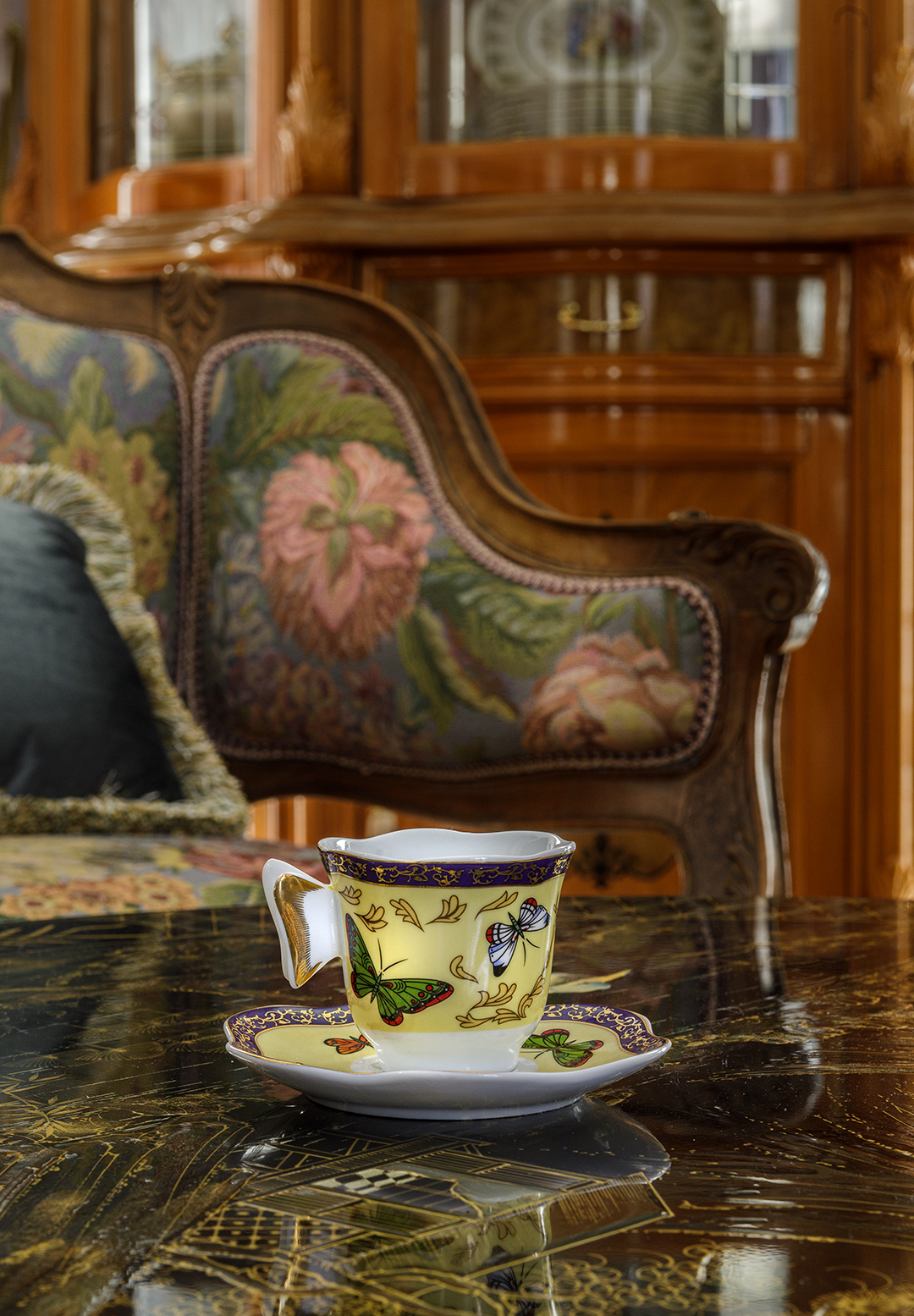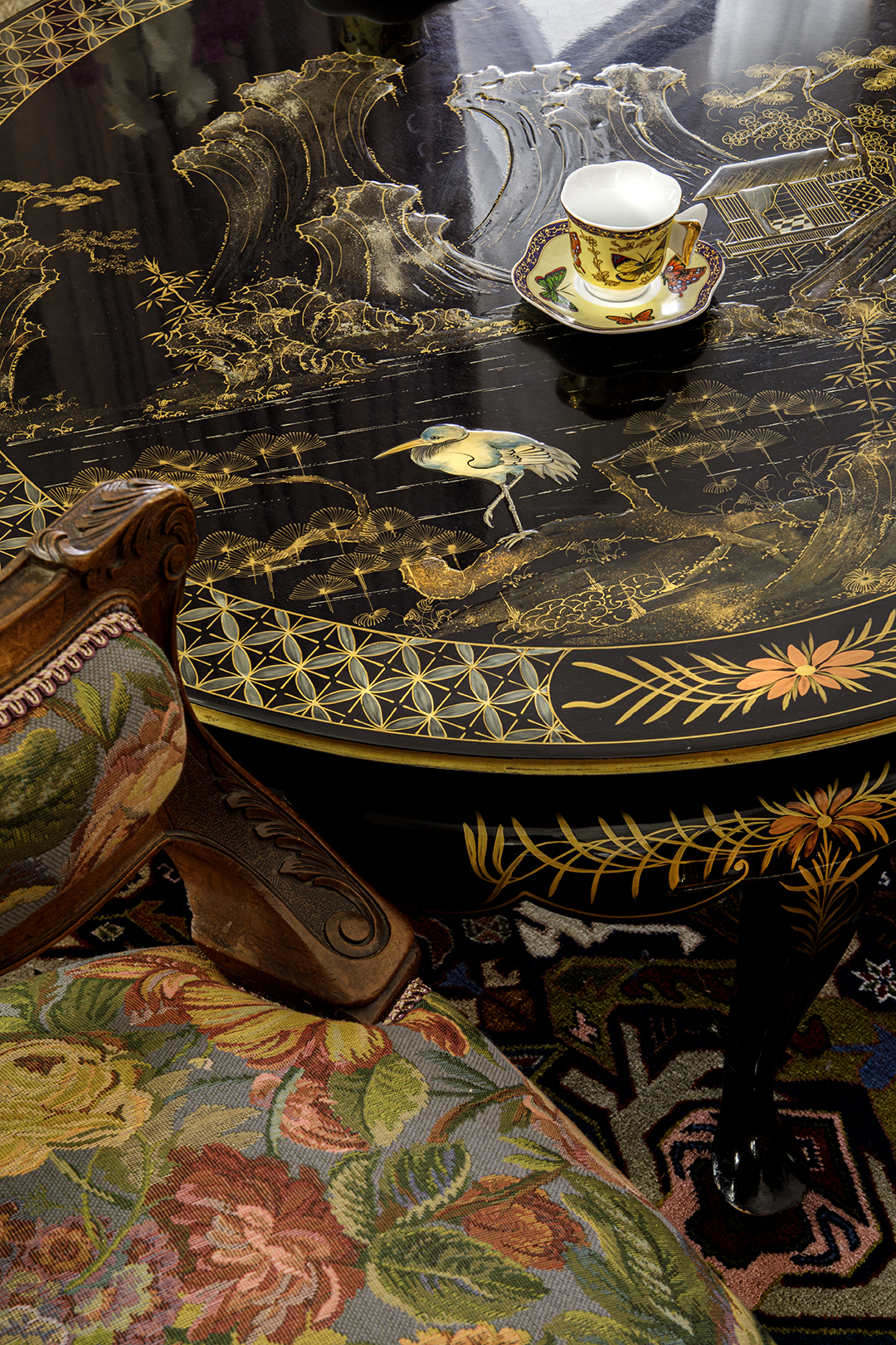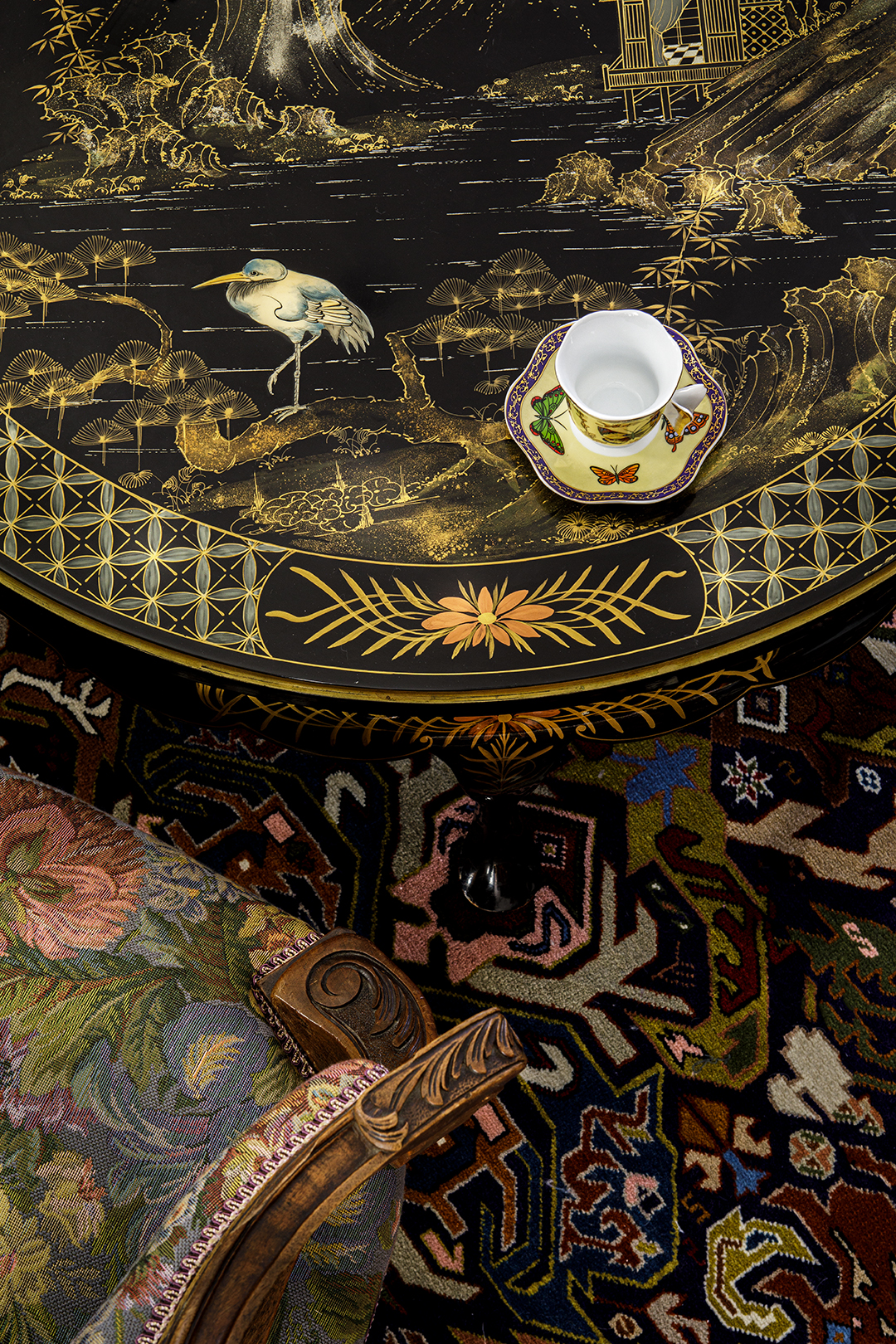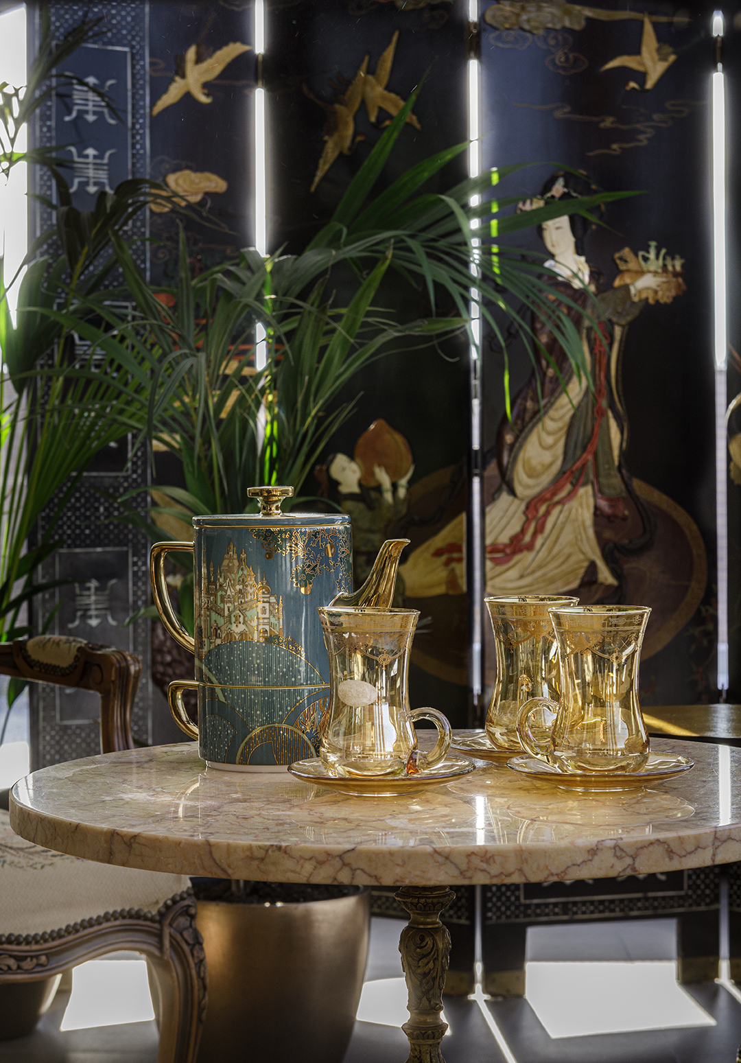 Концепция: Основная концепция проекта — виртуозное переосмысление существующего пространства и тонкая интеграция разнообразных стилевых элементов. Отталкиваясь от уже приобретенной винтажной мебели в классическом стиле и шинуазри, был разработан интерьер, где каждый элемент находит свое место. Ключевые изменения включали трансформацию продуваемой террасы в уютную отапливаемую веранду, скрытие кухни за раздвижной дверью с созданием нового оконного проема, а также прорубание окна в ванной комнате для максимального света и комфорта. Важной частью стало решение по декорированию технических дверей и акцентная художественная роспись по декоративной штукатурке в спальне, выполненная художником Геннадием Львовым.