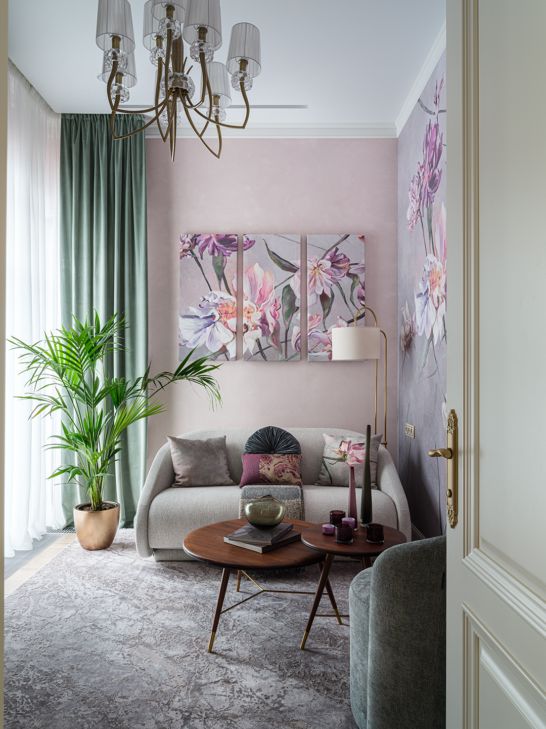 Этот проект представляет собой элегантную квартиру, специально разработанную для молодой женщины, посвятившей себя бальным танцам. Интерьер гармонично сочетает функциональность тренировочного пространства с изысканной жилой зоной.