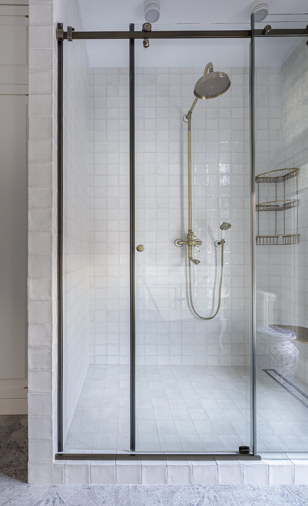 Концепция: Основная идея проекта заключалась в переосмыслении существующего дизайна через призму креативных решений. Вместо демонтажа, плитка была тщательно подготовлена и окрашена в новые актуальные оттенки. Ключевым акцентом стал фриз, выполненный в сложной и изящной технике трафаретной росписи, что позволило не только обновить интерьер, но и придать ему уникальный художественный характер и индивидуальность.