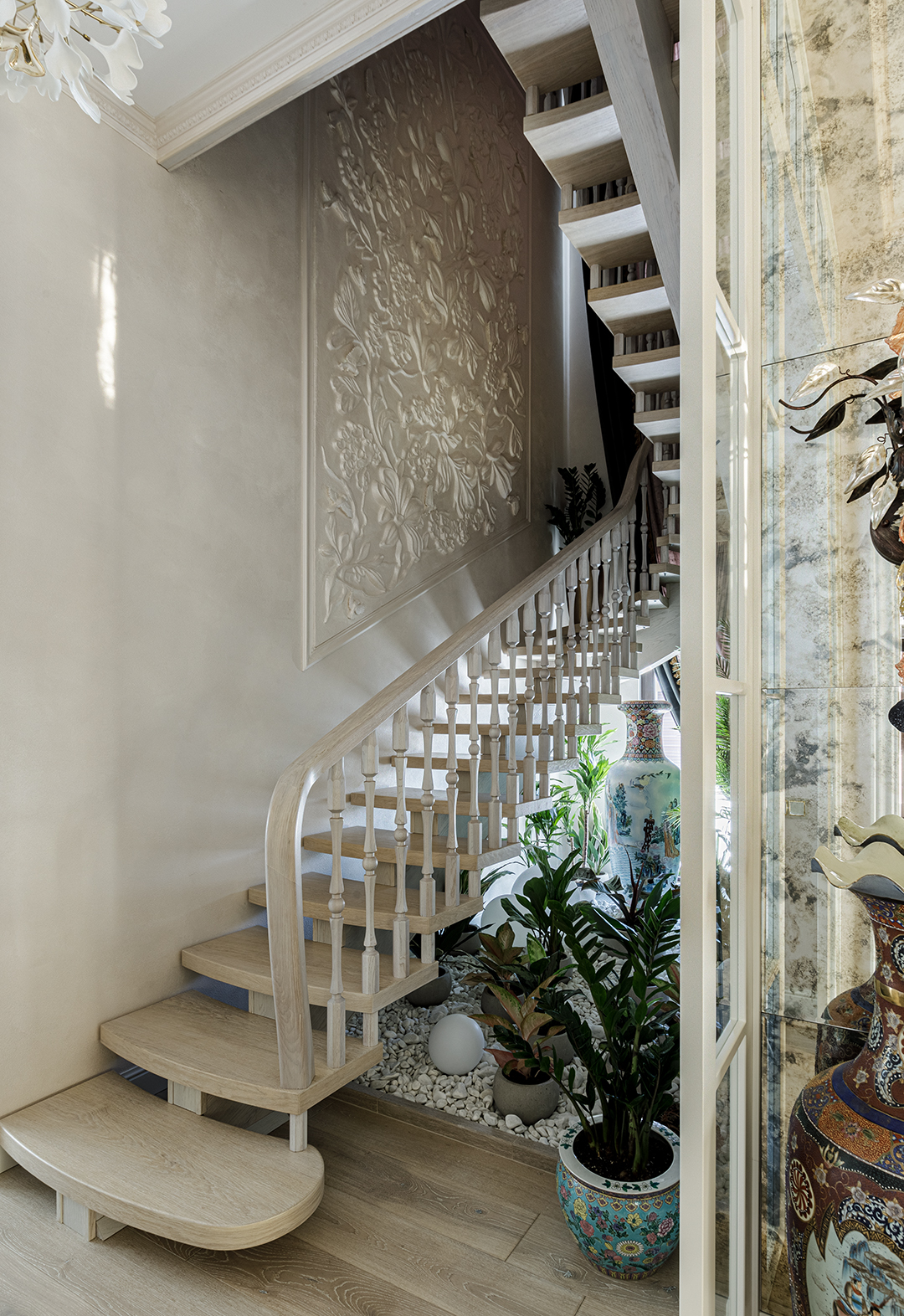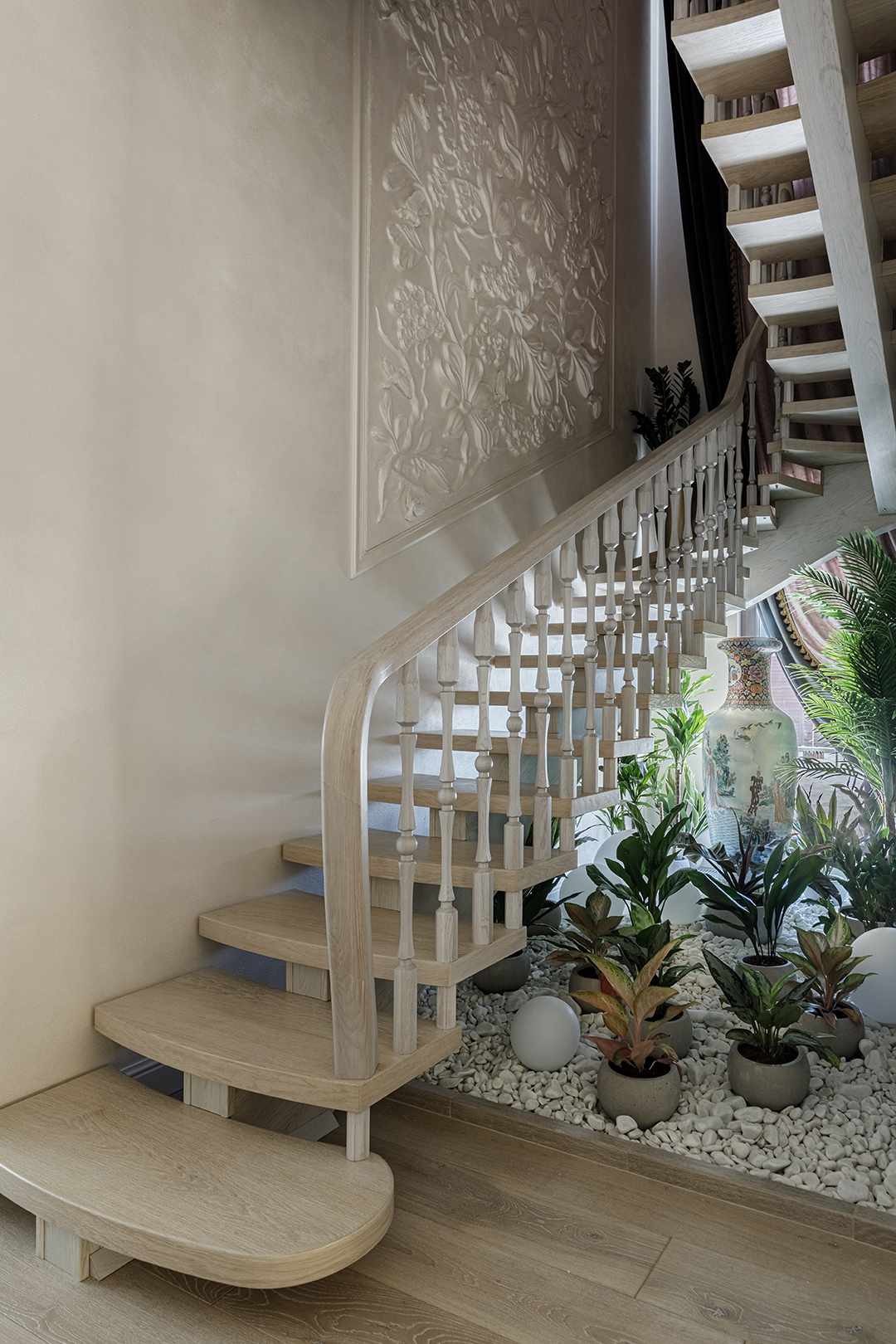 Итог: Результатом стало создание уникального, многослойного интерьера, в котором функциональность и эстетика безупречно сочетаются. Дом обрел новое дыхание, став воплощением уюта и элегантности, где каждый уголок наполнен светом и смыслом. Проект демонстрирует, как даже в условиях ограниченной свободы действий можно достичь выдающихся результатов, создав по-настоящему индивидуальное и комфортное жилое пространство для семьи.