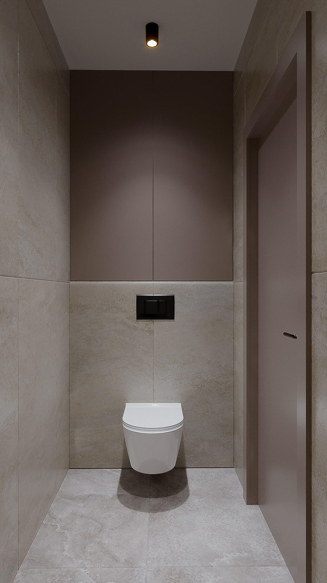 В закрытом состоянии дверь бесследно растворяется в плоскости стены, создавая безупречно ровную, монолитную поверхность. Этот прием подчеркивает наше стремление к абсолютной гармонии и чистоте линий, где даже утилитарные элементы становятся частью общего замысла.