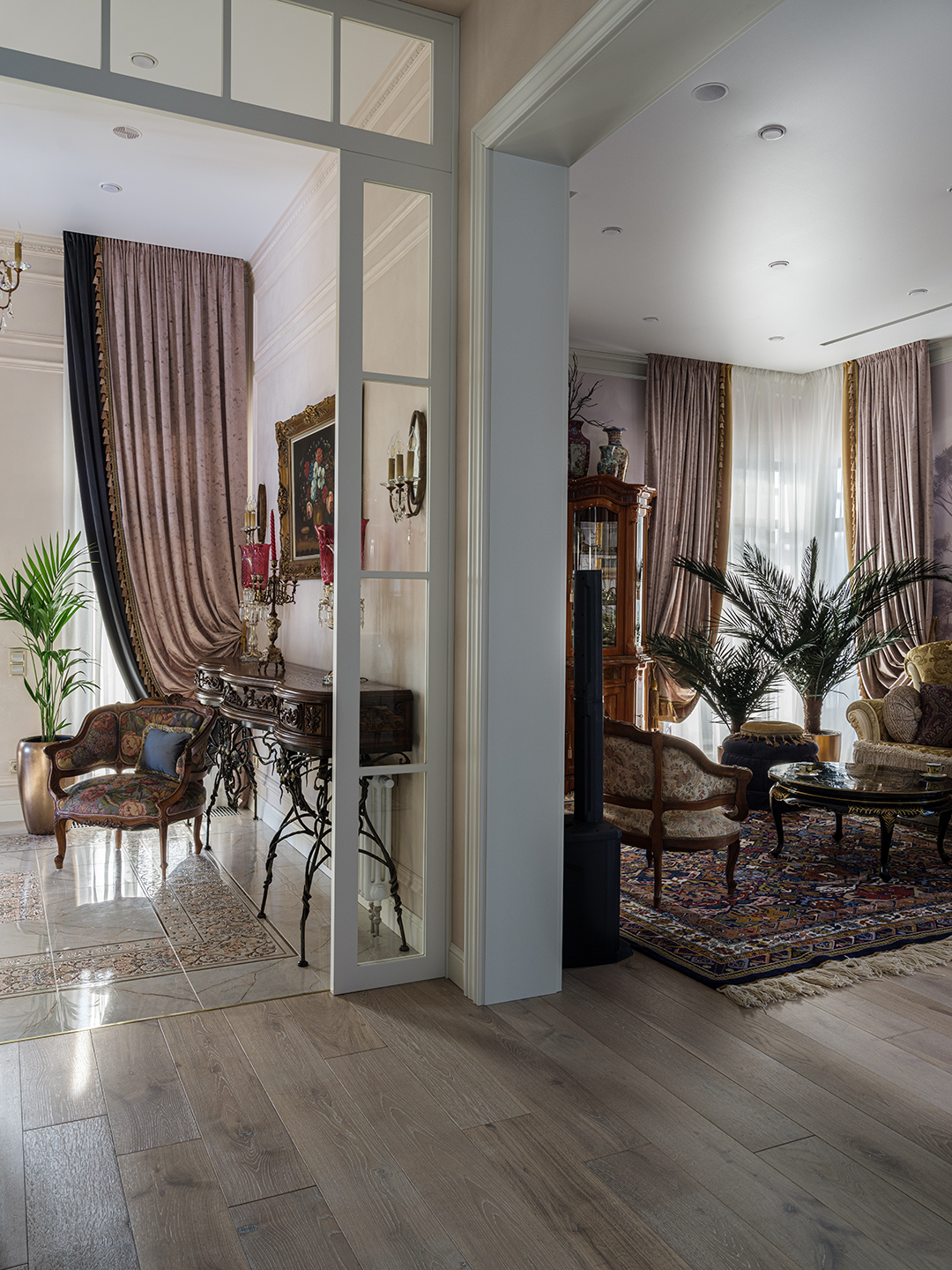 Итог: Результатом стала не просто модернизация, а создание полноценных пространств, которые являются воплощением функциональной роскоши. Эти интерьеры идеально интегрированы в общую классическую концепцию квартиры, предлагая жильцам не только удобство, но и ежедневное эстетическое наслаждение, превращая бытовые зоны в истинные уголки гармонии и стиля.