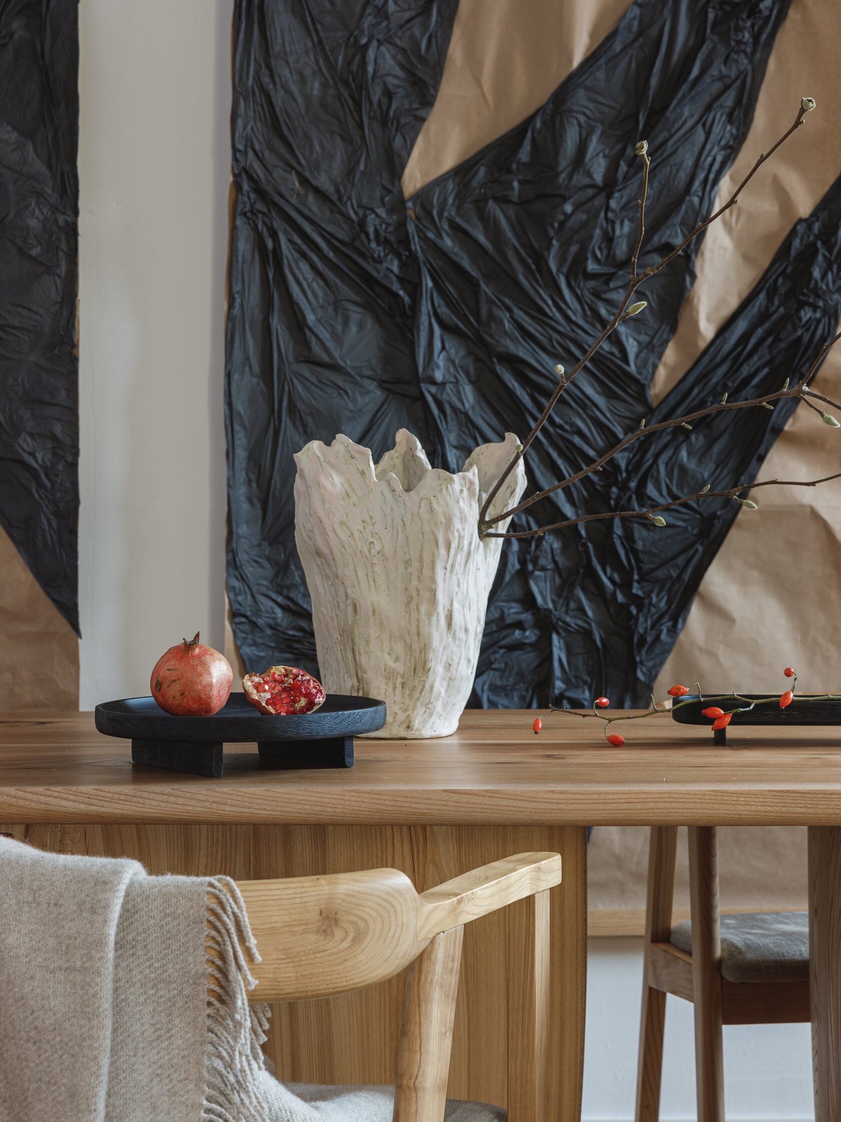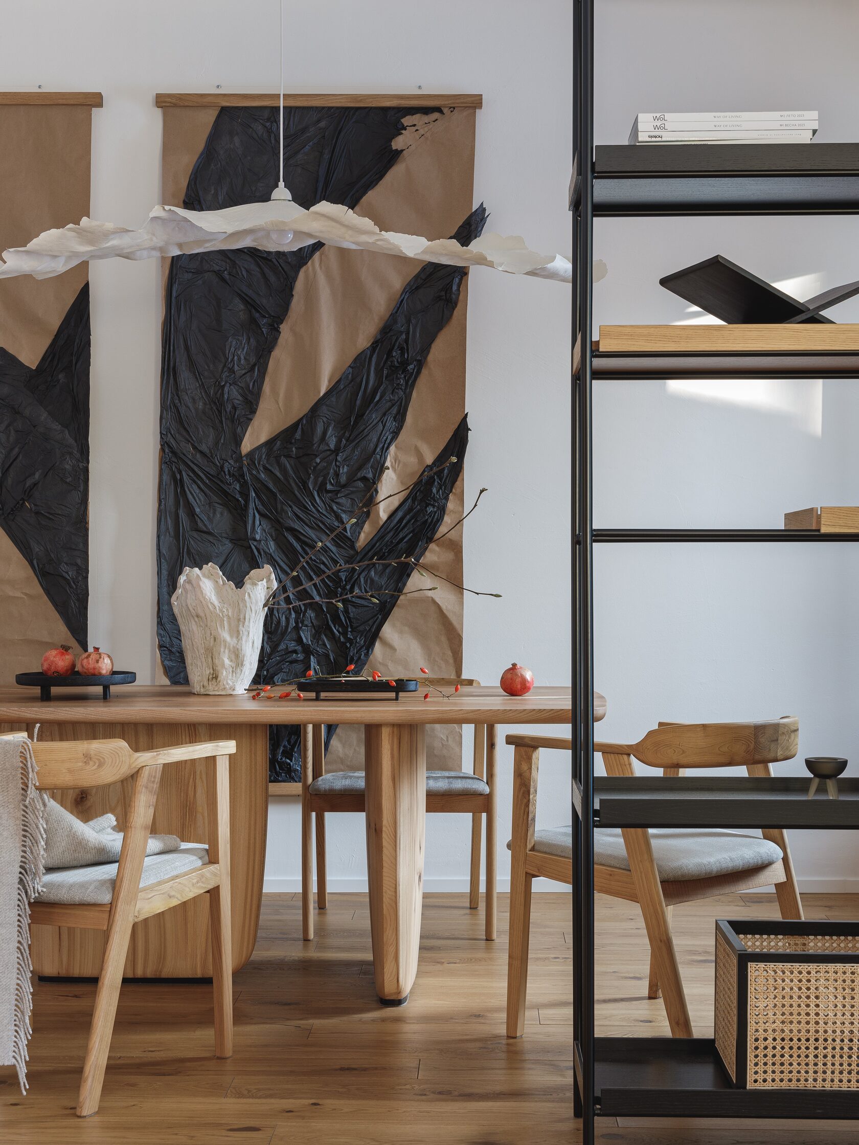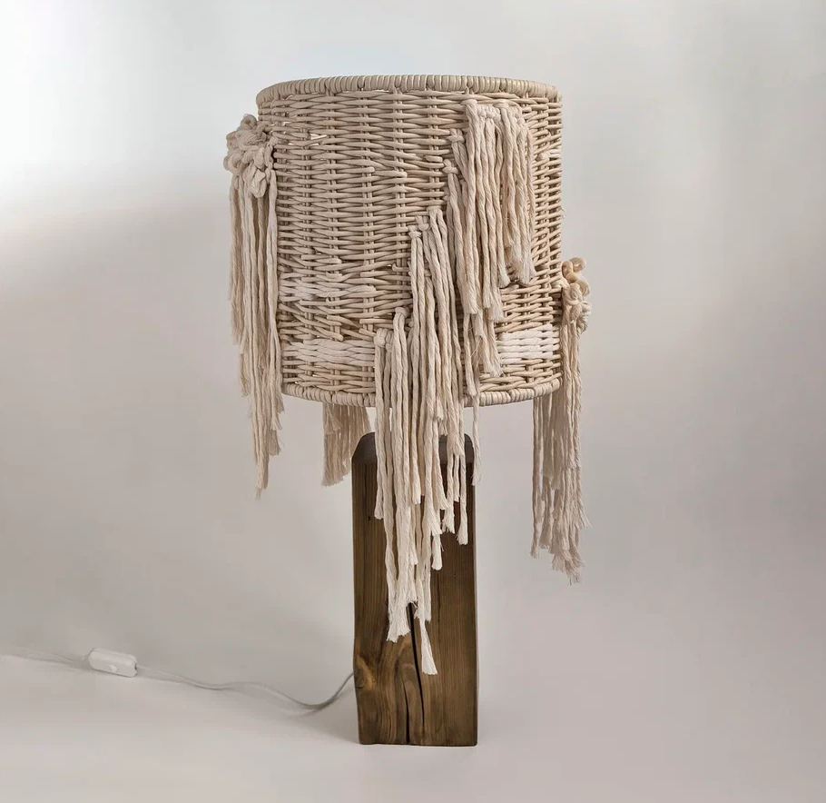 Контрасты: сочетание грубого дерева и изящного плетения подчеркивает гармонию противоположностей.