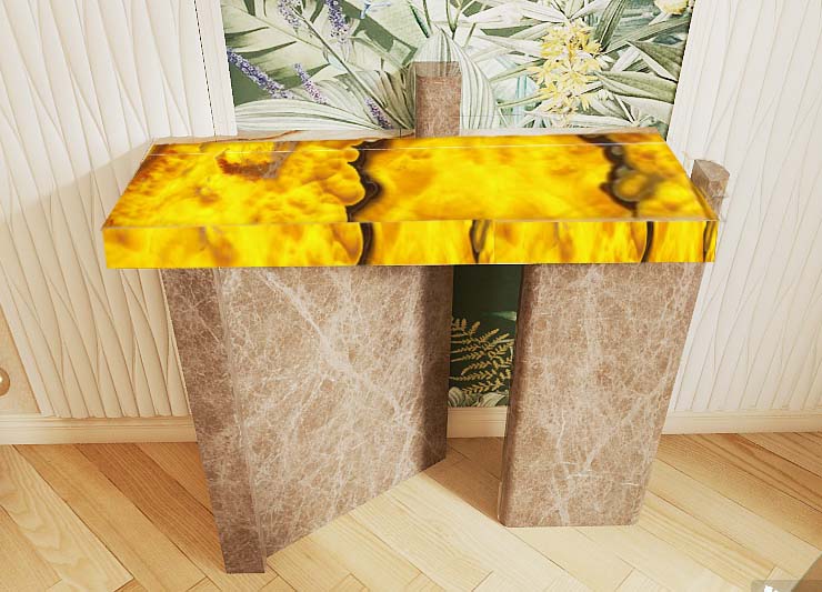 Эта консоль — пример того, как простые формы могут создать нечто особенное. В её дизайне использованы всем знакомые геометрические фигуры: треугольник, прямоугольник и круг. Они гармонично сочетаются между собой, образуя стильный и современный силуэт. Особенность модели — столешница, разделённая на три части по диагонали. Такое решение делает консоль более динамичной и интересной для взгляда. Главный акцент изделия — использование натурального мрамора. В консоли сочетаются три разных вида этого камня, каждый со своим уникальным рисунком и оттенком. Благодаря этому столешница выглядит особенно выразительно. «Лазарь» — это не просто мебель, а удачное сочетание природных материалов, геометрических форм и произведения искусства. Возможна вариативность использования материалов, например, сочетание натурального камня и массива дерева или натурального камня и МДФ в шпоне, что делает изготовление данной консоли интересным для столярного производства.