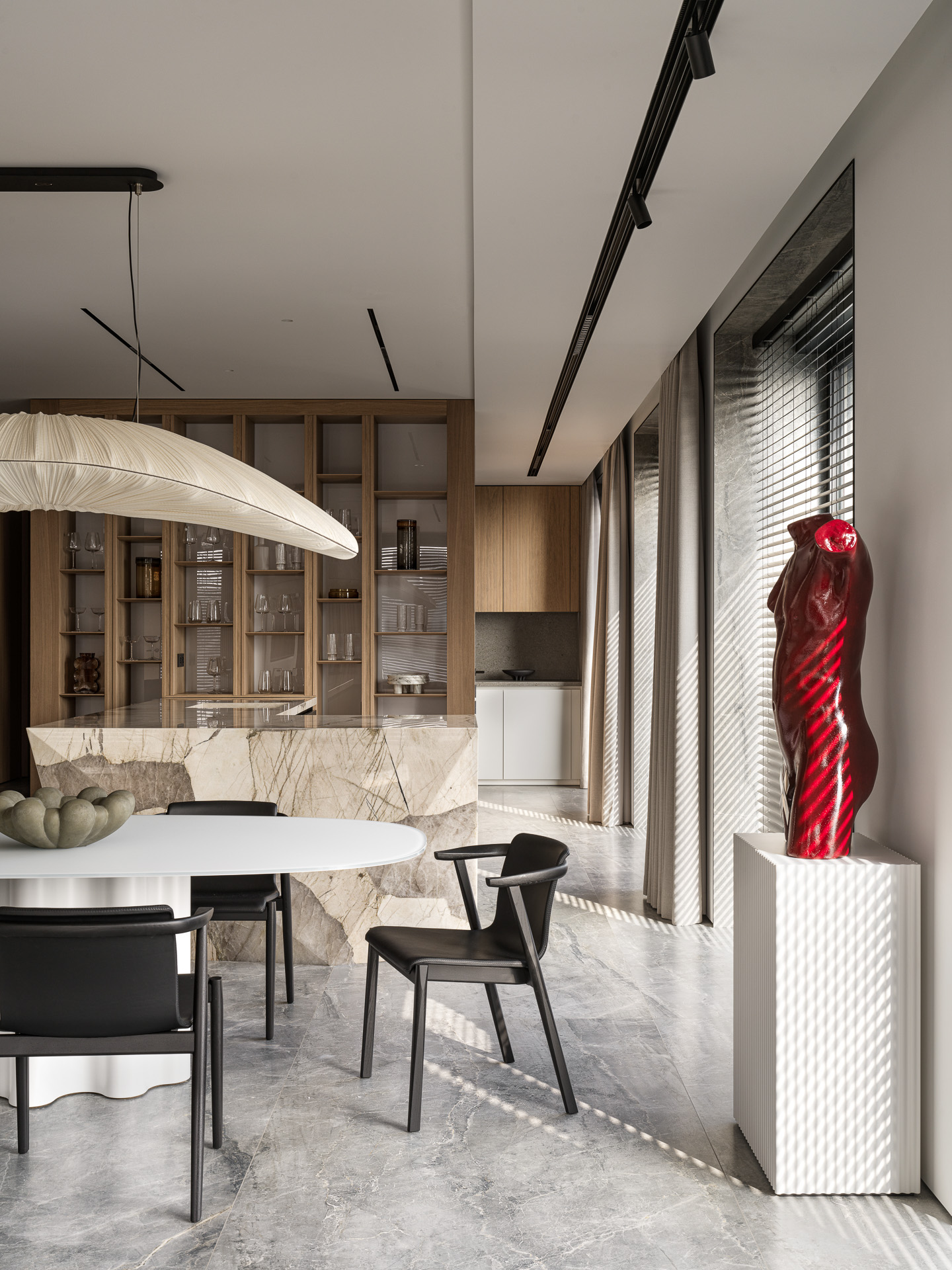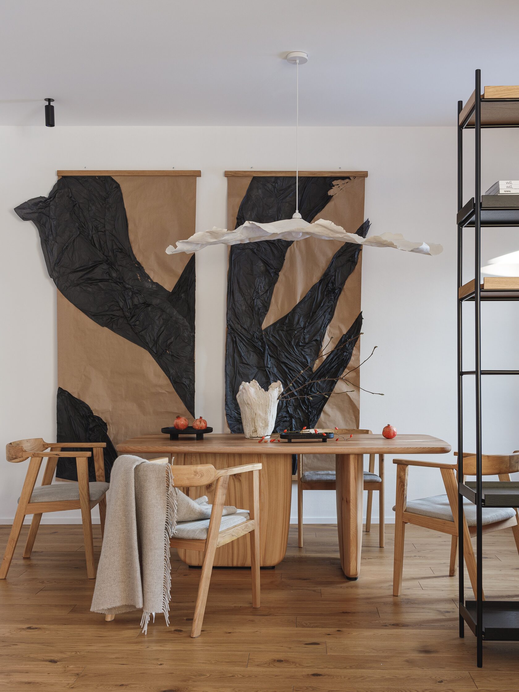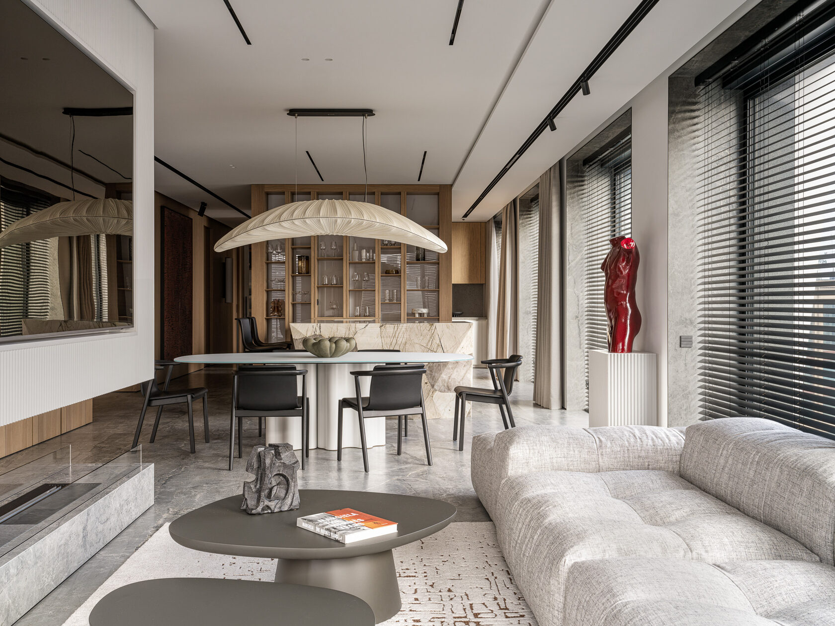 Этот дизайн-проект квартиры воплощает идею о том, что искусство способно не просто украшать, но и формировать пространство. Каждый арт-объект здесь выступает ключевым элементом, диктующим цветовую гамму, фактуру материалов и общую атмосферу, создавая гармоничное и вдохновляющее жилое пространство.