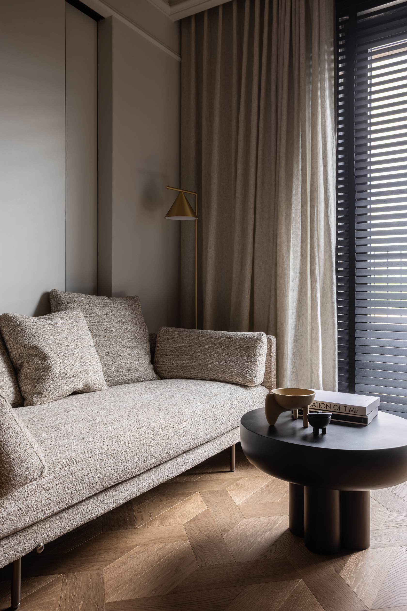 Двухэтажный таунхаус площадью 200 м² создан для молодой семейной пары, любящей путешествия, литературу, искусство и природу. Интерьер отражает их характер — спокойствие, размеренность и постоянное стремление к новым знаниям.