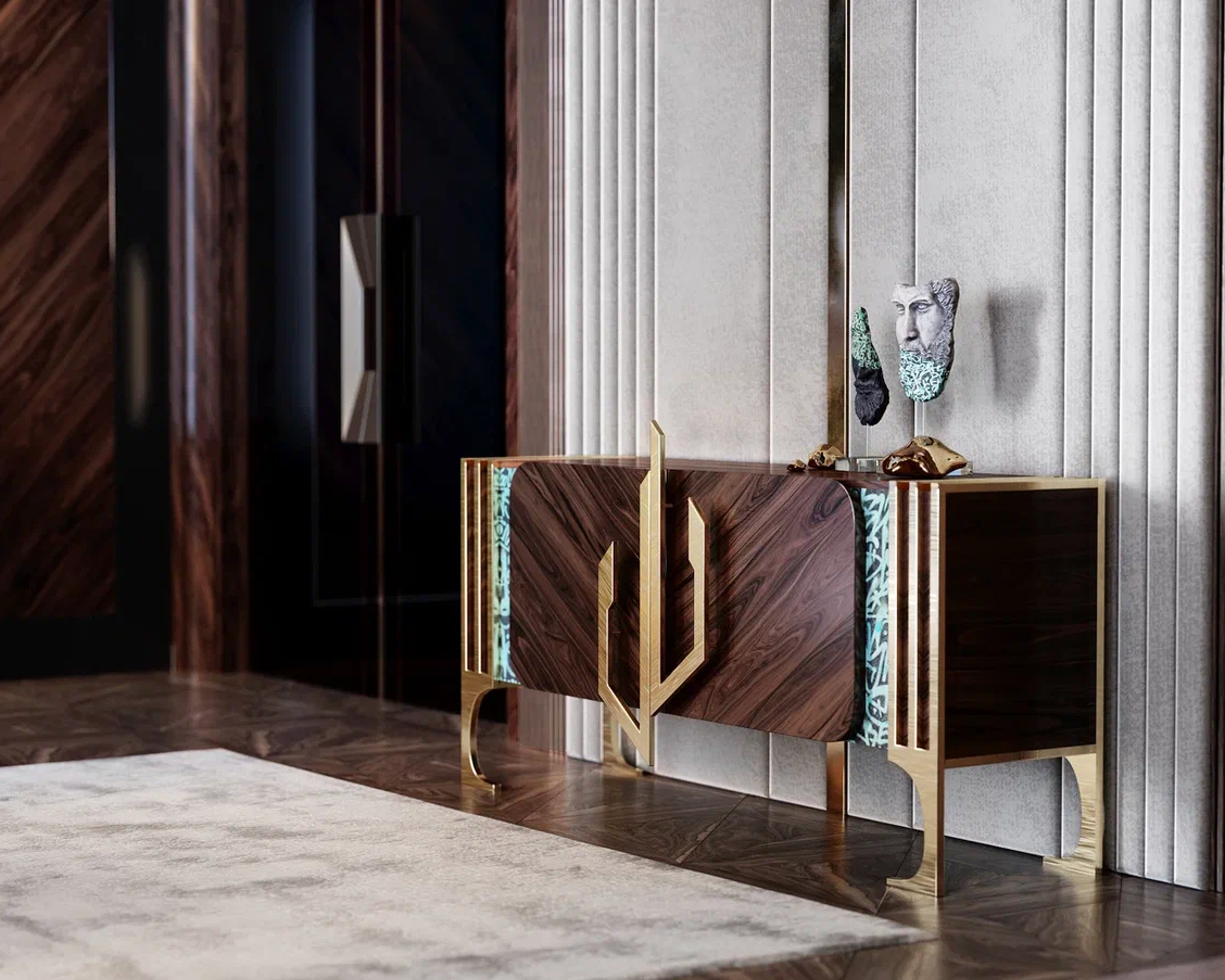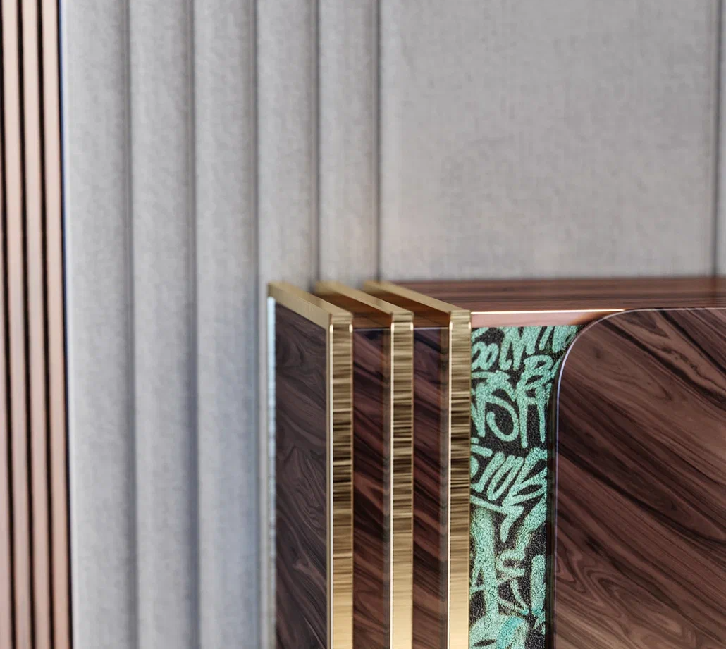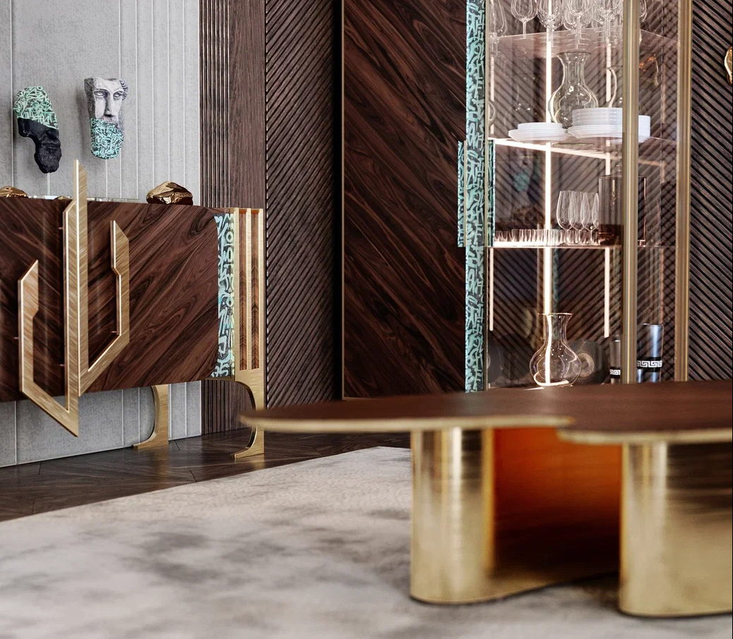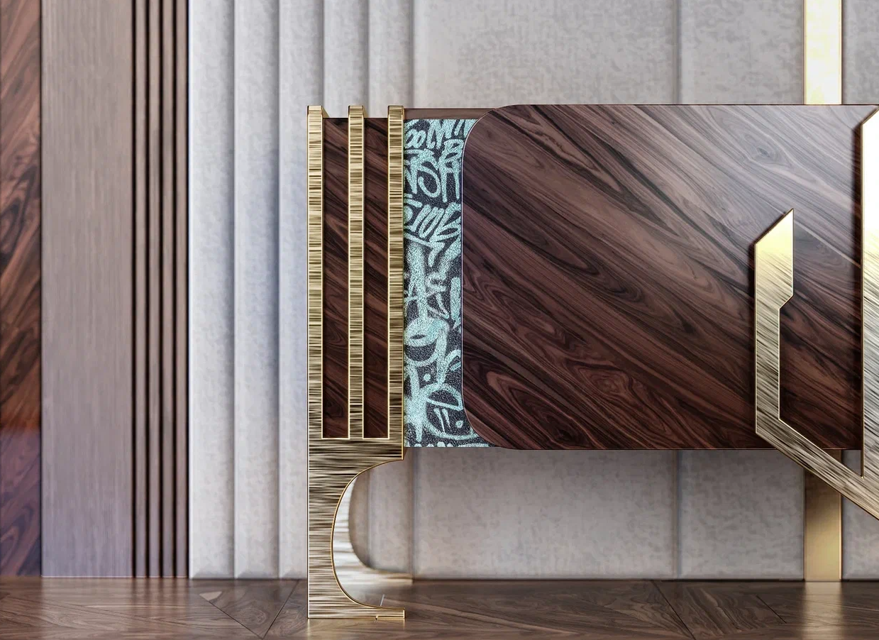 Стиль: Ар-деко с элементами древнерусской символики Концепция коллекции Каждый предмет мебели — это зашифрованное послание из древнерусского алфавита, передающее: