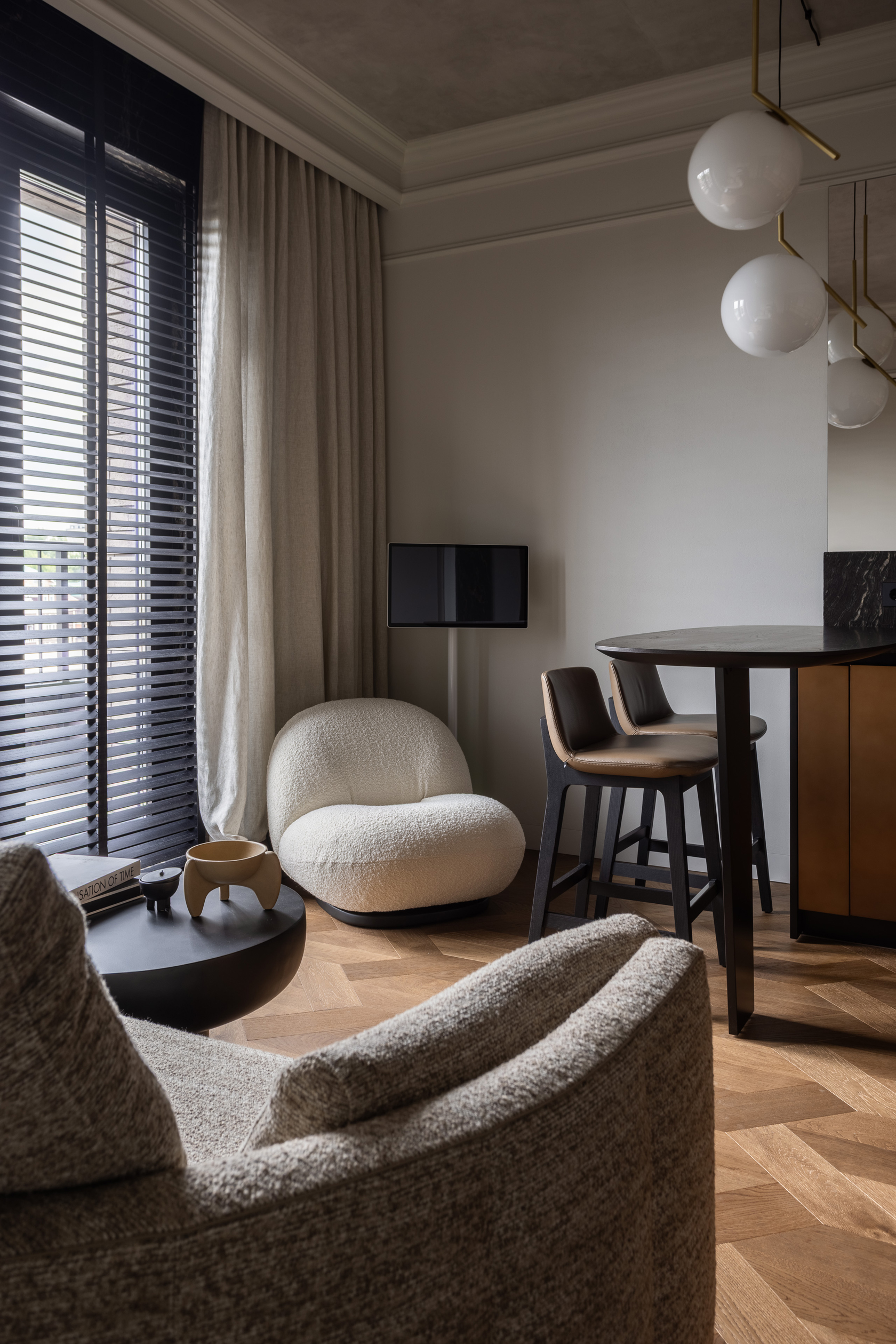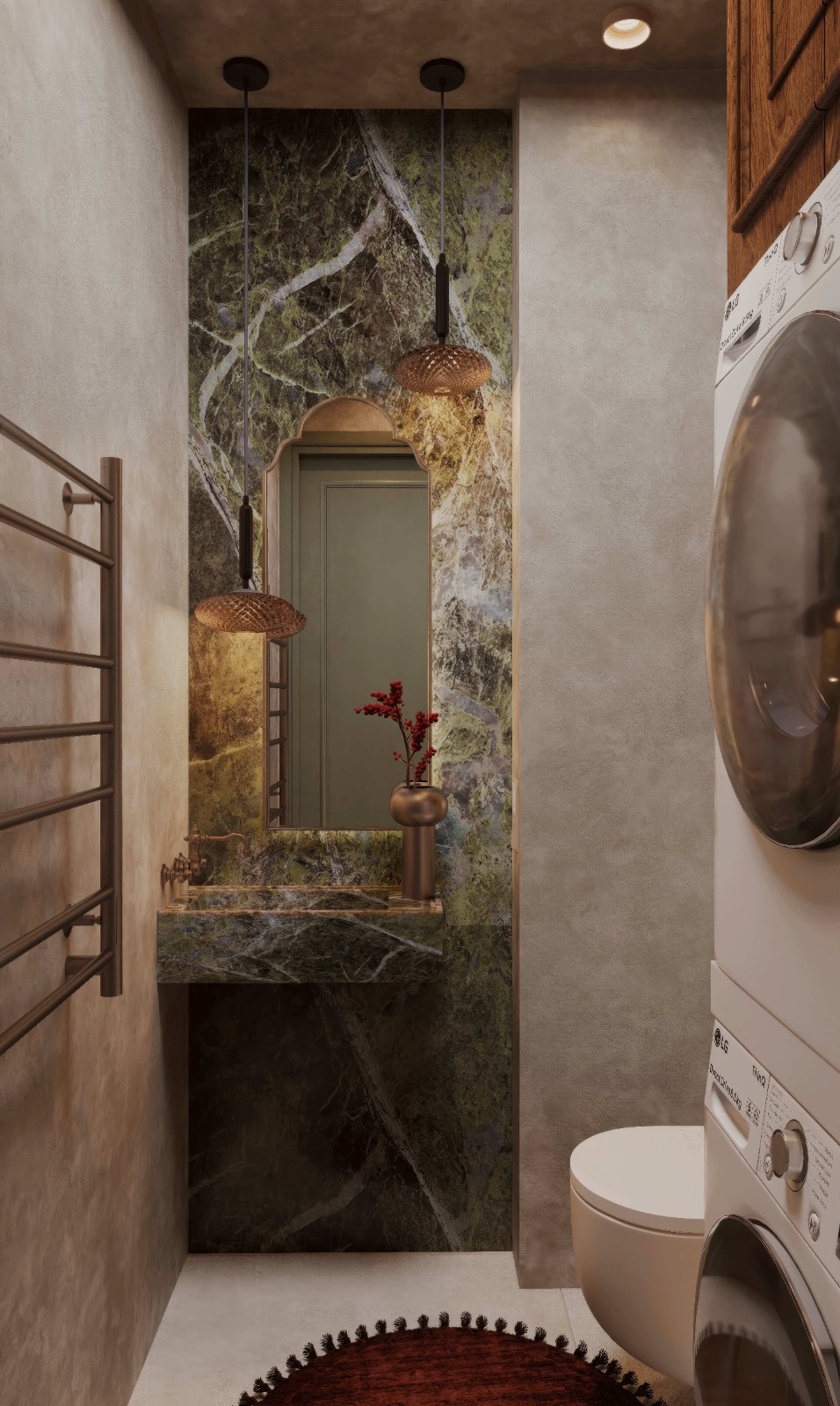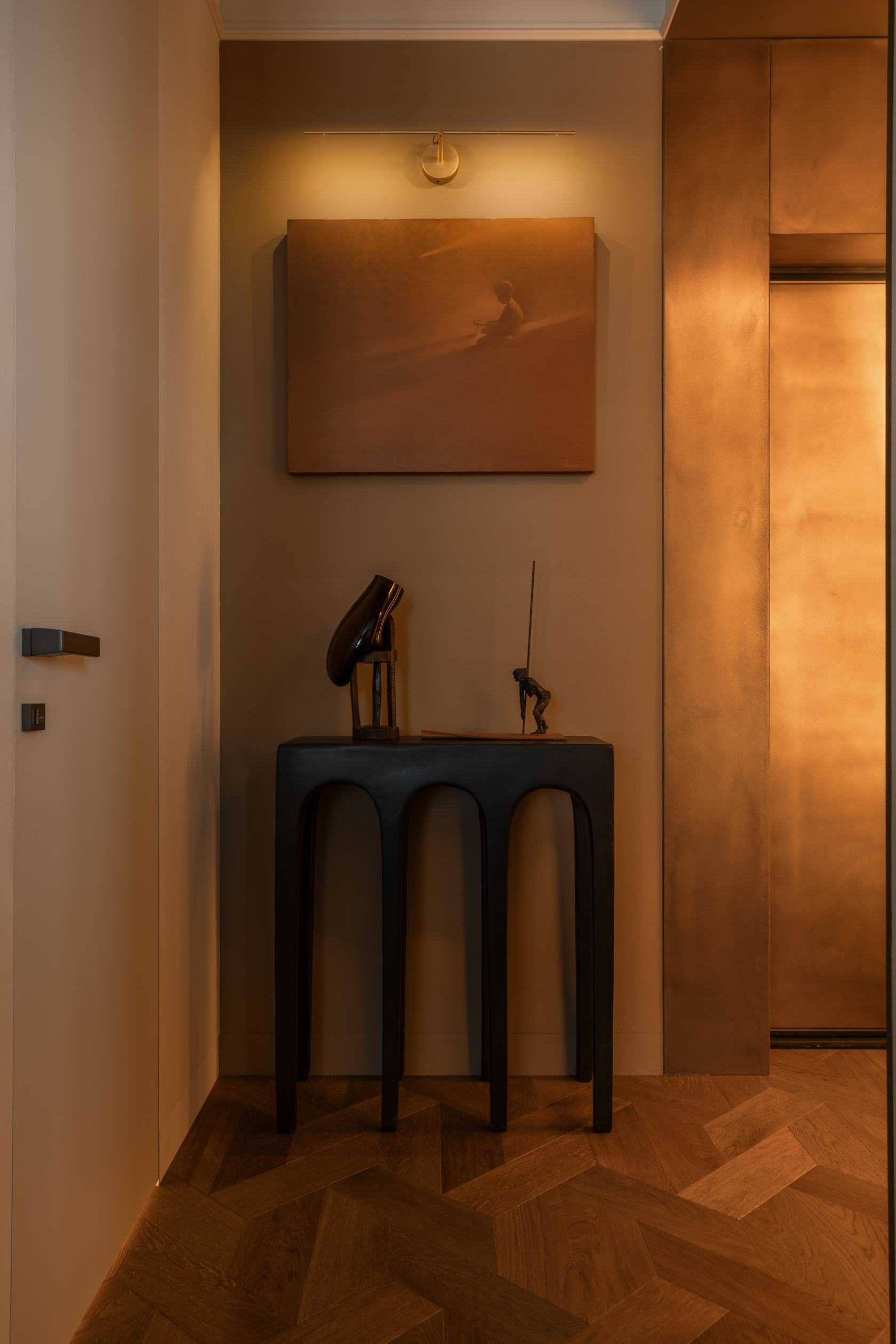 Итог: Итогом работы стало создание уникального, высокофункционального и эстетически безупречного пространства. Эта квартира — не просто жилье, а воплощенное 'место силы', где искусство, комфорт и индивидуальность переплетаются, формируя идеальную среду для восстановления, творчества и гармоничной жизни в ритме большого города.