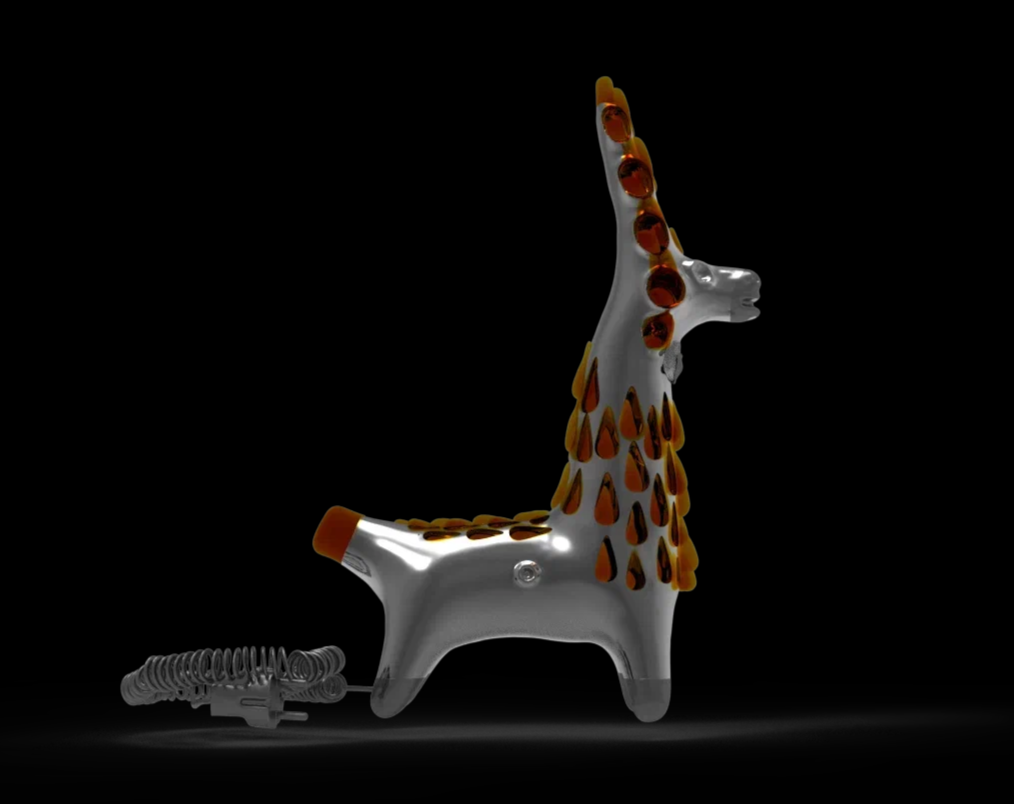 Две уникальные вариации лампы: «Леденцовая» прозрачность. Эта версия лампы словно переносит в мир детских воспоминаний и сказок. Полупрозрачный корпус в приглушённых оттенках красного и жёлтого напоминает карамельные леденцы. Мягкий свет, проходя сквозь тело лося, создаёт волшебную игру теней и бликов. Такая лампа превратит любое пространство в сказочный уголок, станет не просто источником света, а настоящим магическим акцентом интерьера. Элегантность металла с прозрачными вставками. Строгая и в то же время завораживающая вариация лампы выполнена в блестящем металлическом корпусе с выразительными прозрачными элементами тёмно-красно- коричневого оттенка. Контраст холодного металла и тёплого света создаёт ощущение глубины и динамики. Эта лампа идеально подойдёт для интерьеров, где ценят сочетание классики и современного шика.