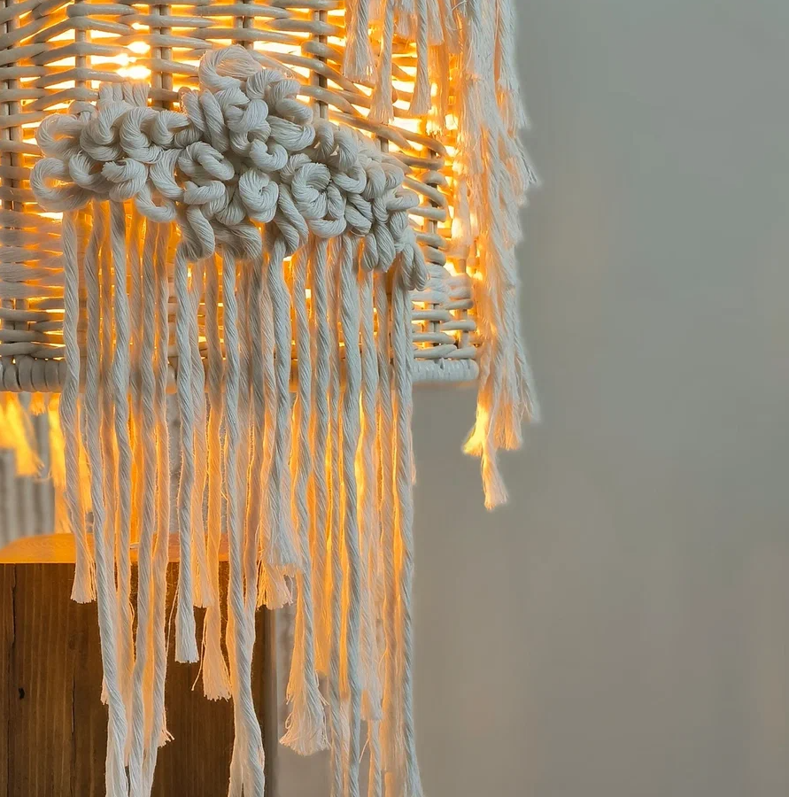 Плафоны: плетение из бумажной лозы и ткачество хлопковым шнуром создают нежные, воздушные формы.