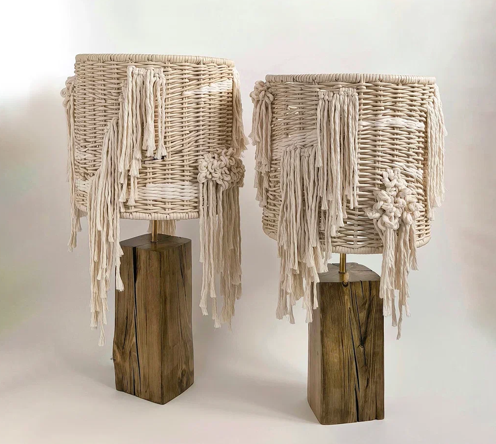 Основание светильников — это натуральное дерево, обработанное морем, что делает каждый светильник уникальным.