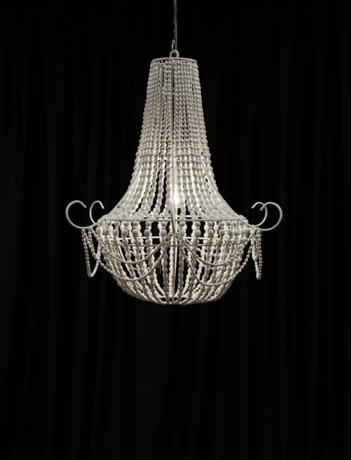 Люстра диаметром 85 см и высотой 125 см — не просто источник света, а арт-объект, подчеркивающий эстетику натуральных материалов. Собранная из множества деревянных бусин, она отбрасывает мягкие, живые тени и наполняет пространство ощущением тепла и уюта.