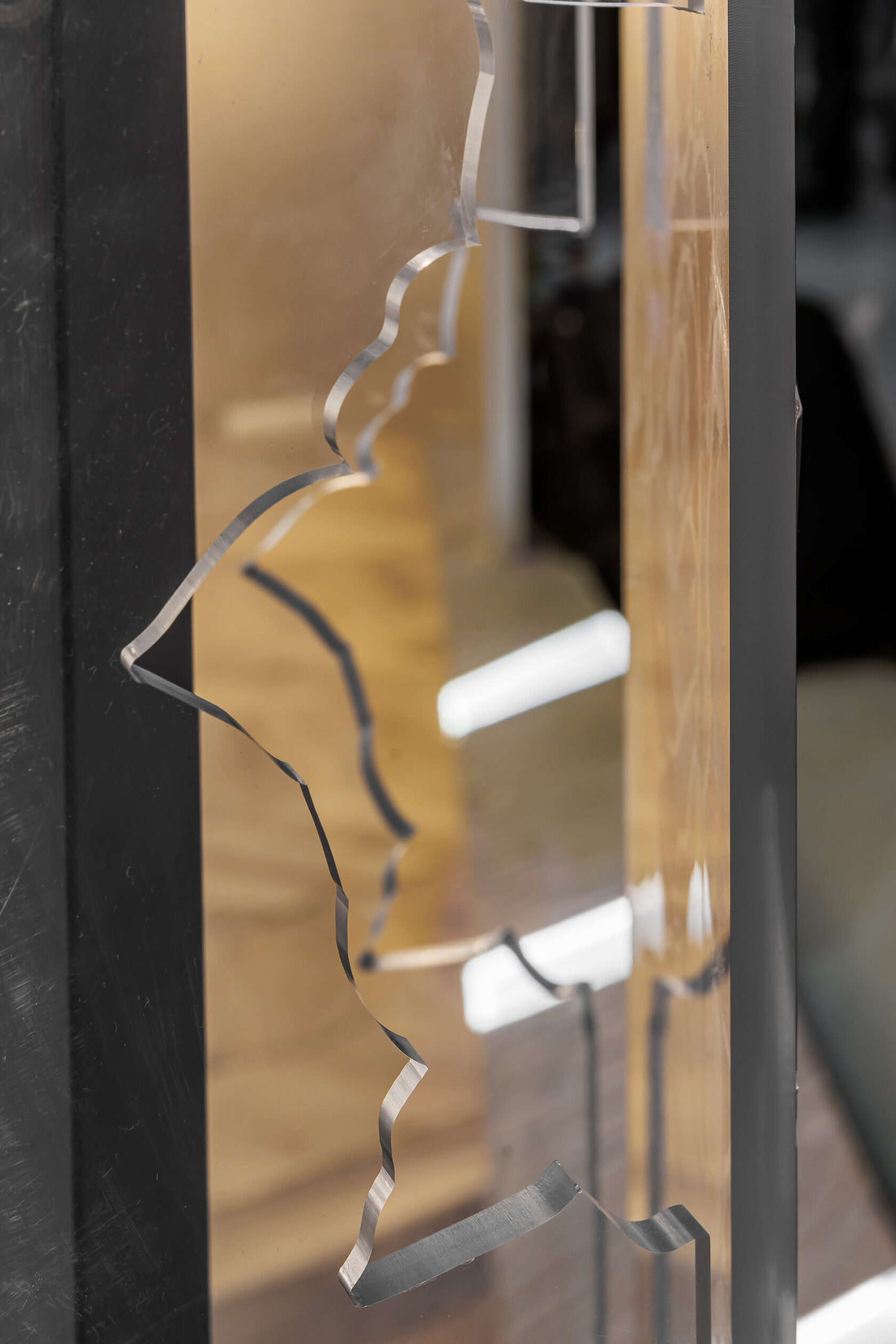 Стеллаж Aero — это результат плодотворного сотрудничества между Кузнечной мастерской «Новый стиль» и предметным дизайнером Ильей Легчатовым. Созданный из высококачественной нержавеющей стали, он представляет собой цельную сварную конструкцию, отличающуюся сатинированными полками и изогнутыми вертикальными элементами. Эти элементы, вдохновленные лопатками авиадвигателей, придают изделию уникальную динамику и визуальную легкость. Габариты стеллажа составляют 1600×300×2200 мм.