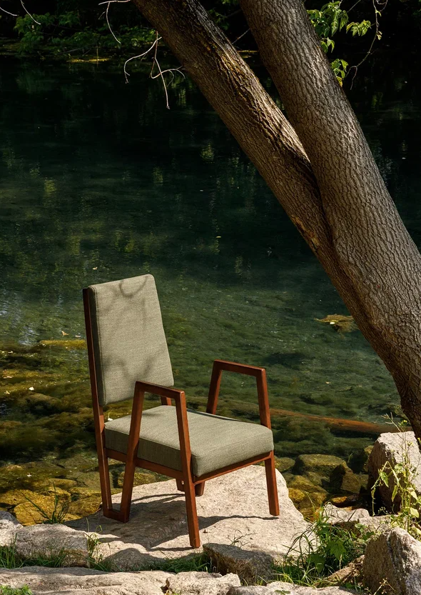Кресло Ритма — это авторское произведение, созданное в коллаборации с компанией ХочуСтул. Оно сочетает в себе лаконичные формы стиля мидсенчури с современной идеей непрерывного движения и развития.