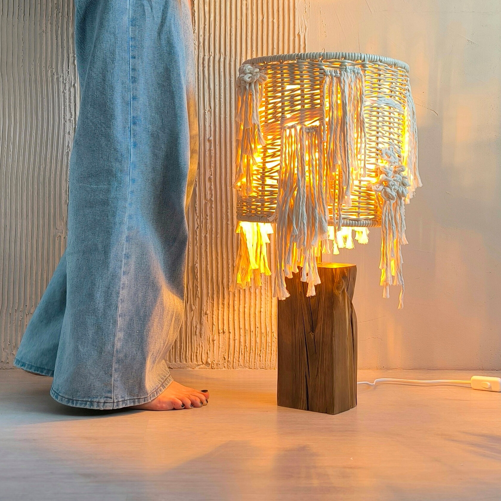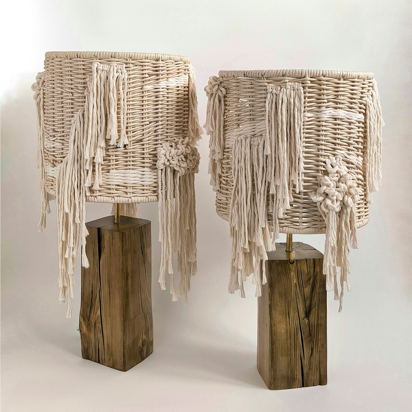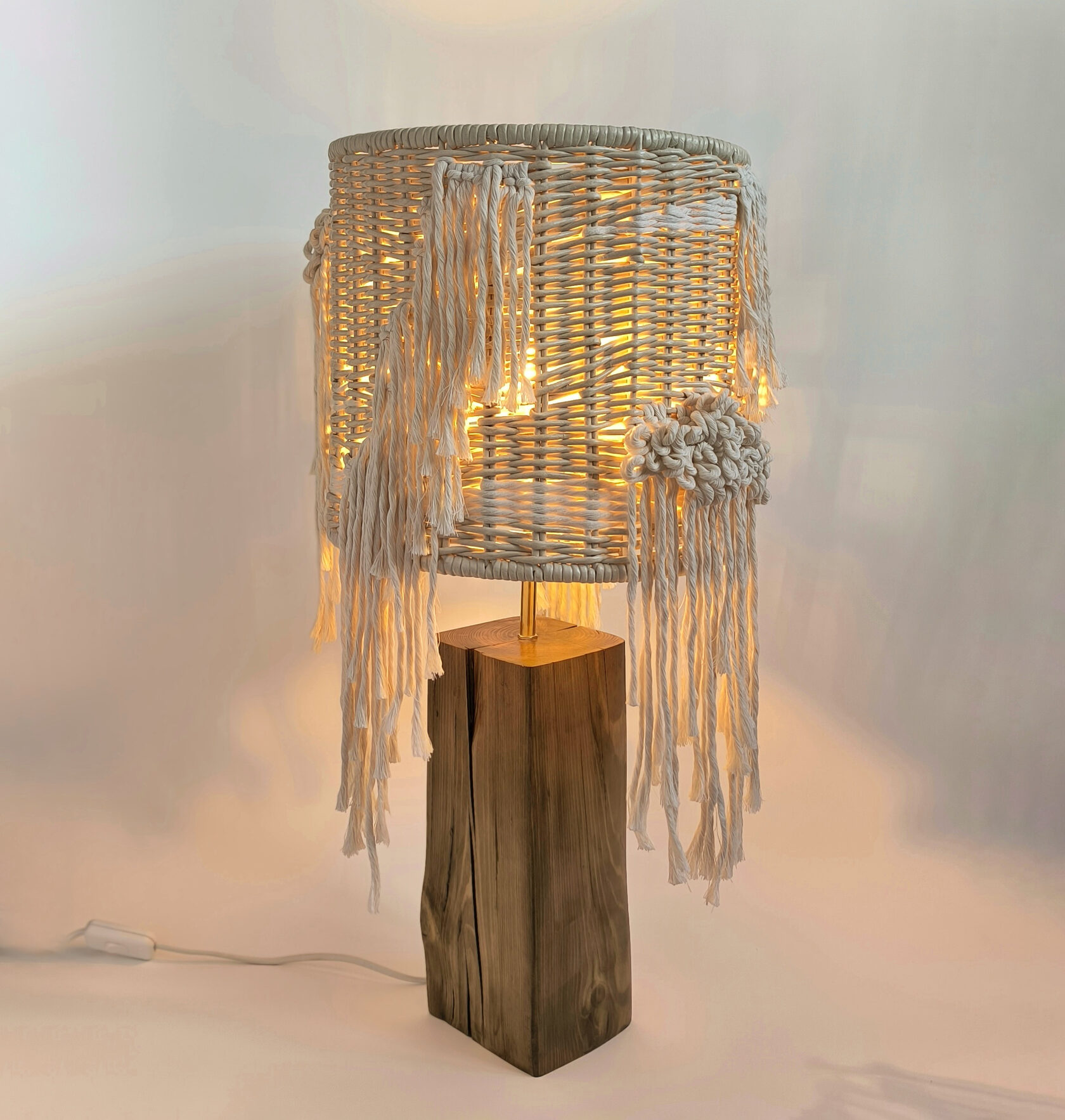 Коллекция уникальных светильников 'Ундина' является одой природным контрастам и мастерству ручной работы. Каждый светильник искусно объединяет грубое, аутентичное основание из дрифтвуда, найденного на берегах Белого моря, с нежными, ажурными плафонами. Плафоны, диаметром 31 см, виртуозно выполнены из бумажной лозы и хлопкового шнура, используя техники плетения и ткачества. Высота светильников составляет 63 см и 66 см, что позволяет им стать выразительным акцентом в интерьере. Оснащенные патроном E27, они функциональны и эстетически безупречны.