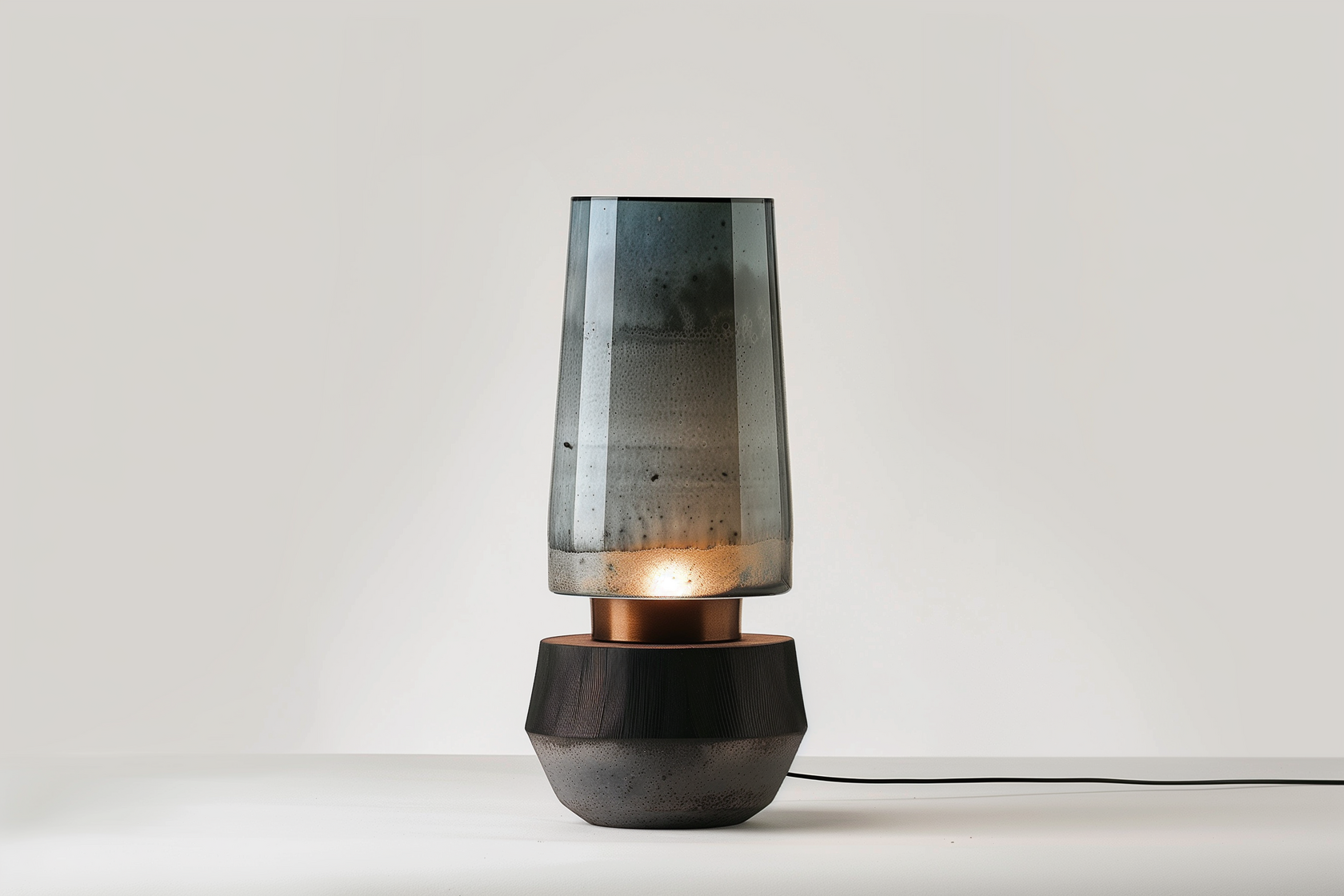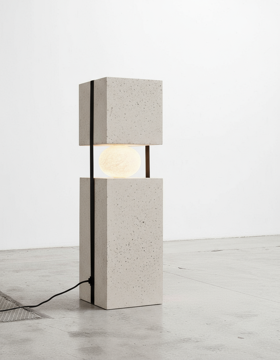 Этот проект представляет собой концепцию настольной лампы, основанной на оригинальном сочетании материалов. Она включает массивный корпус из пенобетона, сердцевину в виде светопропускающего плафона (из стекла или аналогичного материала) и функциональный текстильный ремень, добавляющий как эстетику, так и удобство.