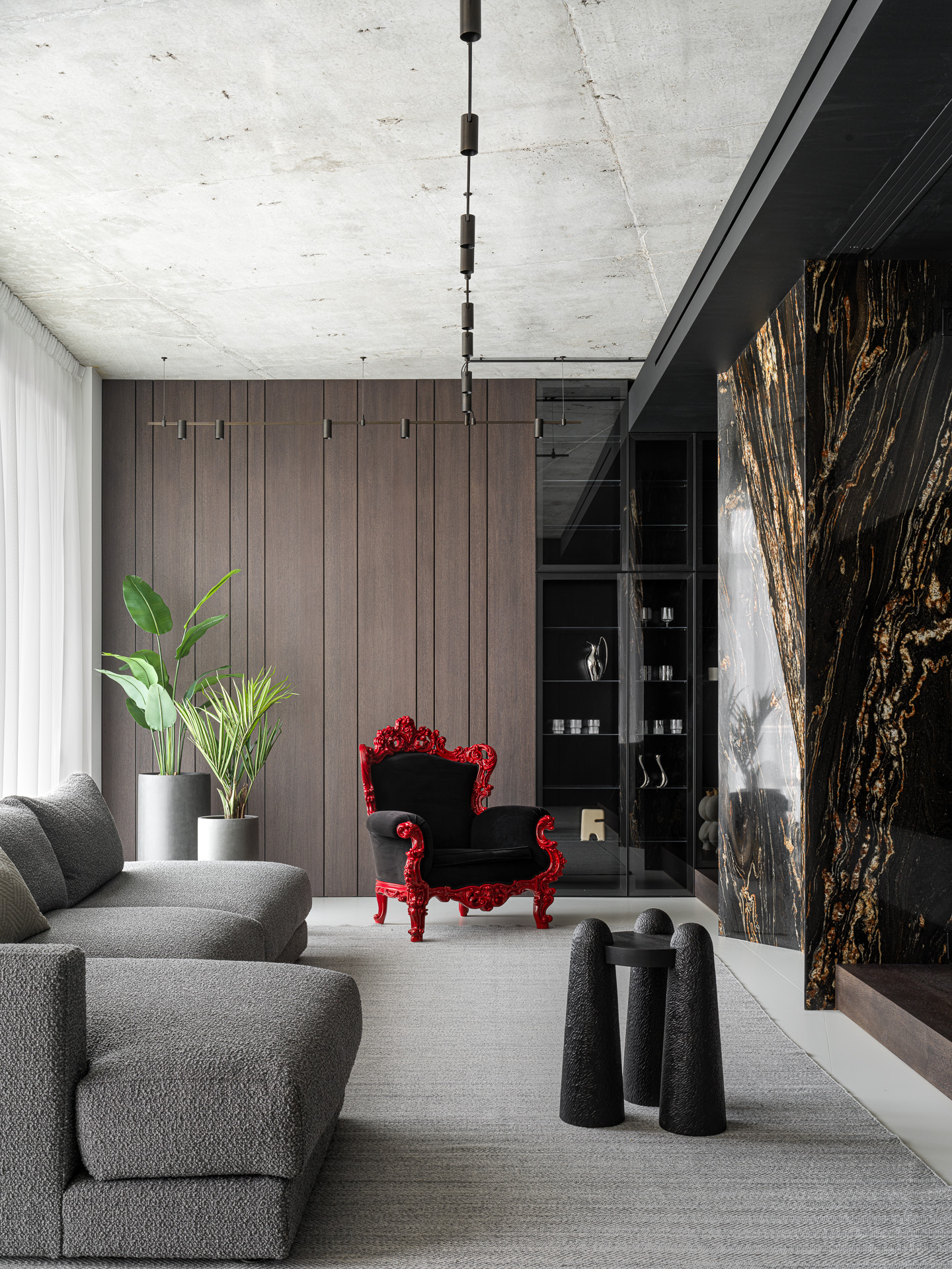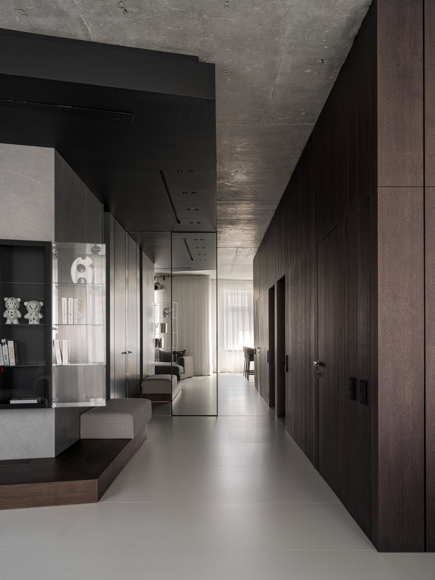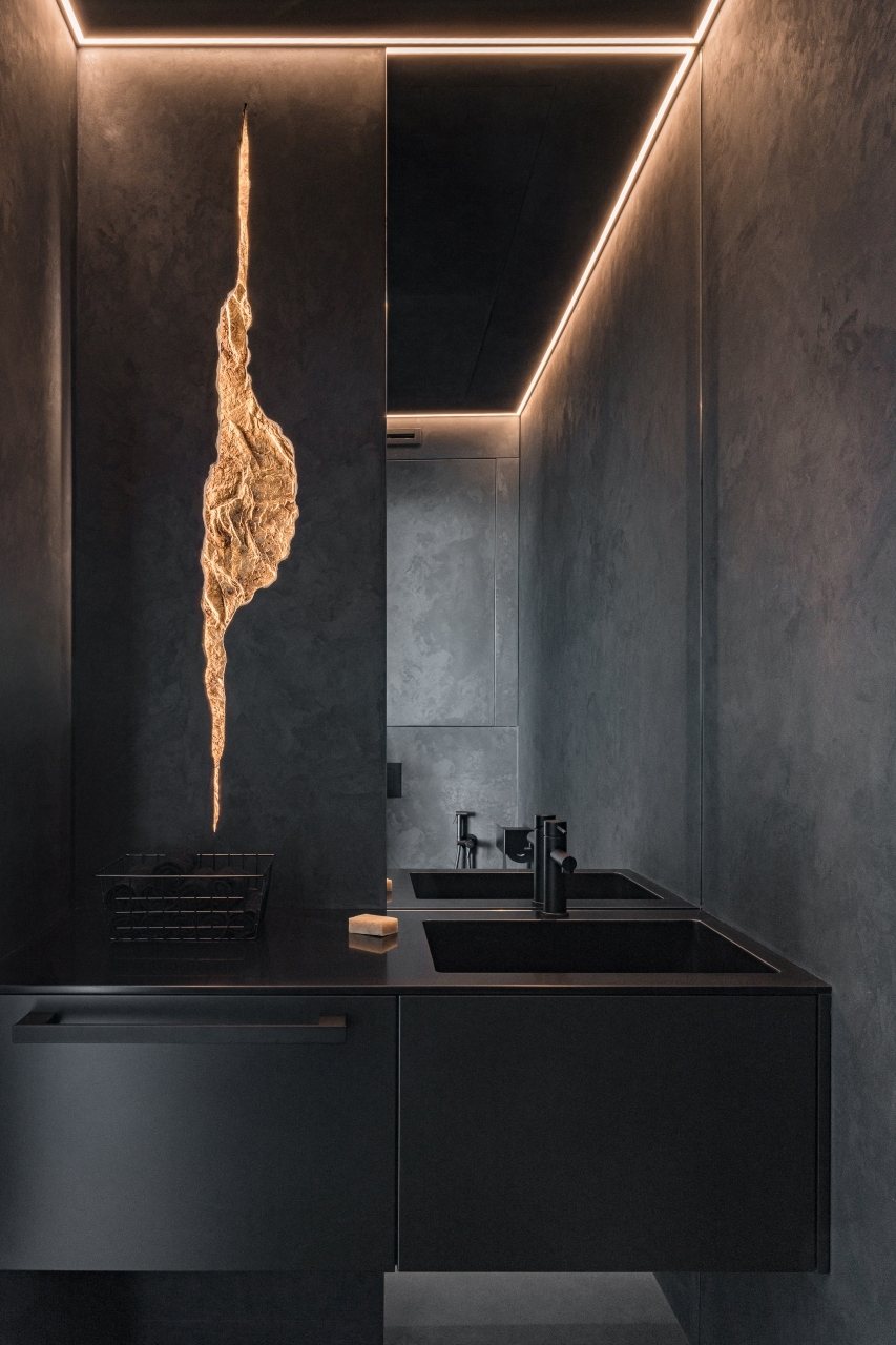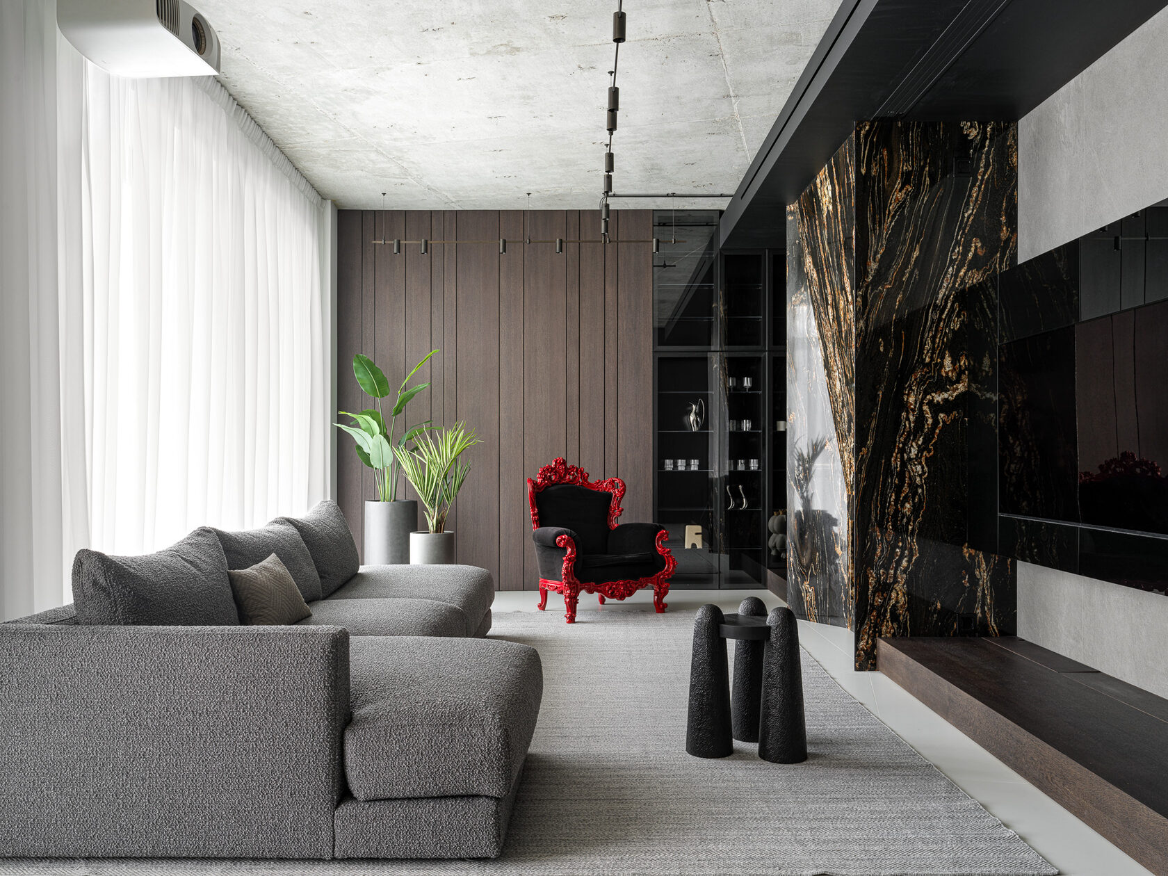 Итог: Результатом стал уникальный жилой интерьер, идеально соответствующий современному стилю жизни заказчиков. Проект демонстрирует виртуозное владение брутальным минимализмом, где каждая деталь — от инновационных материалов до технологичных решений и умения слушать — работает на создание комфортного, эстетичного и высокофункционального пространства, отражающего индивидуальность владельцев.