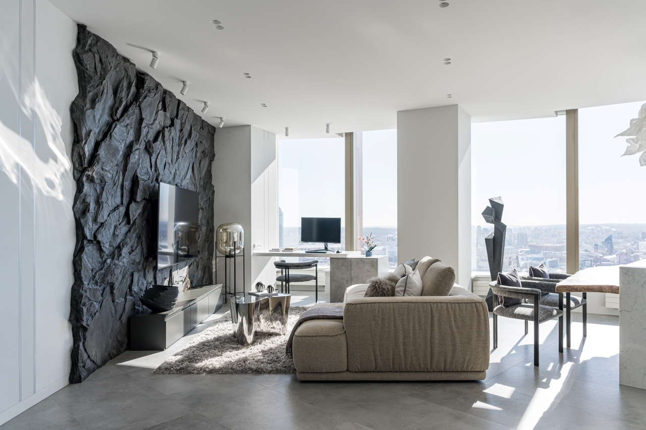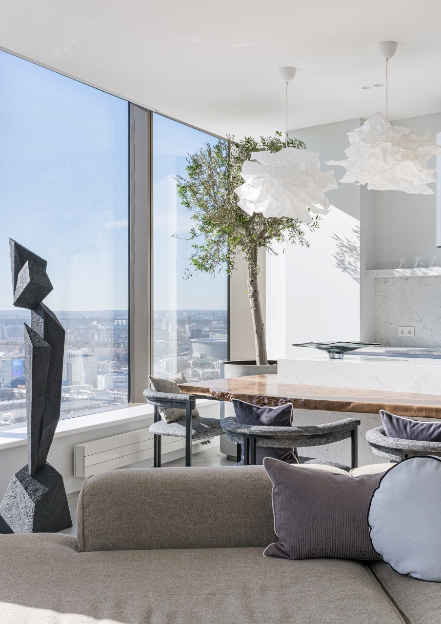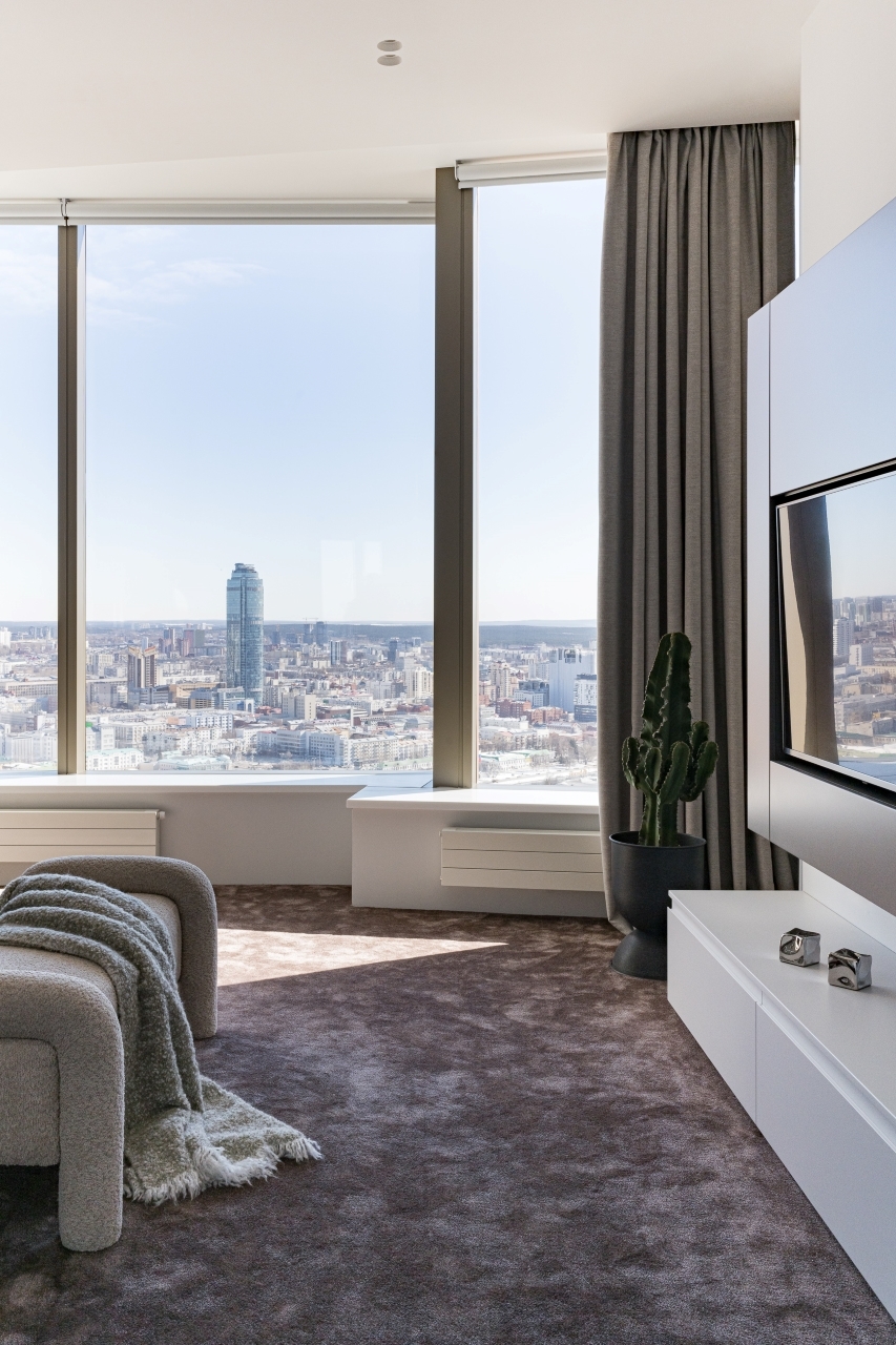 Итог: Результатом стало создание не просто интерьера, а целой истории, где элитные апартаменты обрели характер и душу, вдохновленные швейцарской точностью и природной красотой. Этот проект — воплощение мечты о комфортной и стильной жизни на высоте, предлагающее уникальное сочетание функциональности, эстетики и впечатляющих панорамных видов, где каждый элемент работает на создание безупречного и гармоничного пространства.