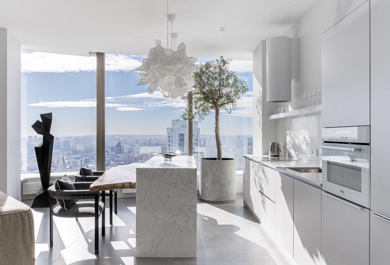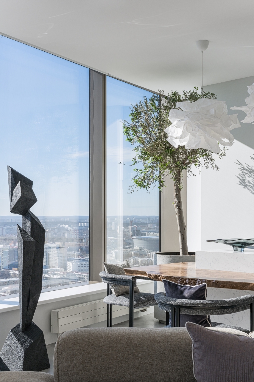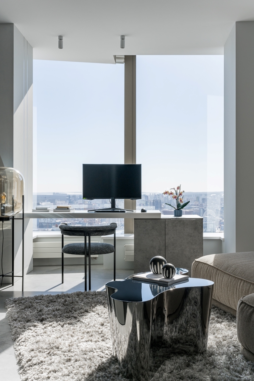 Итог: Результатом стало создание не просто интерьера, а целой истории, где элитные апартаменты обрели характер и душу, вдохновленные швейцарской точностью и природной красотой. Этот проект — воплощение мечты о комфортной и стильной жизни на высоте, предлагающее уникальное сочетание функциональности, эстетики и впечатляющих панорамных видов, где каждый элемент работает на создание безупречного и гармоничного пространства.