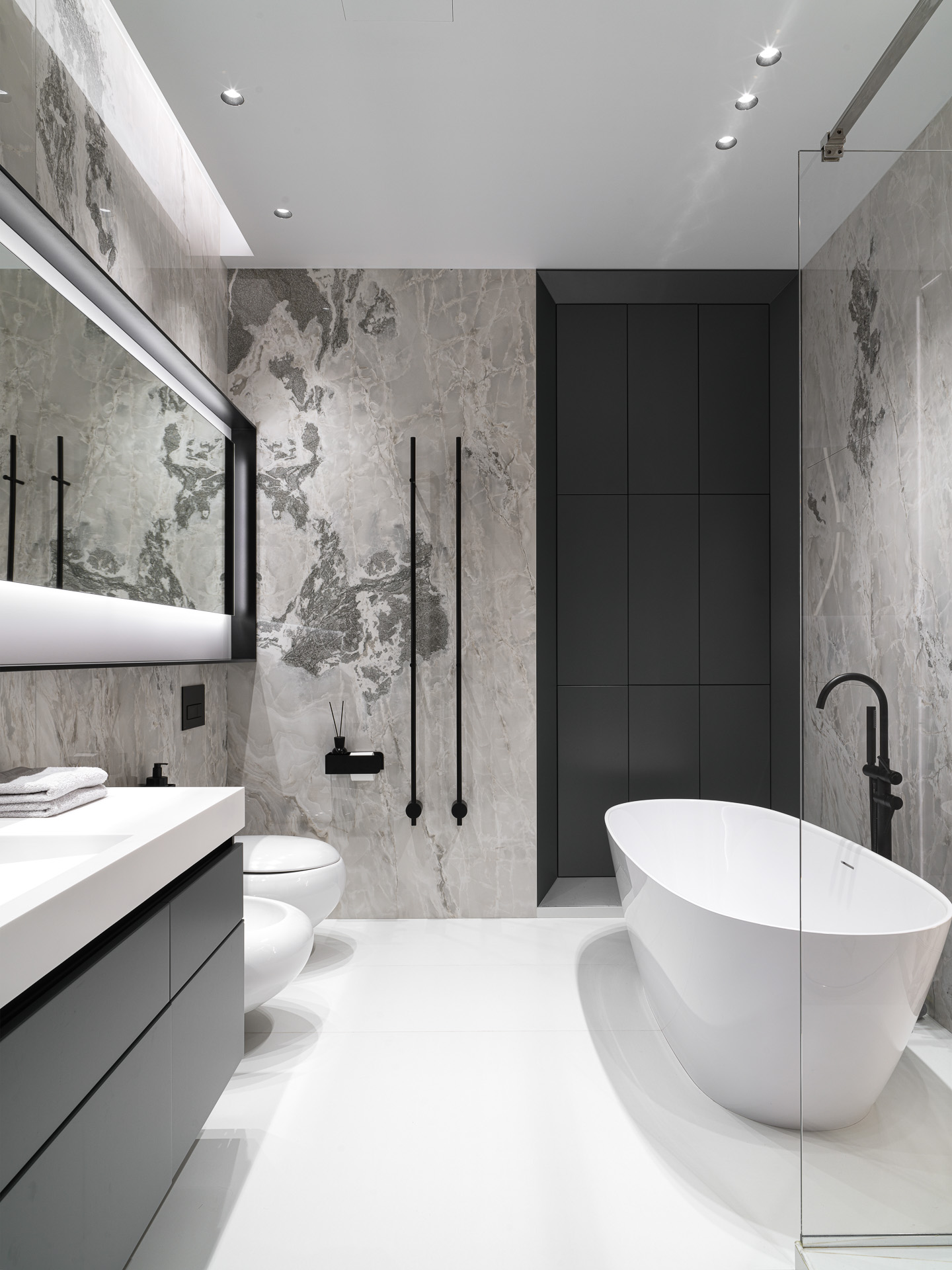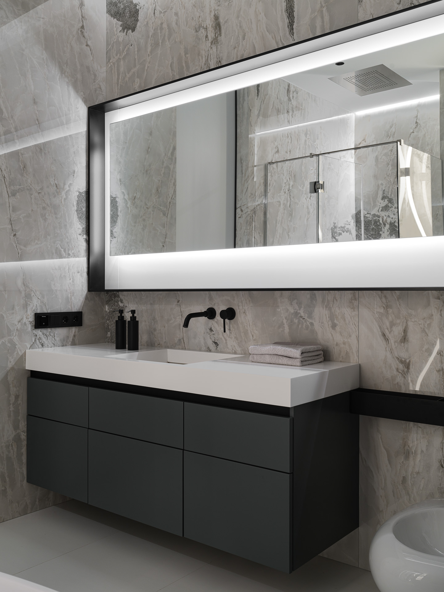 С точки зрения инженерии, это самая умная квартира, которую мы когда-либо проектировали. Интегрированное канальное кондиционирование и вентиляция, система увлажнения воздуха, умный дом с голосовым управлением – все это делает жизнь в квартире максимально комфортной и современной. Климат-контроль, управление шторами и мультирум – все подчиняется голосовым командам, создавая ощущение будущего уже сегодня.