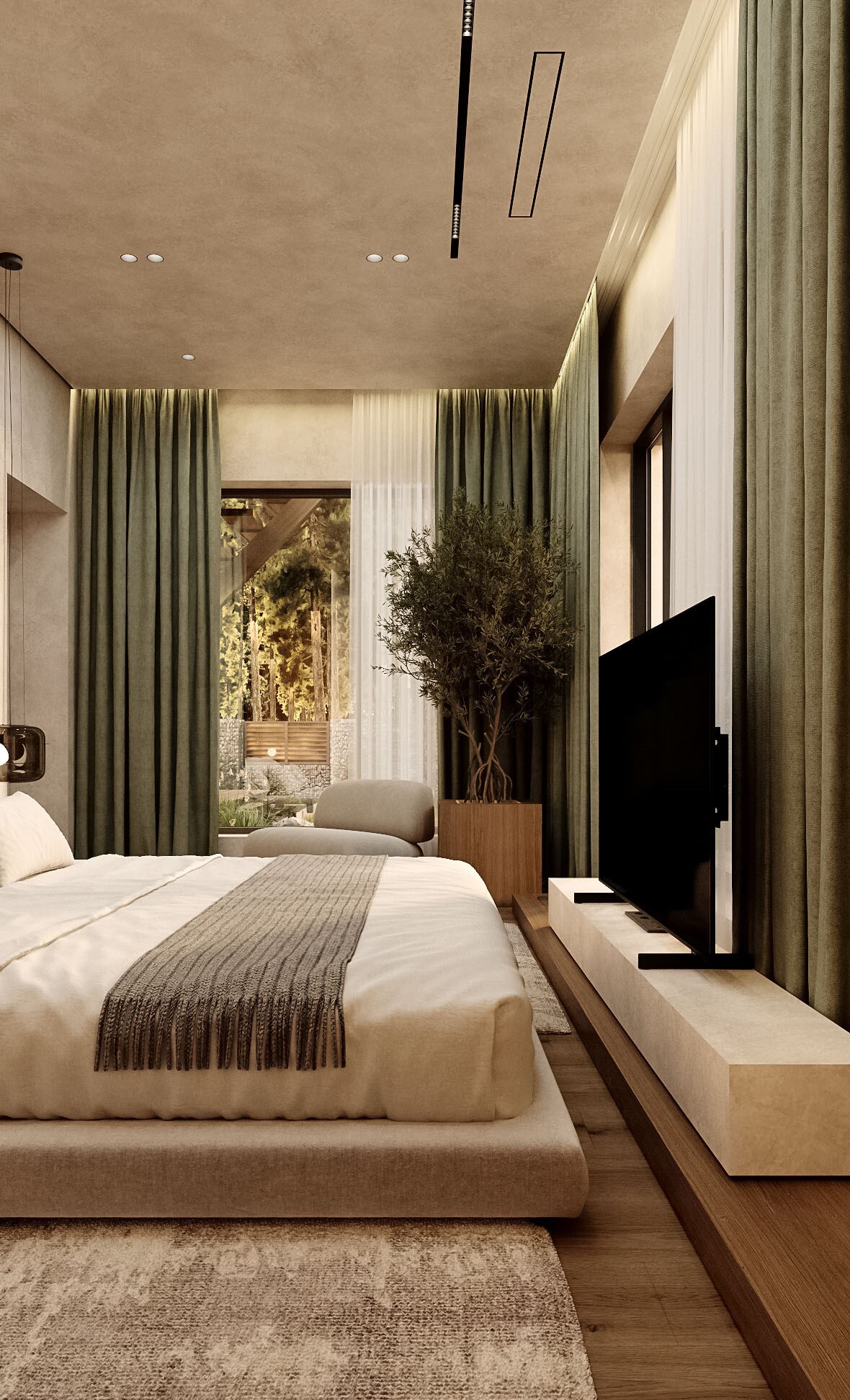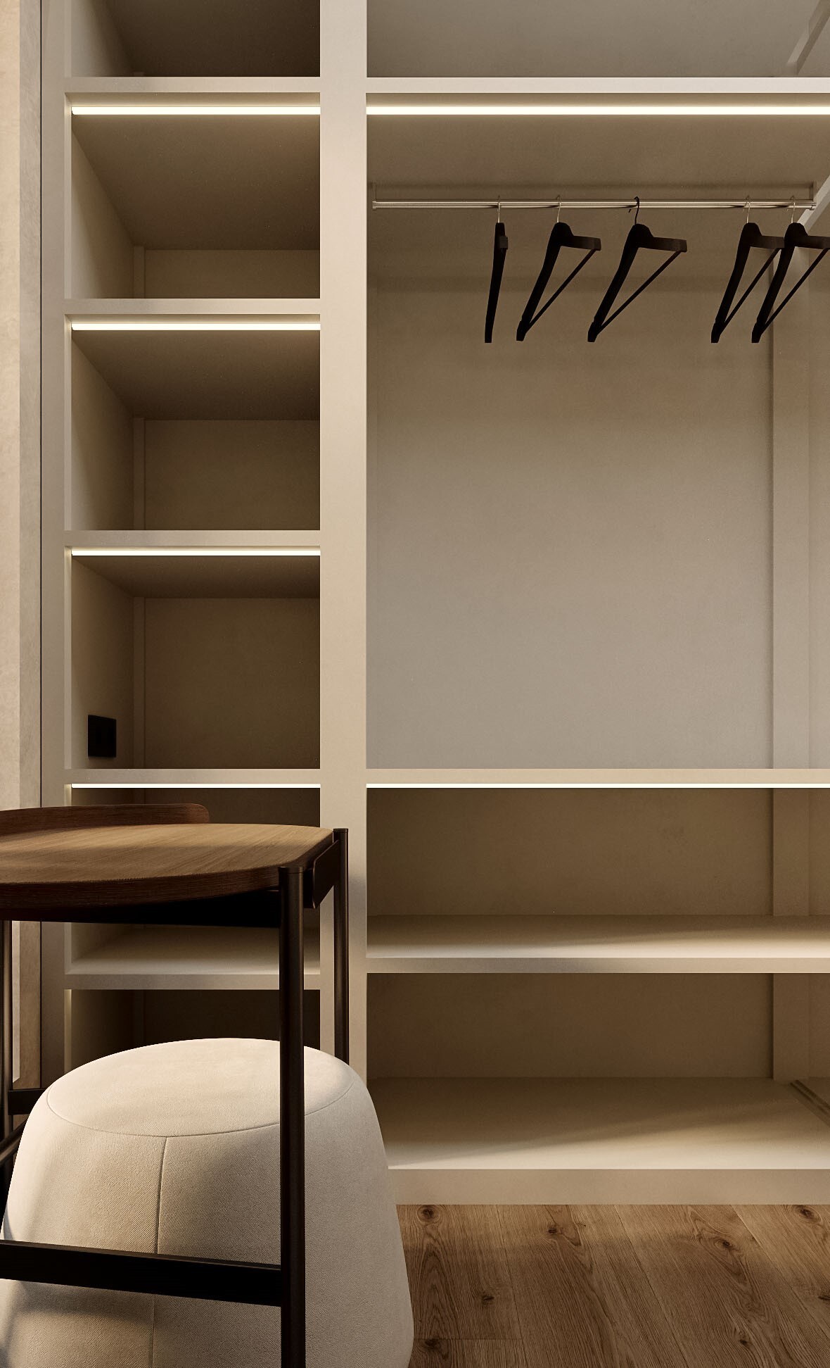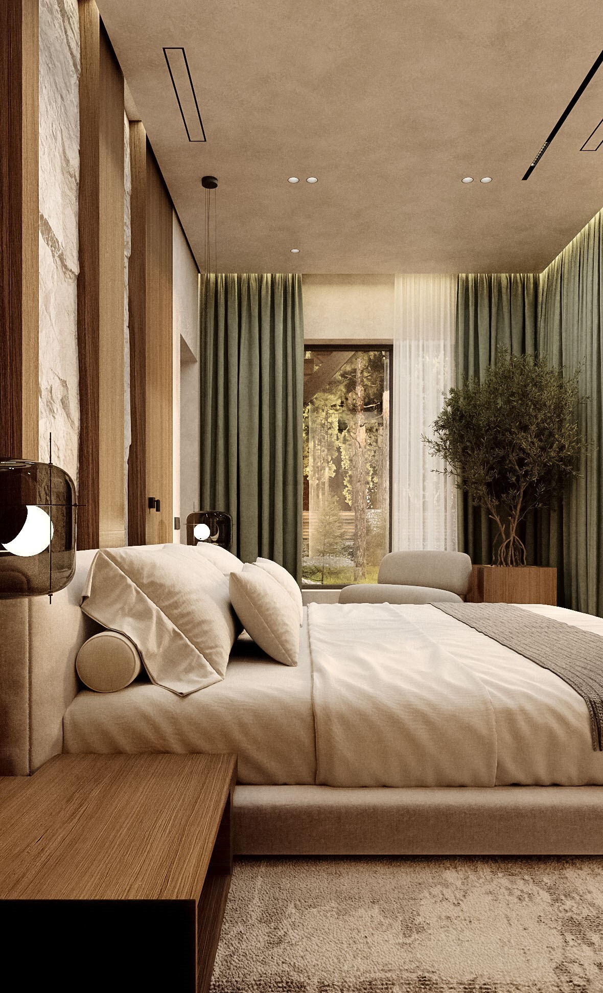 Итог: Интерьер, который не устареет со временем, является идеальным воплощением философии спокойной и размеренной жизни. Это функциональное и эстетически безупречное пространство, где продуманность деталей и гармония материалов создают идеальную среду для глубокого отдыха и внутреннего равновесия.