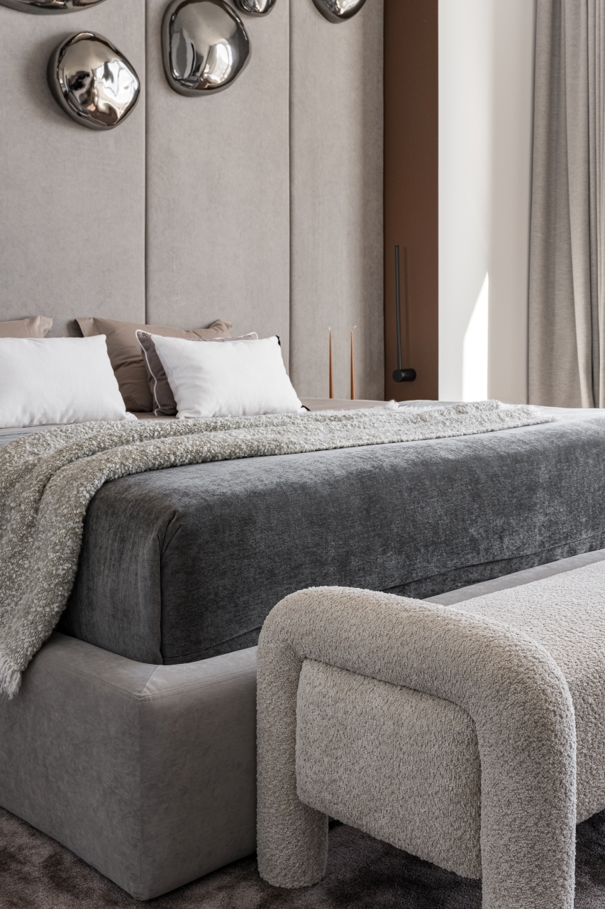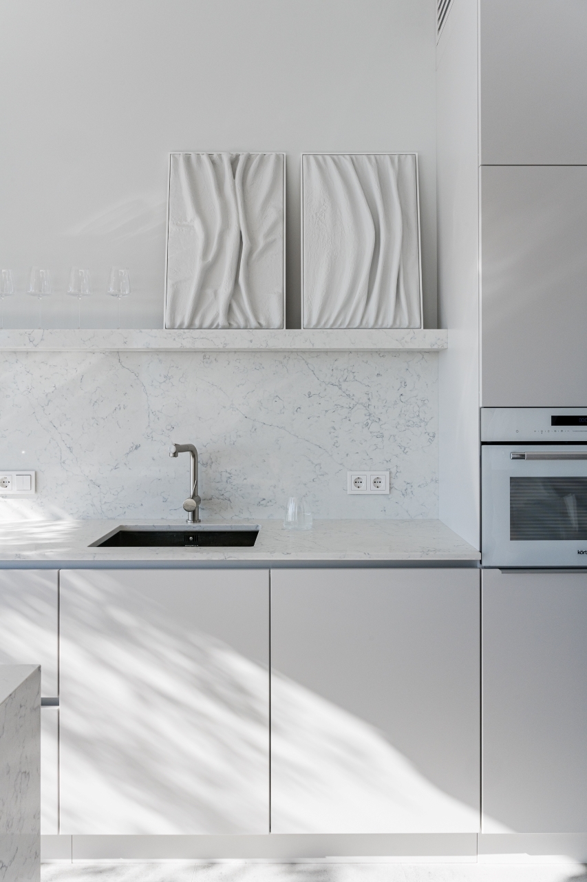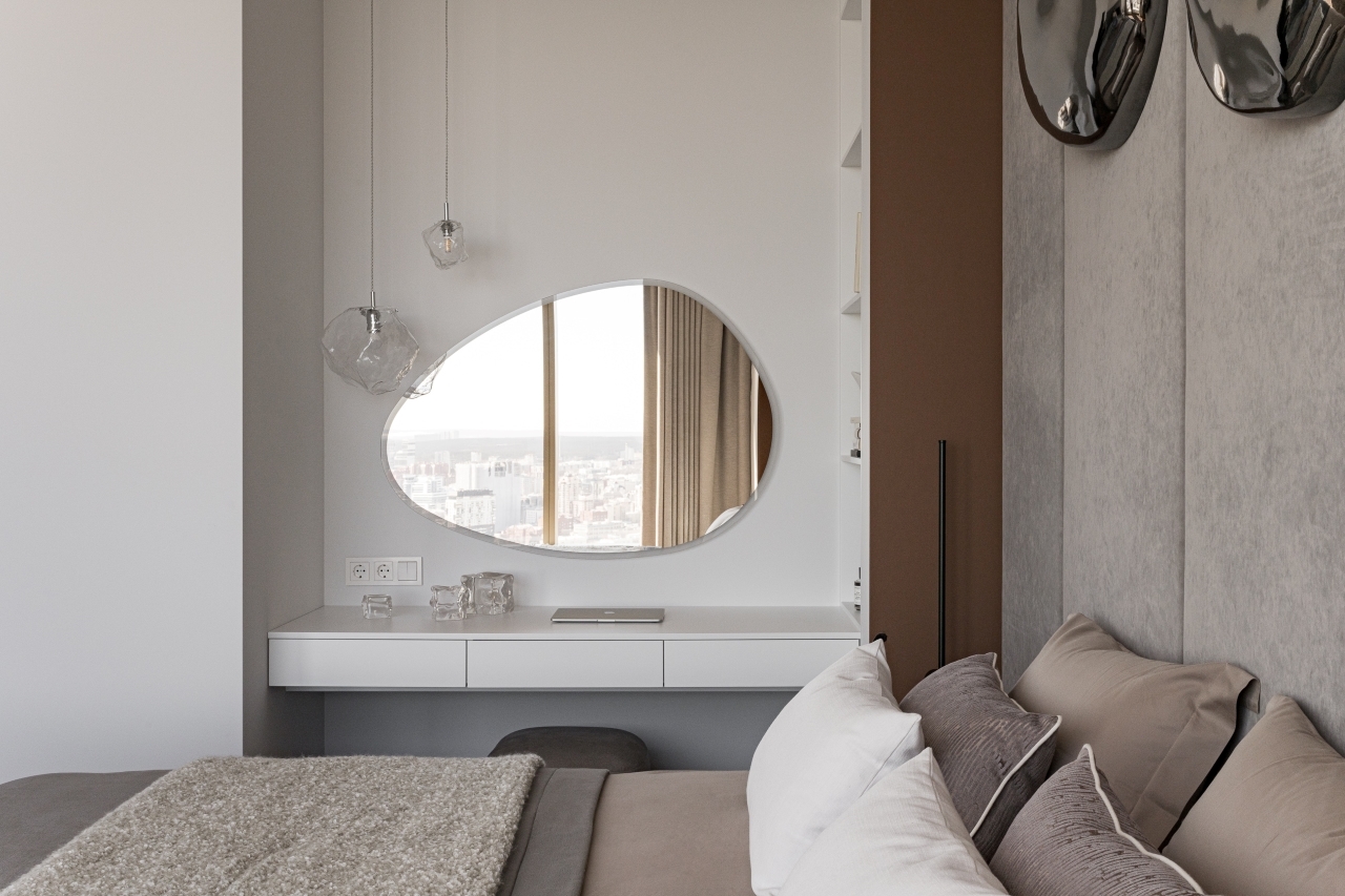 Искусство занимает особое место в этом интерьере. Картины и скульптуры, выбранные с любовью, создают атмосферу изысканности и утонченности. Лейтмотивом проекта стали изящные женские формы, которые так точно характеризуют нашу заказчицу. Мы предложили снять бюст с нашей заказчицы как с модели, и скульптор создал шедевр, который уже готов занять свое почетное место в квартире.