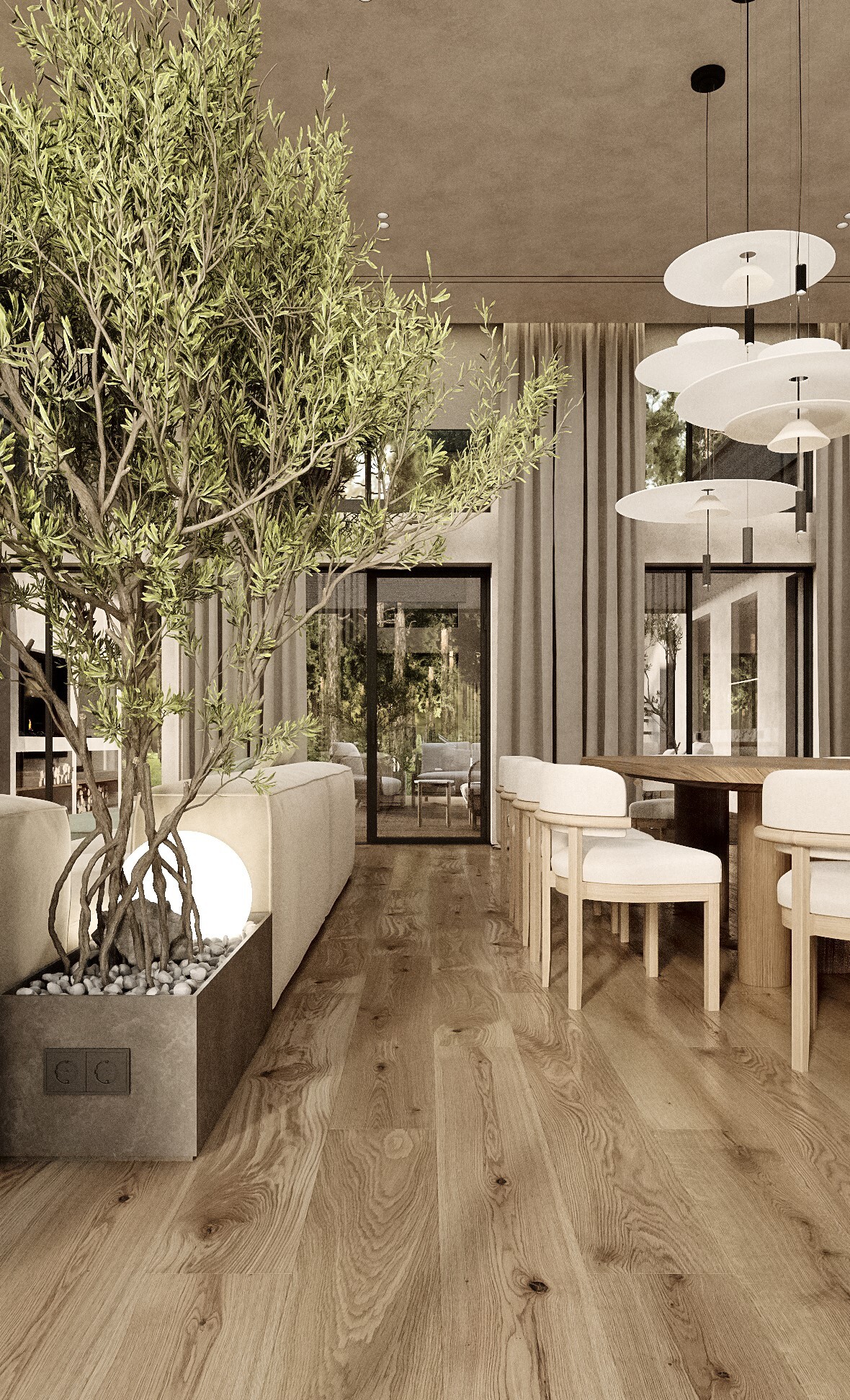 Концепция: В основе проекта лежит философия минимализма и функциональности. Открытые пространства максимально используют естественное освещение, а применение натуральных материалов – дерева, камня и текстиля – создает тепло и уют. Это место, где современные тенденции гармонично сочетаются с традициями, формируя идеальную среду для жизни и вдохновения.