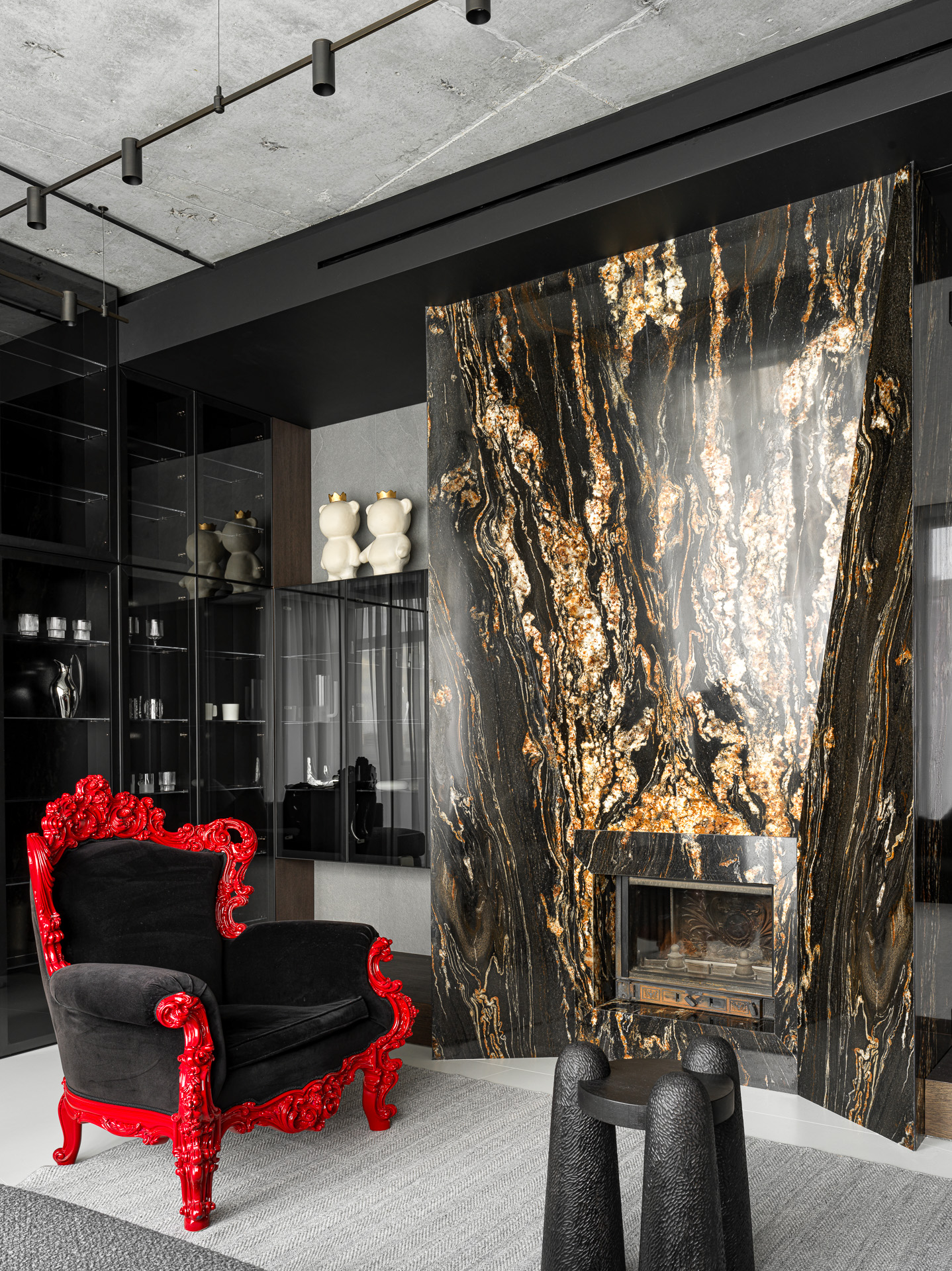 Каждый наш проект уникален, и эта квартира не стала исключением. Здесь каждая деталь продумана до мелочей, каждая комната наполнена смыслом и эмоциями. Заказчица мечтала о книжной библиотеке с панорамным камином, и мы создали это уютное пространство, где можно провести часы за чтением любимых книг. Каменный остров из кварцита с подсветкой и стеллажом для коллекционного алкоголя стал настоящим украшением гостиной, добавив ей роскоши и элегантности.