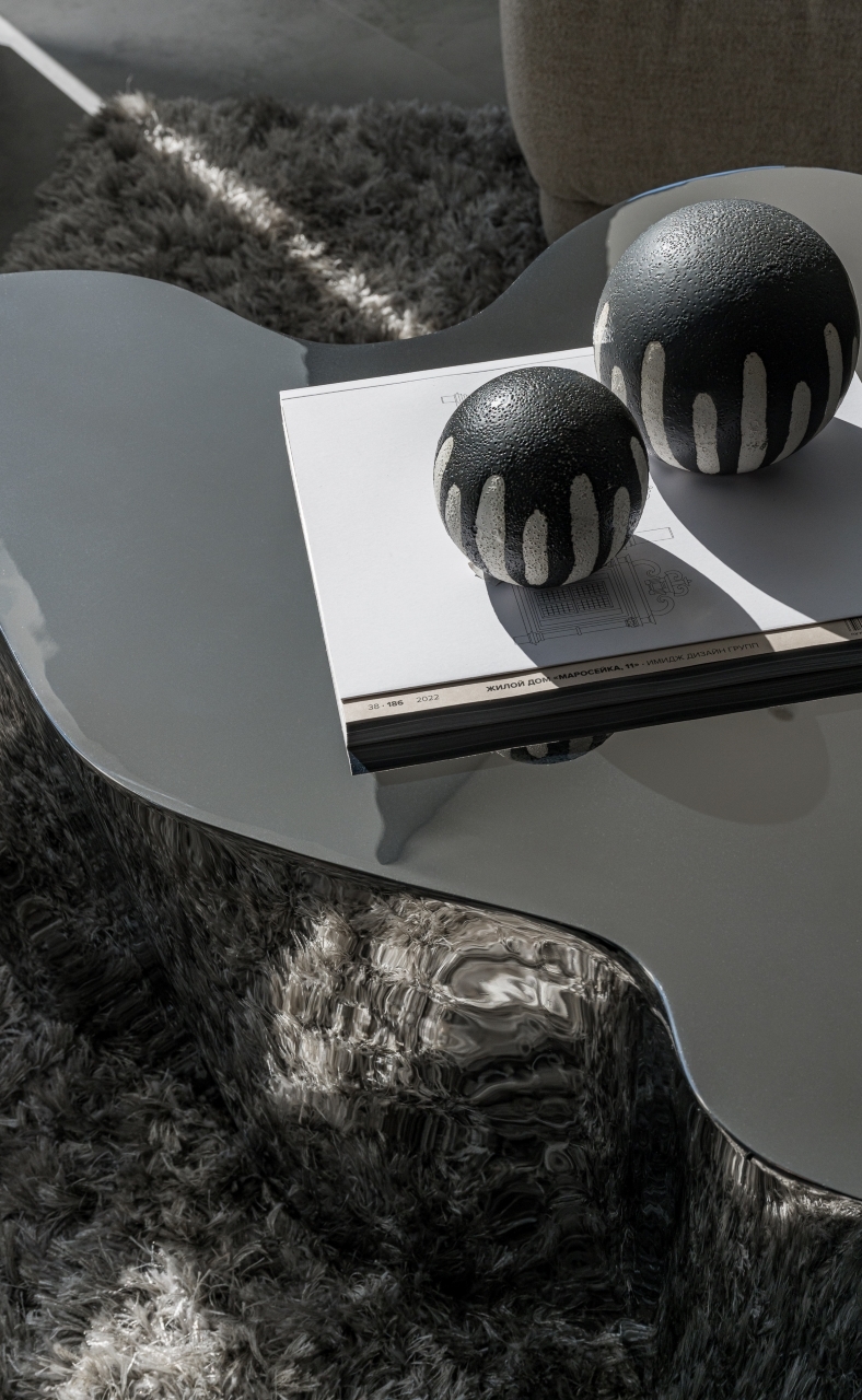 Проект представляет собой уникальную мебельную капсулу, вдохновленную глубоким и многогранным образом пасмурного, серо-зимнего Байкала. Коллекция отличается живыми, асимметричными формами, неидеальным рельефом и текстурами, напоминающими трещины льда и окисленный металл. Каждый элемент создан для пробуждения эмоций и тактильных ощущений, перенося дух дикой, первозданной природы в интерьер.