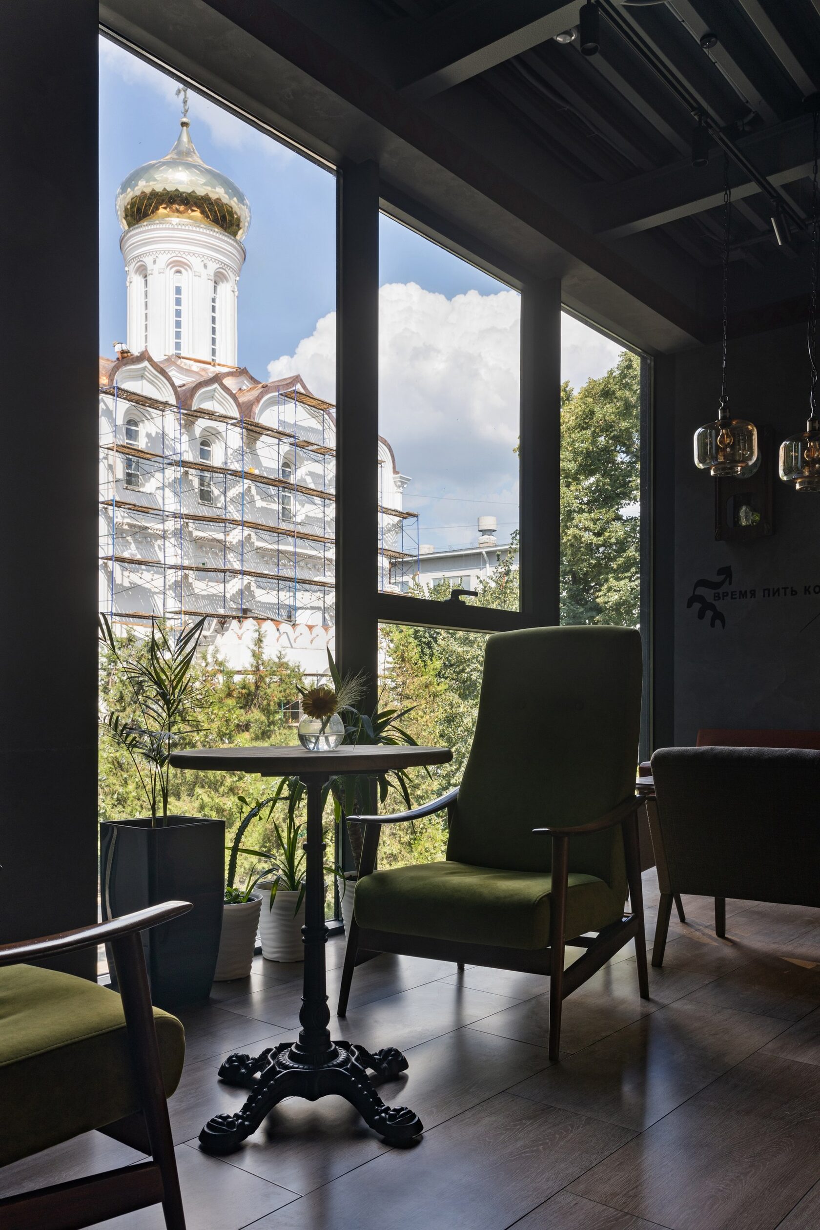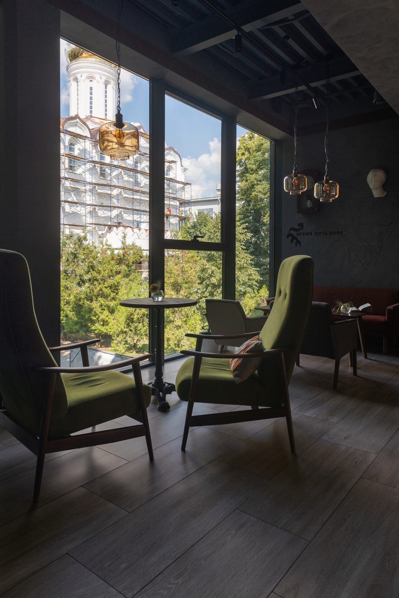 Этот уникальный проект двухэтажной кофейни, расположенной вблизи КубГУ, создан как уютное убежище для студентов. Из окон открываются живописные виды на храм и парк, а интерьер, вдохновленный идиомой «Учение — свет», предлагает теплую и располагающую атмосферу без нарочитой новизны. Особое внимание уделено деталям: винтажная мебель, уникальные зеркала и авторская роспись объединяют пространство, создавая ощущение русского дома.