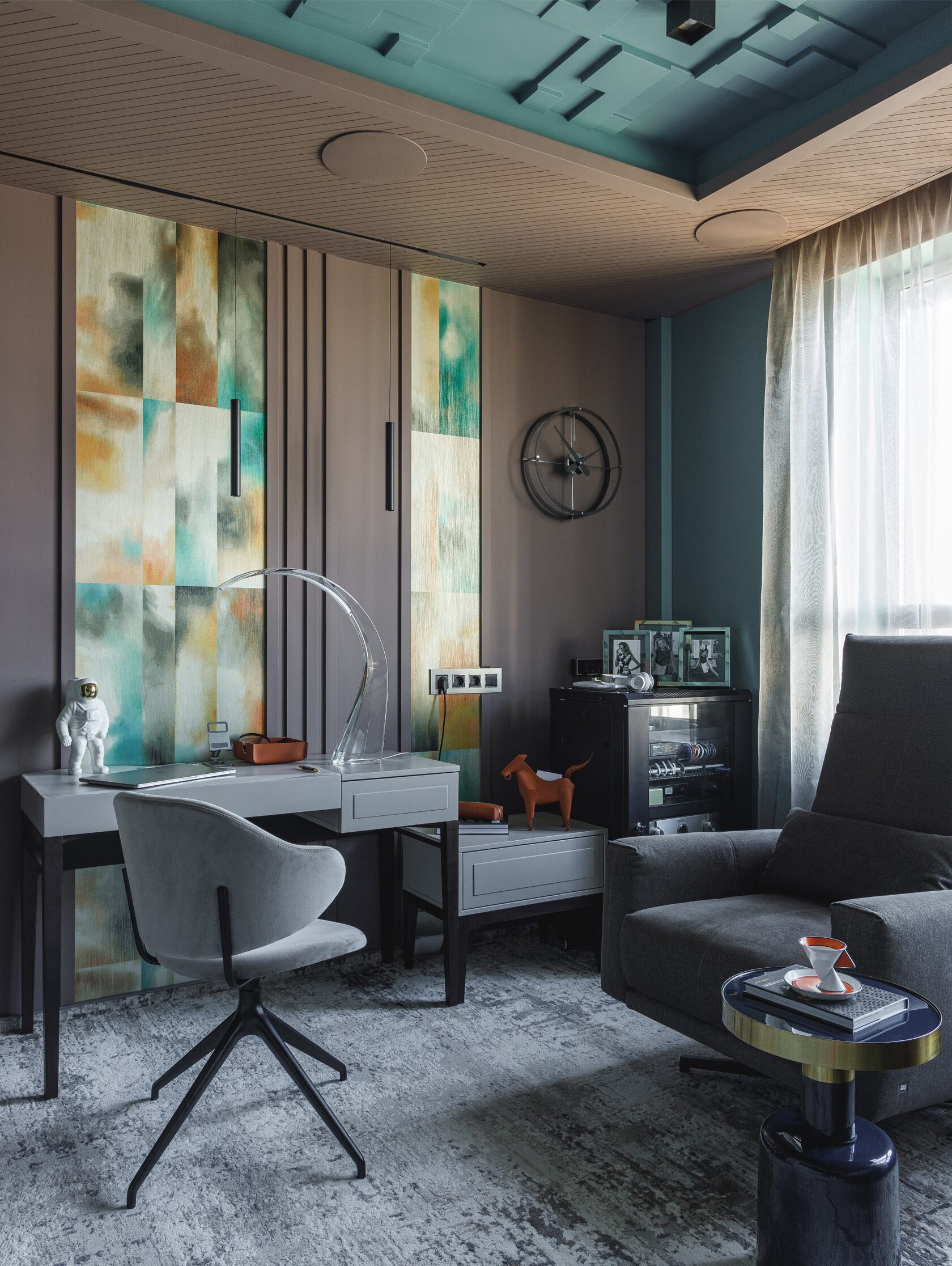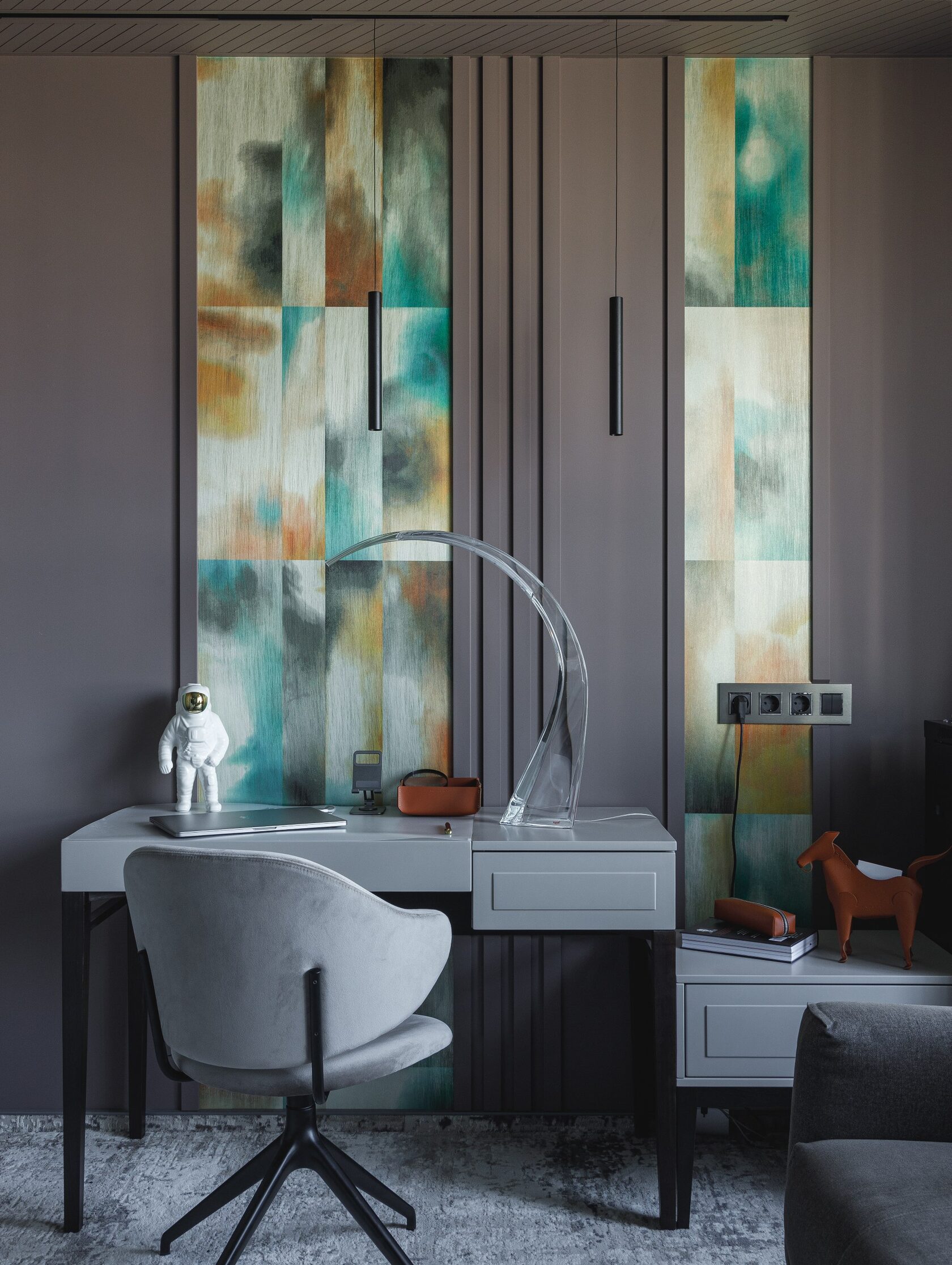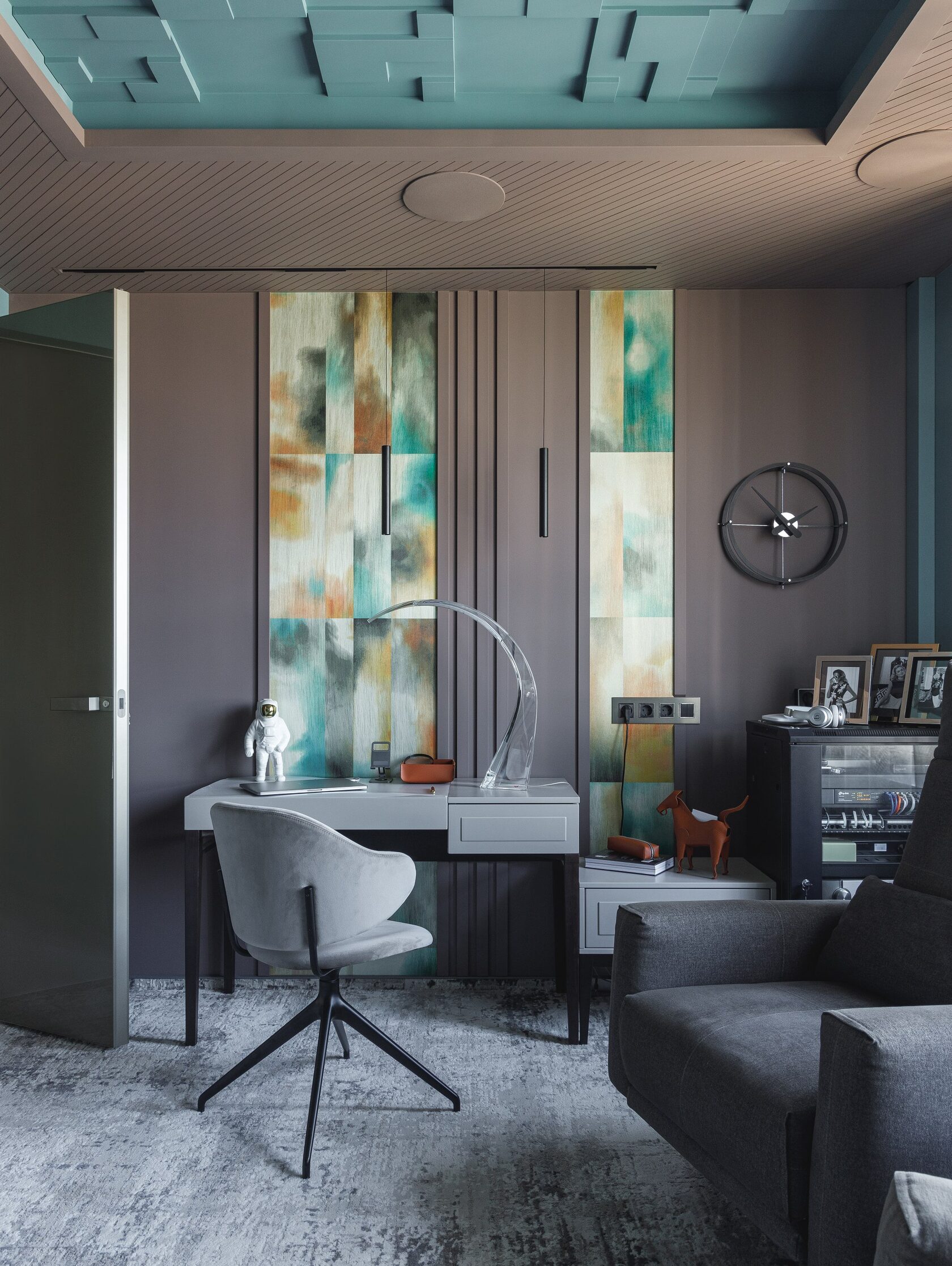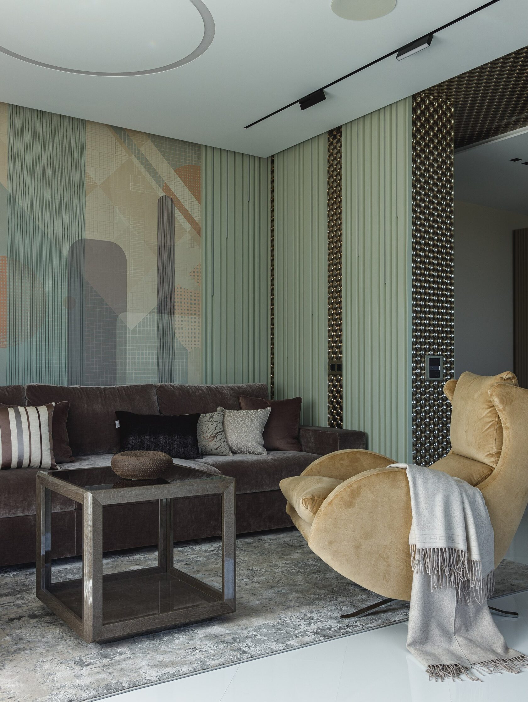 Атмосфера: Интерьер создаёт ощущение интеллектуального уединения. Это пространство — будто персональная станция в открытом космосе, где каждый элемент говорит о внимании к будущему. Здесь хочется думать, чувствовать, отдыхать и вдохновляться. Эмоциональный эффект усиливают многослойные световые сценарии и кинематографичное зонирование. Получилась квартира с характером, которая приглашает в мир новых ощущений.