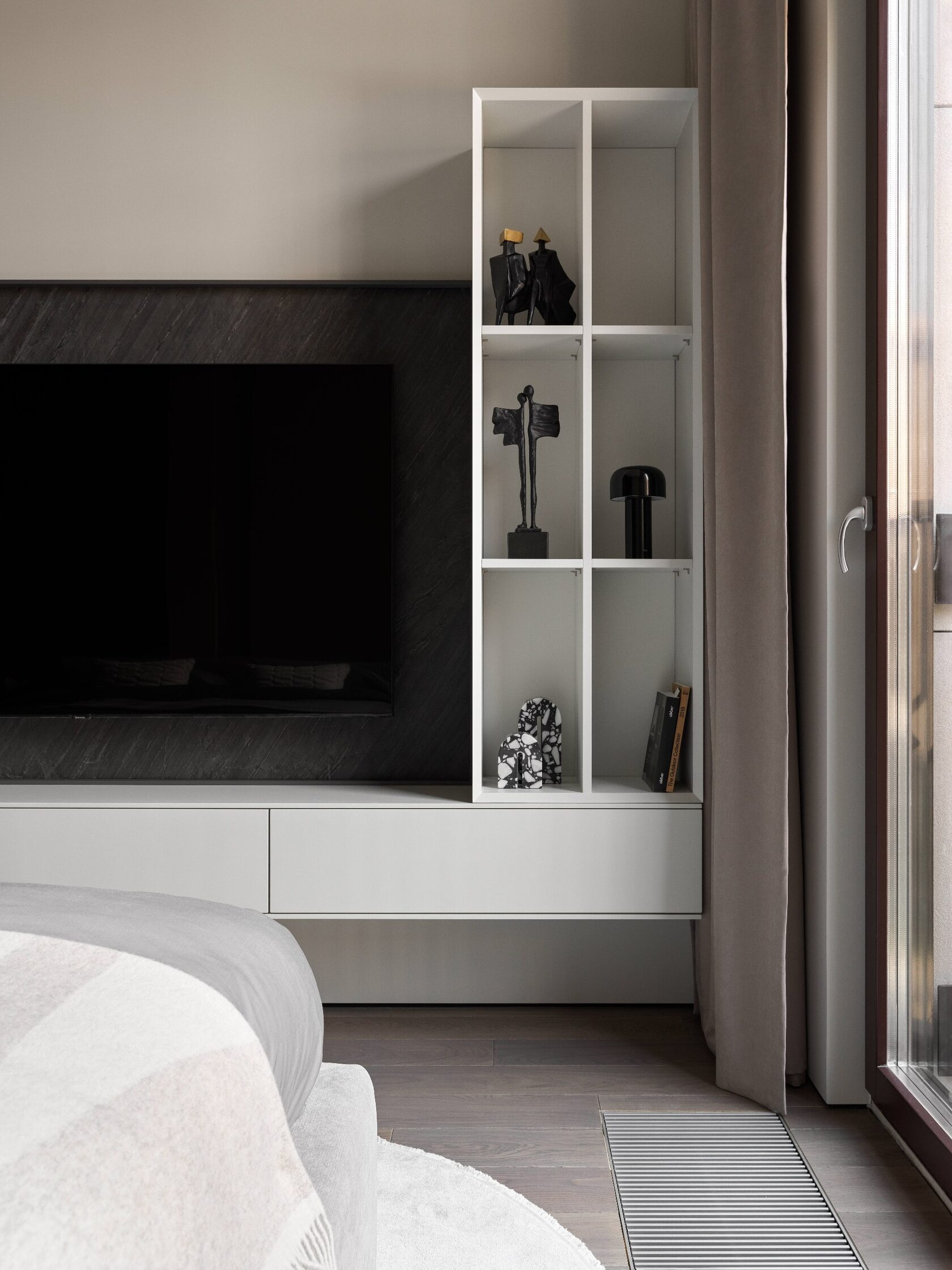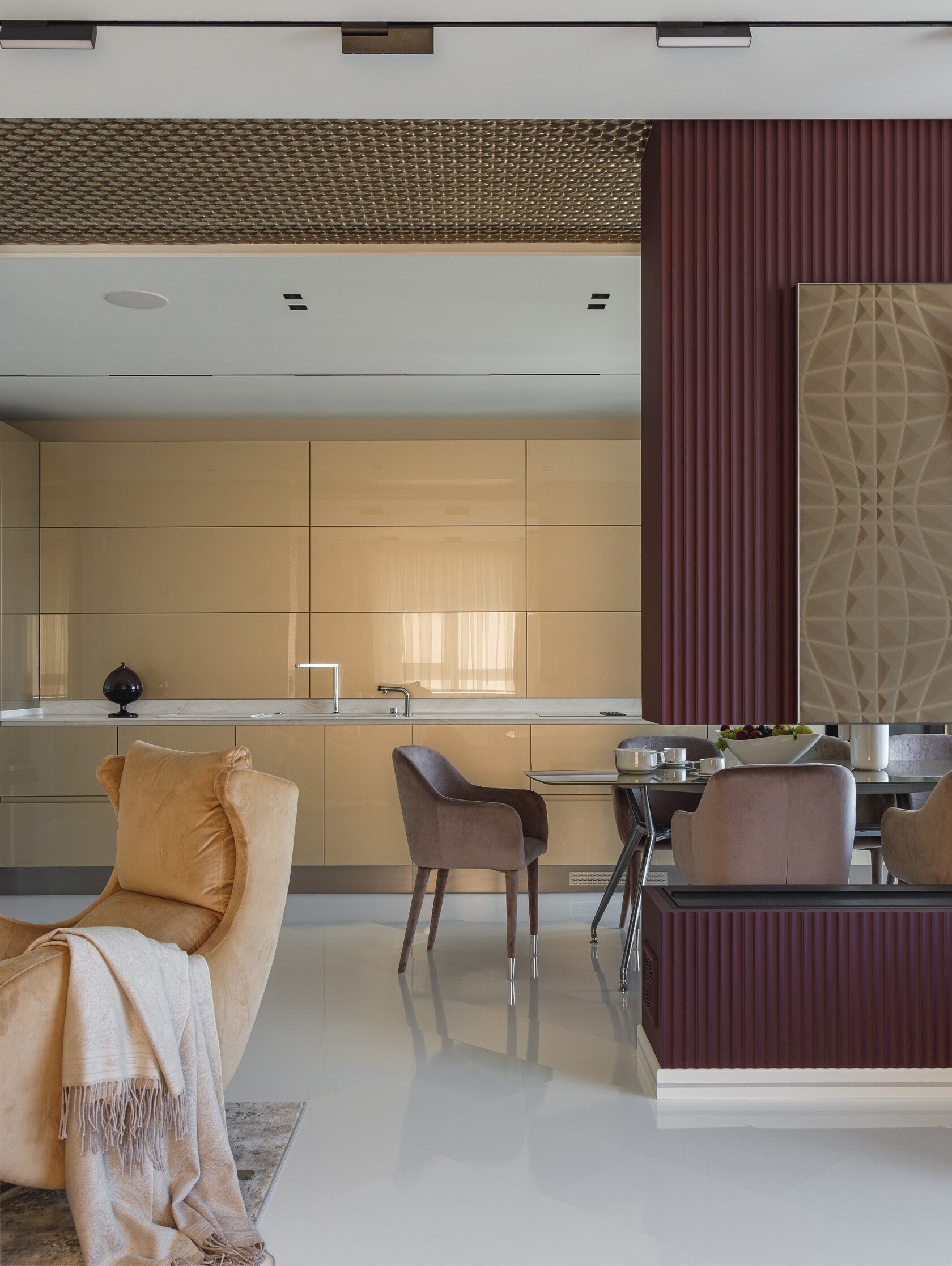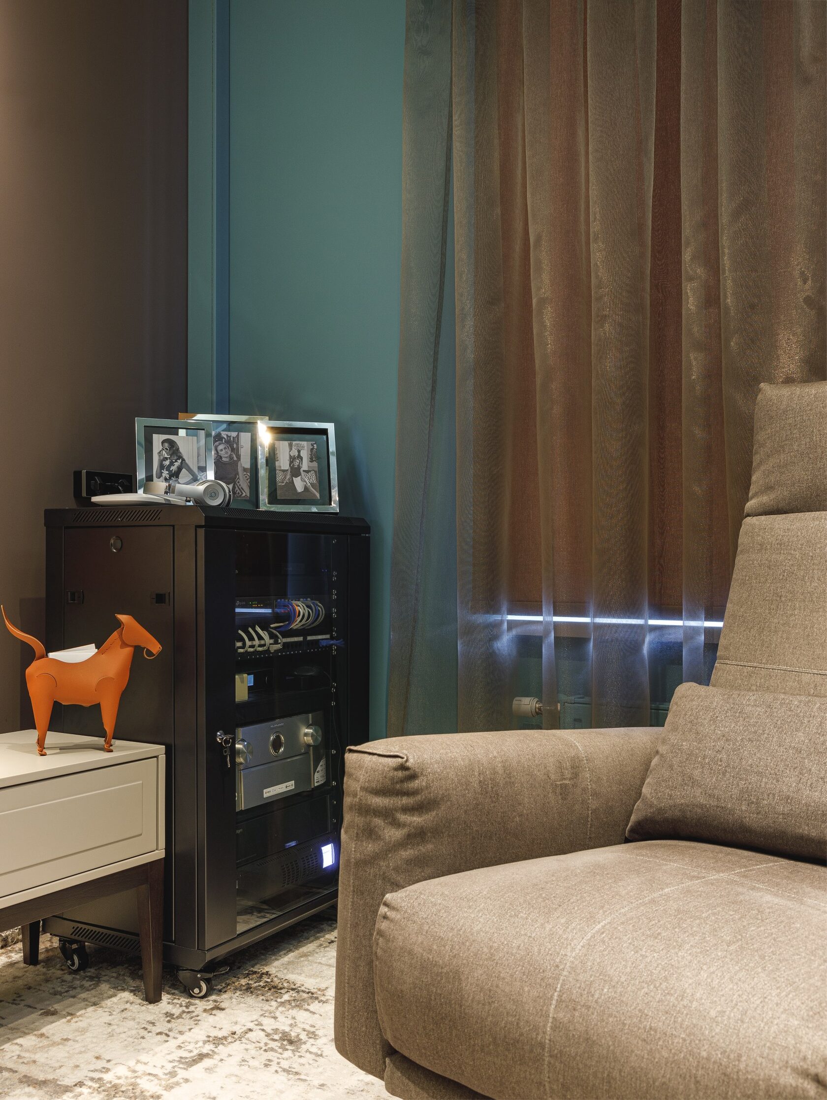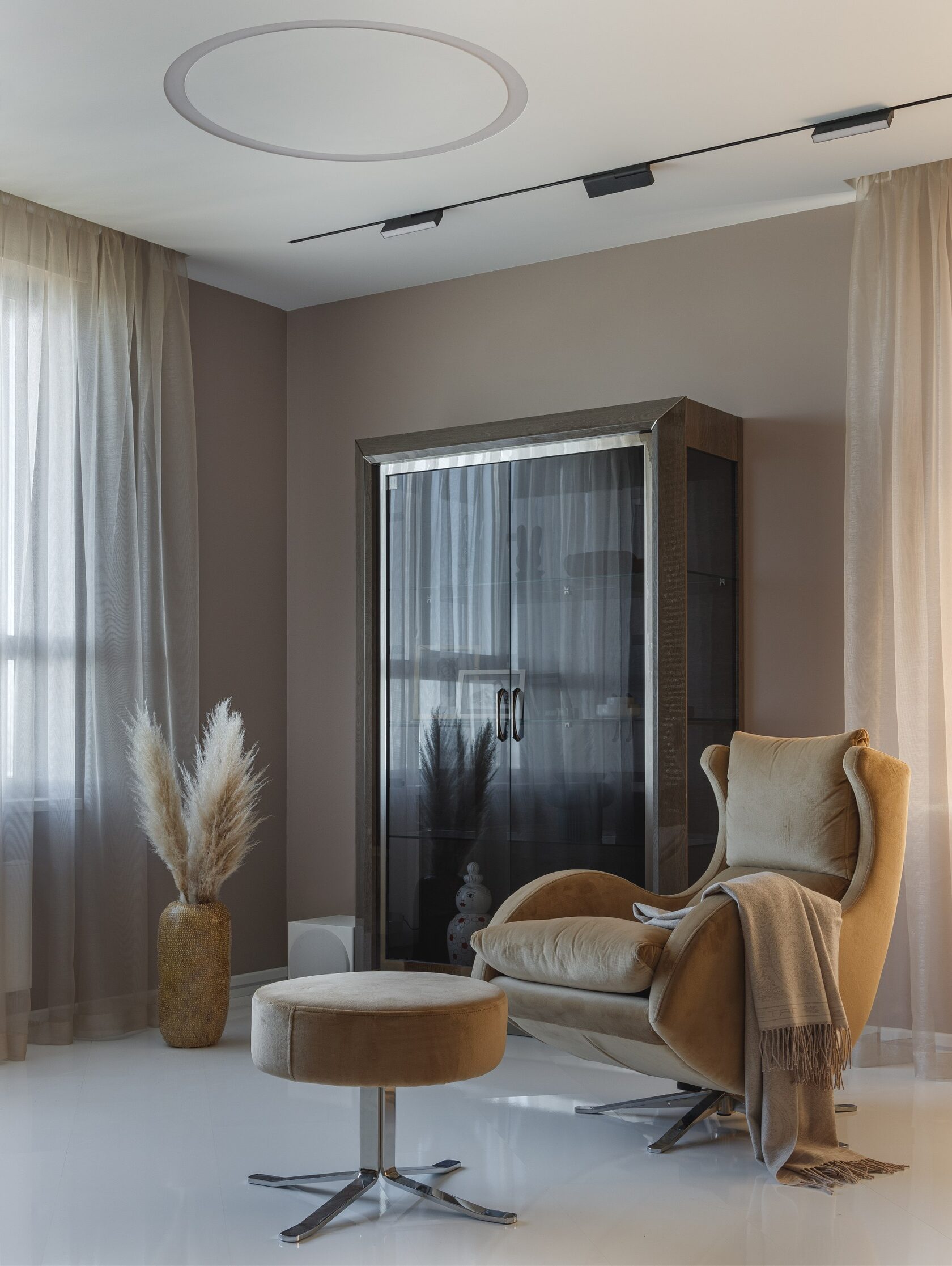 Атмосфера: Интерьер создаёт ощущение интеллектуального уединения. Это пространство — будто персональная станция в открытом космосе, где каждый элемент говорит о внимании к будущему. Здесь хочется думать, чувствовать, отдыхать и вдохновляться. Эмоциональный эффект усиливают многослойные световые сценарии и кинематографичное зонирование. Получилась квартира с характером, которая приглашает в мир новых ощущений.