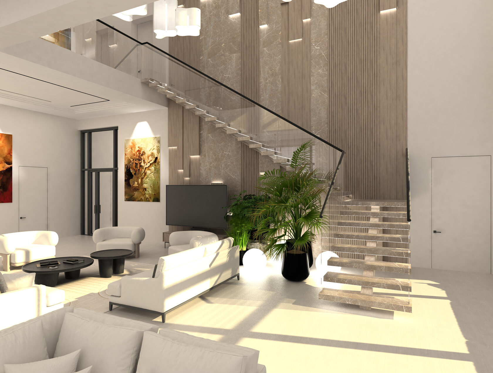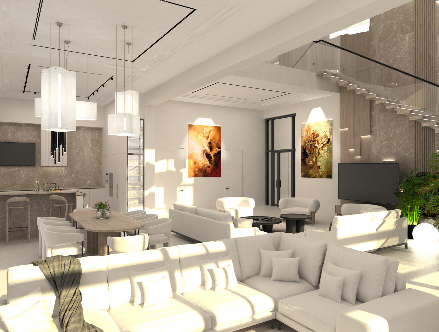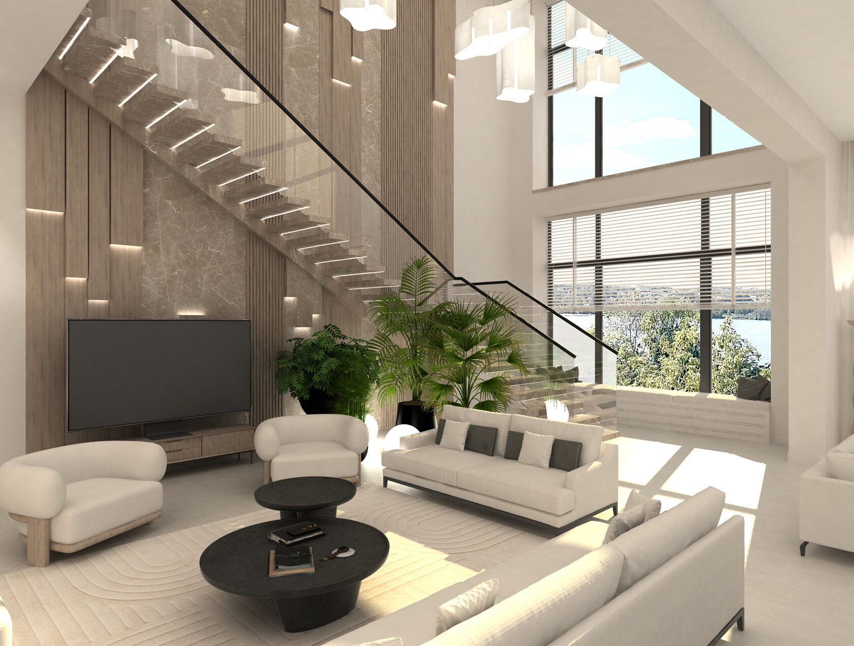 Концепция: Создать интеллектуальное, адаптивное пространство, где технологии интегрированы в каждый аспект жизни семьи, повышая комфорт, функциональность и эмоциональное восприятие интерьера. Каждая зона продумана под реальные сценарии использования, сочетая умные решения с эстетикой и эргономикой.