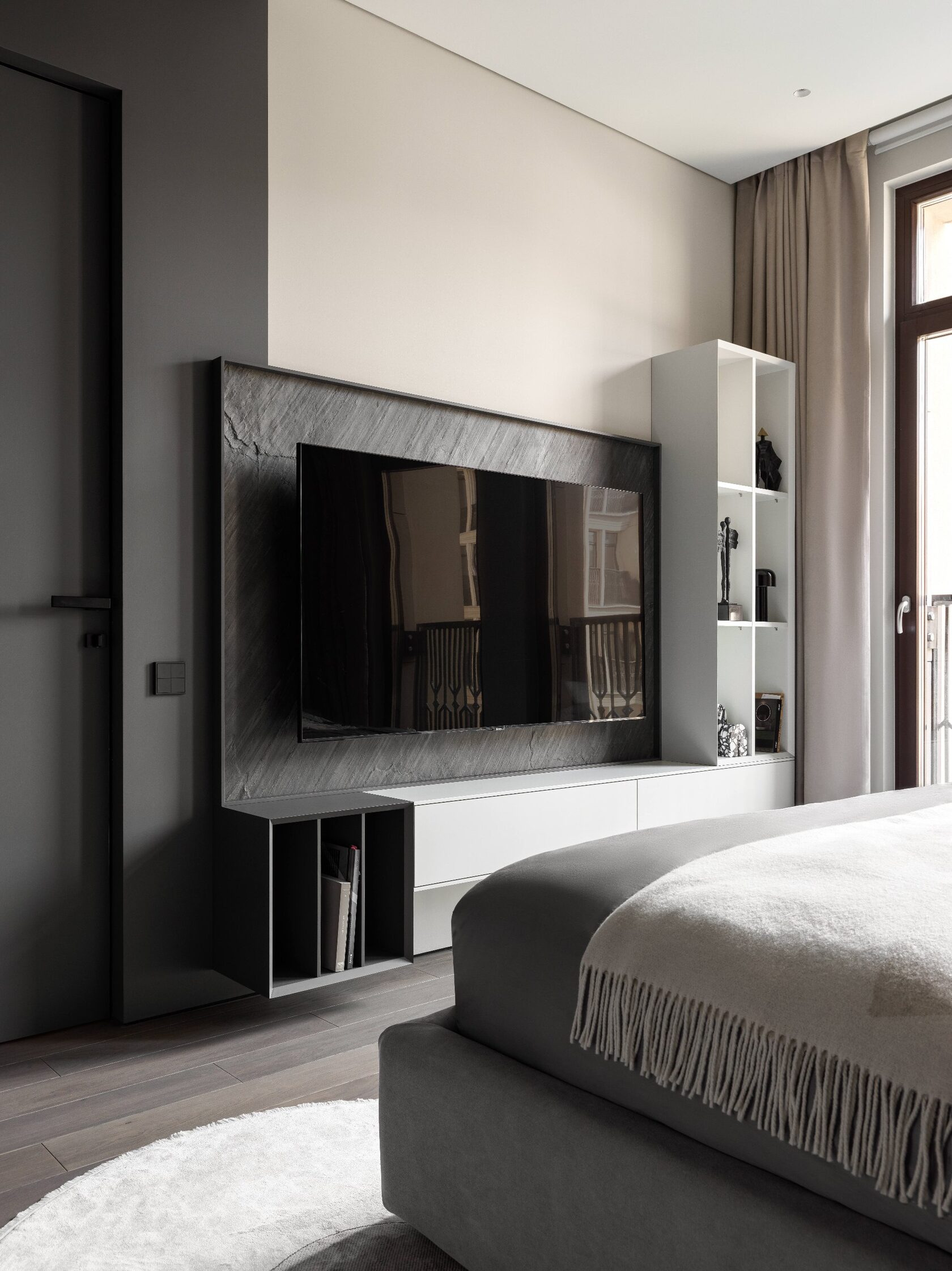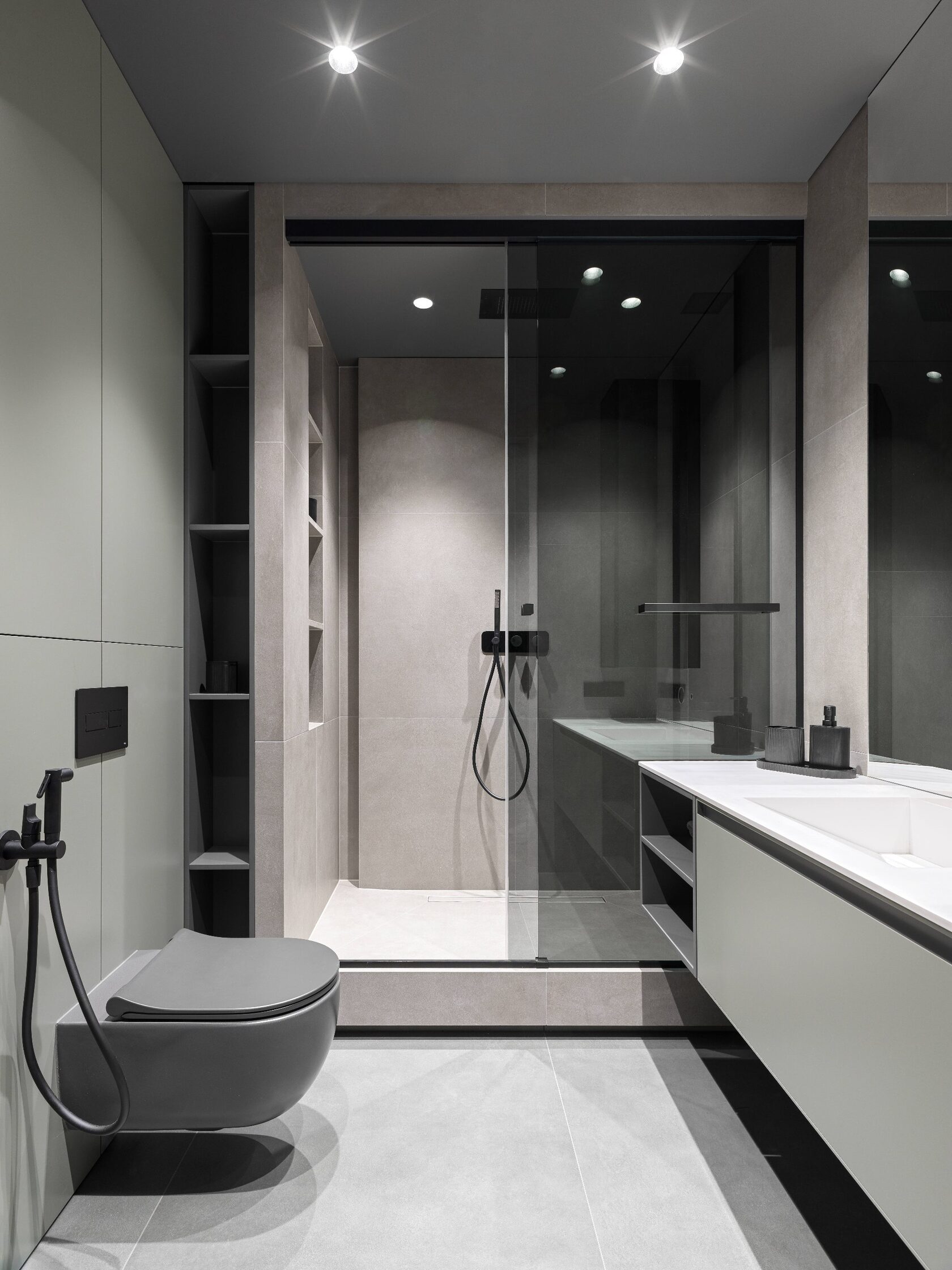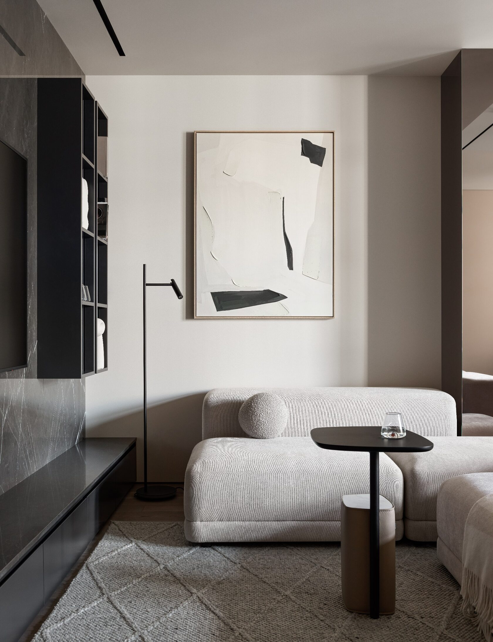 Эта квартира — не просто красивая оболочка, а настоящий интеллектуальный организм. Интерьер продуман до мелочей, чтобы не только радовать глаз, но и обеспечивать здоровый микроклимат, тишину, функциональность и комфорт. За строгими, лаконичными линиями скрывается мощная система умного дома, приточно-вытяжной вентиляции, водоподготовки и освещения по сценариям. Но всё это спрятано за архитектурными решениями, оставляя пространство визуально чистым и уютным.