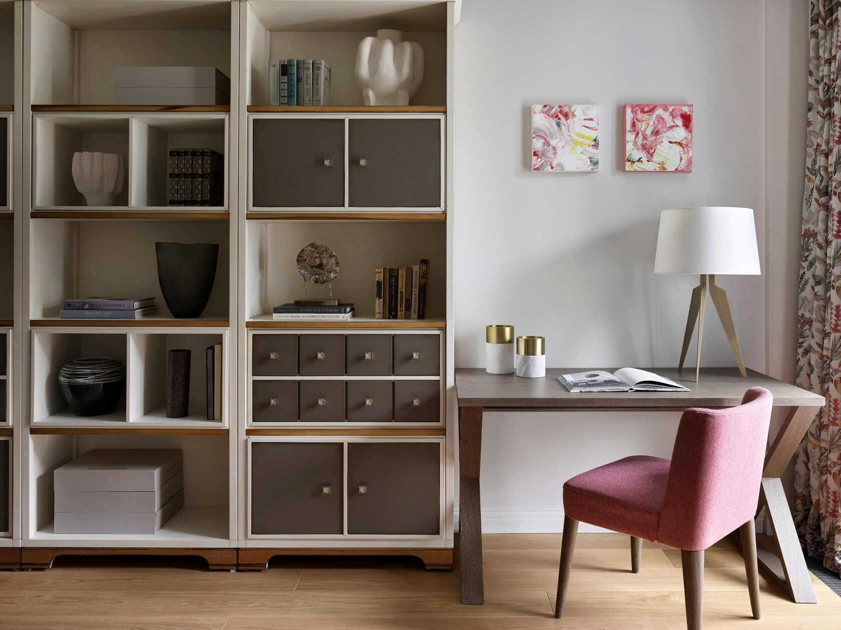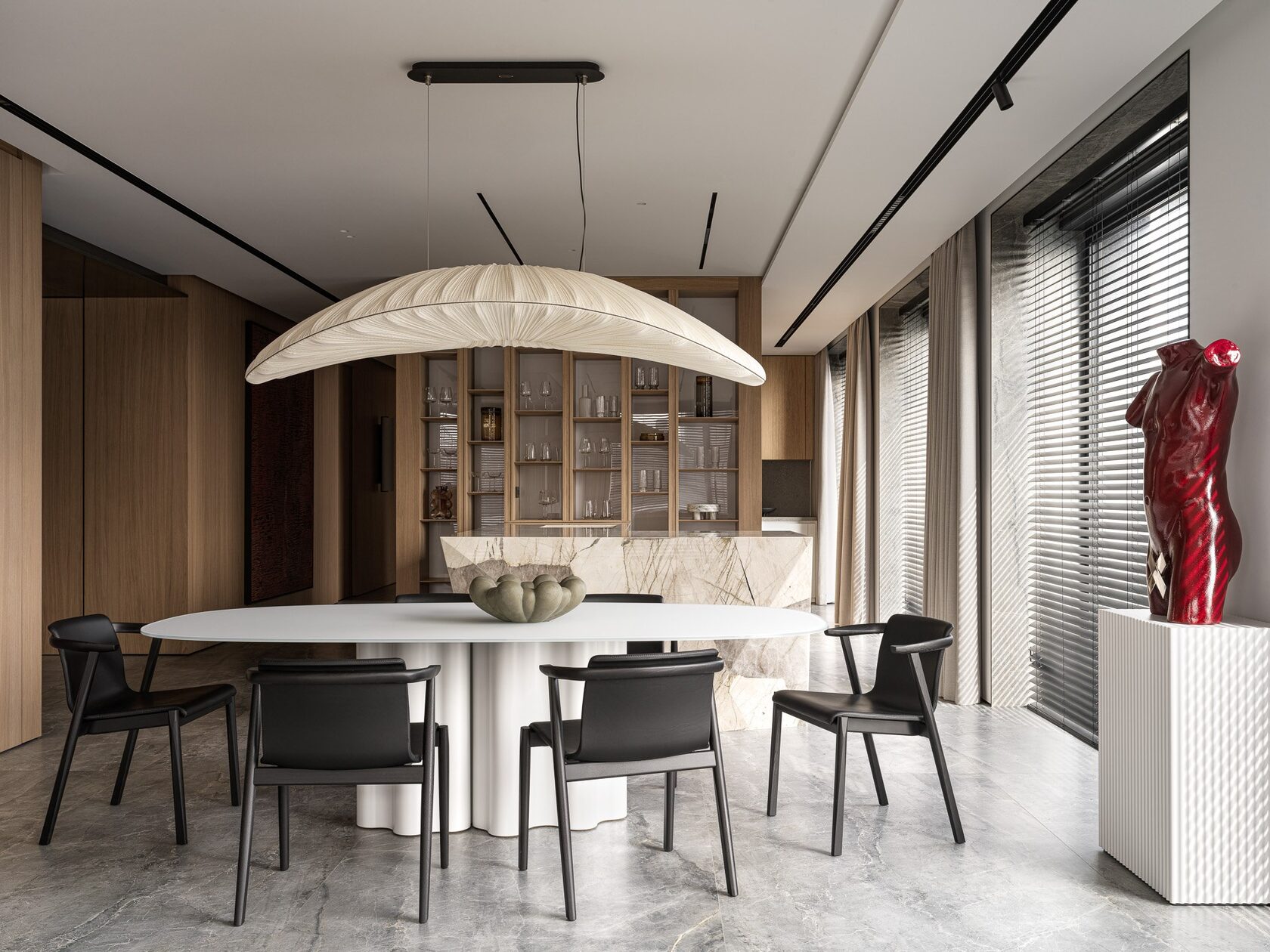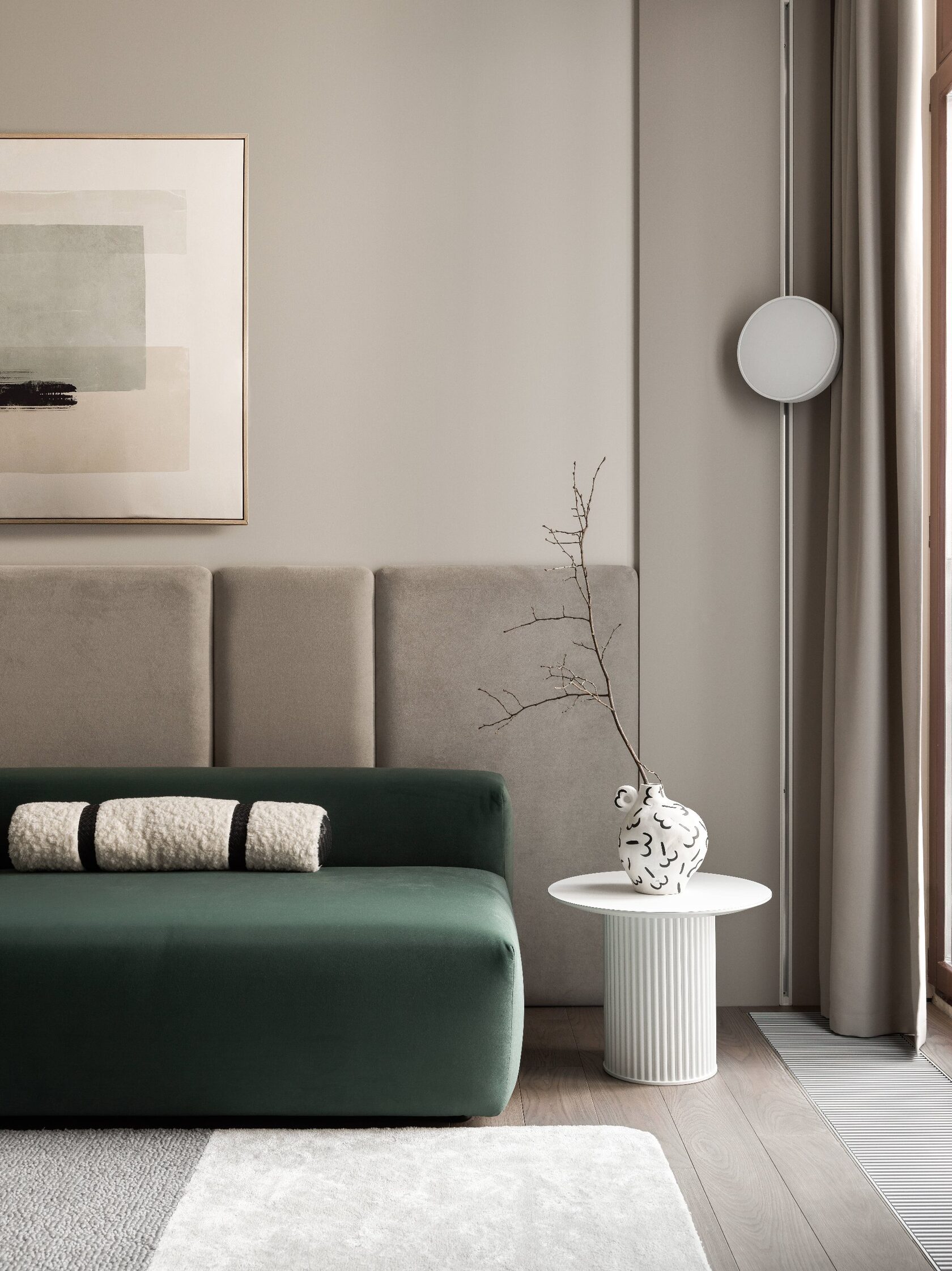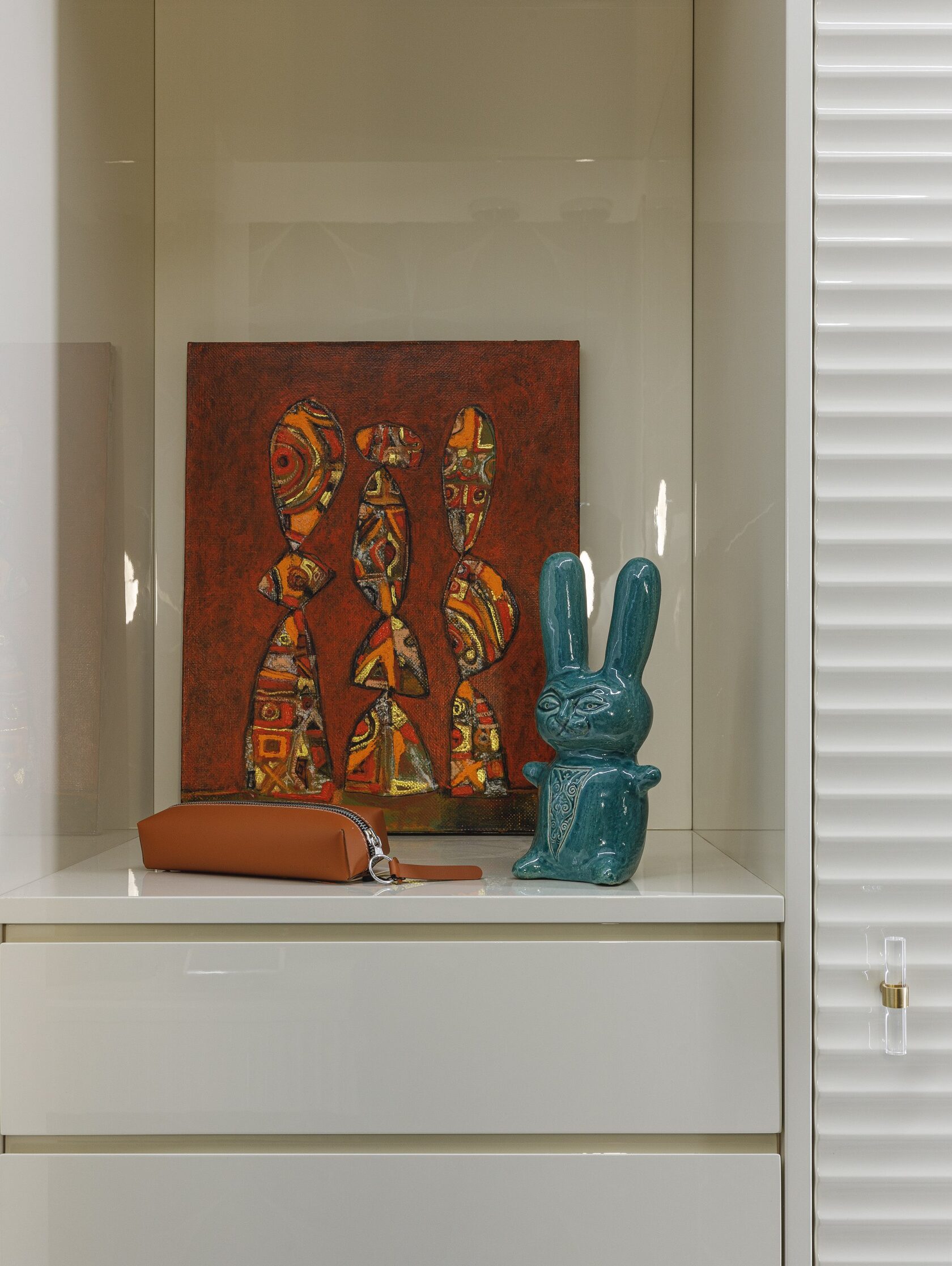 Искусство занимает особое место в этом интерьере. Картины и скульптуры, выбранные с любовью, создают атмосферу изысканности и утонченности. Лейтмотивом проекта стали изящные женские формы, которые так точно характеризуют нашу заказчицу. Мы предложили снять бюст с нашей заказчицы как с модели, и скульптор создал шедевр, который уже готов занять свое почетное место в квартире.