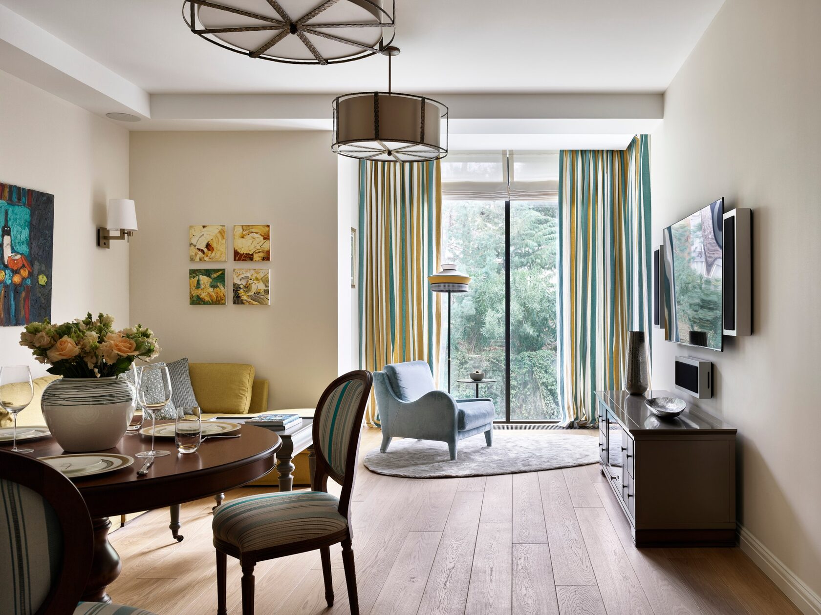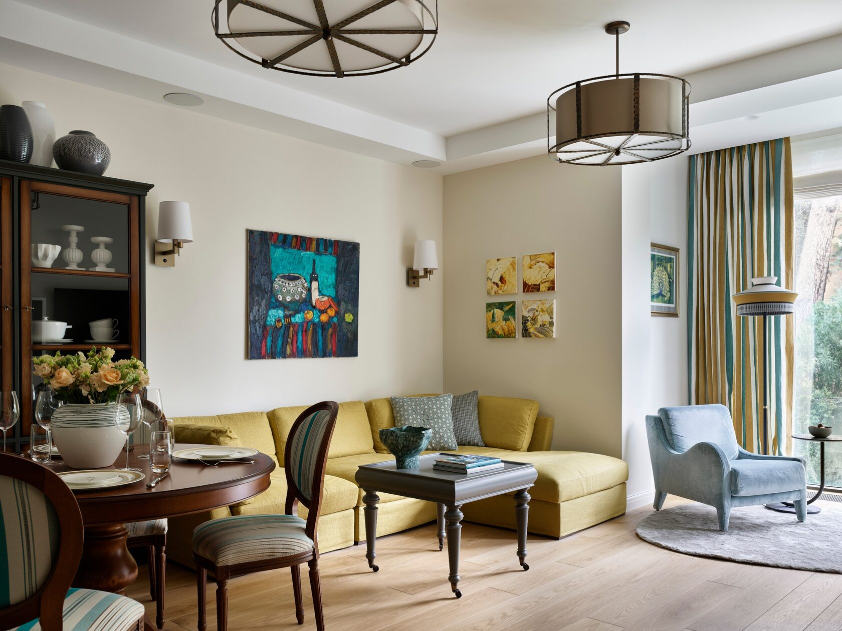 Этот интерьер — ода южной природе и изысканной простоте. Светлые тона, плавные линии и натуральные материалы создают ощущение курортной легкости, а художественные акценты добавляют интерьеру музейной глубины.